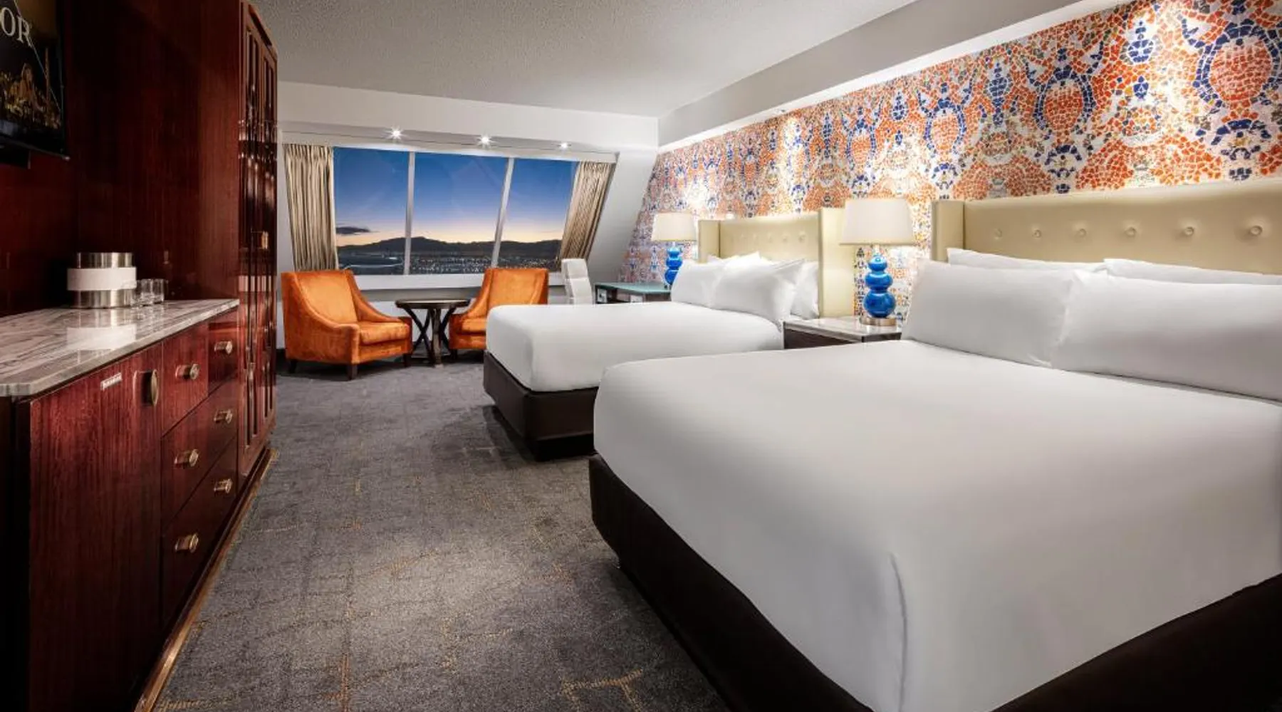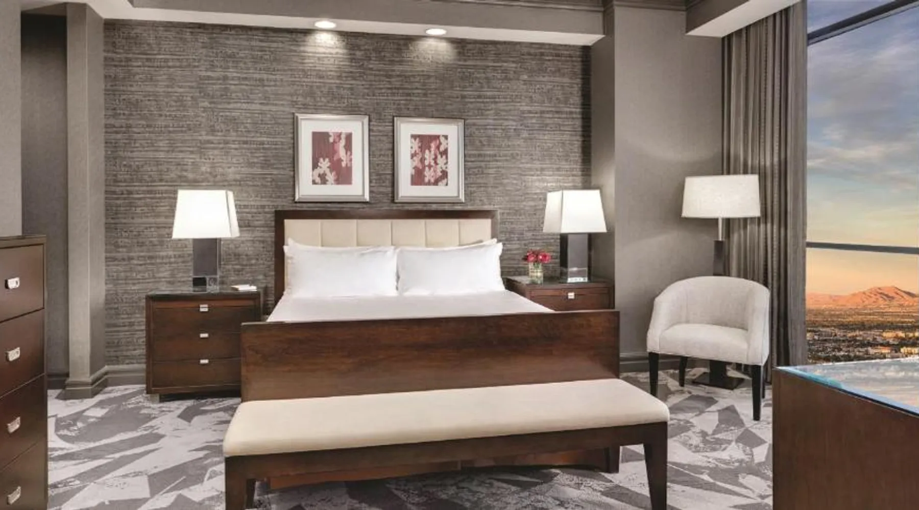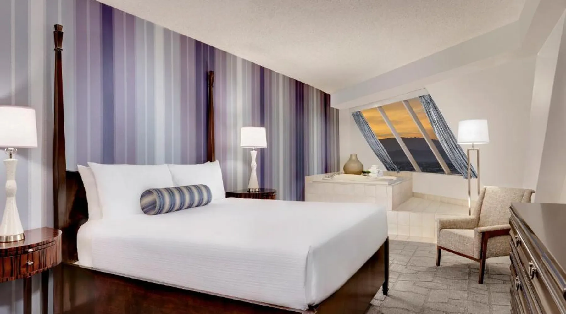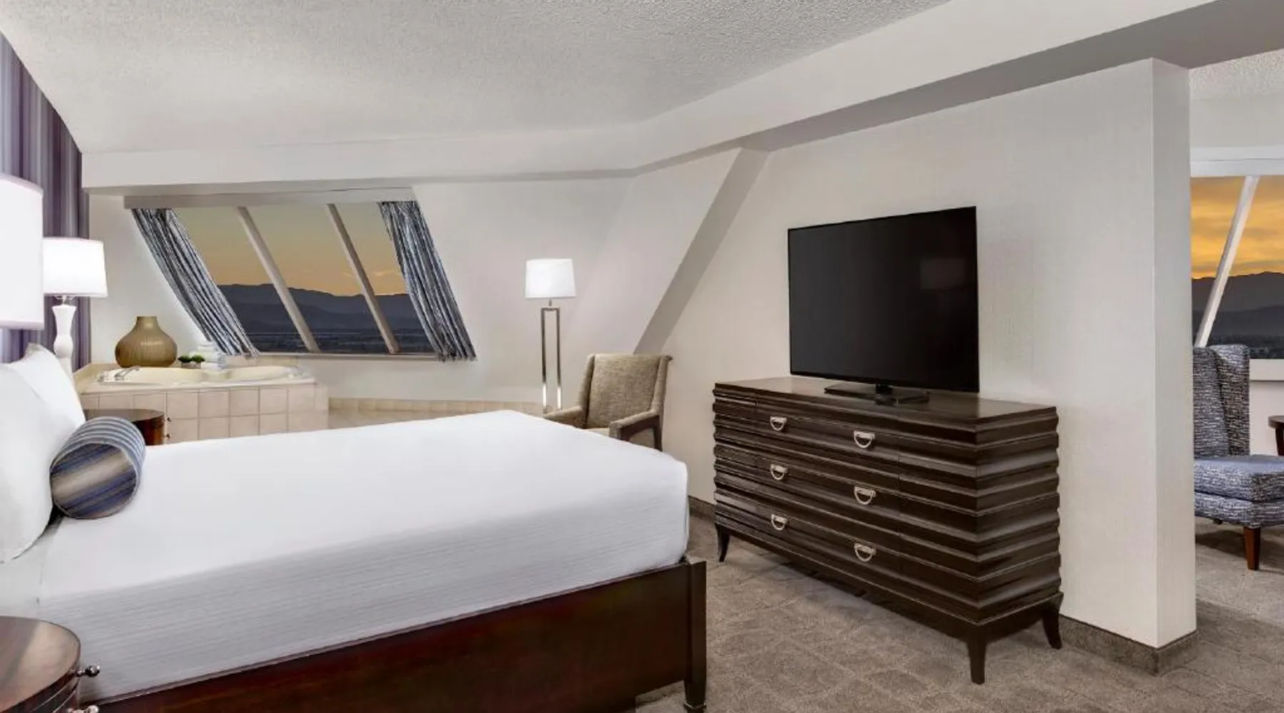 Known for its iconic pyramid shape, Luxor is located on the Las Vegas Strip and features a casino and live entertainment. It provides a full-service spa, 4 large seasonal pools and a hot tub. Tower Premier Rooms offer multiple charging and power outlets, a multi-purpose element that doubles as wardrobe, storage, work surface and media center and a bathroom with separate shower and bathtub. Nurture Spa and Salon offers an assortment of beauty treatments. A steam bath, dry sauna and hot tubs are available at the spa. Bolder and brighter dining options await at Luxor Las Vegas including a steakhouse, cafe and deli. Casino Luxor contains 120,000 square feet of slots and table games including poker. BetMGM Sportsbook at Luxor, a betting arena, with plasma TVs provide entertainment. Please note: Per Luxor policy, please ensure the original credit card used at the time of booking is presented during check-in. This spacious suite consists of 1 bedroom, a seating area and 1 bathroom with a walk-in shower and a bath. This suite is air-conditioned and features a flat-screen TV with satellite channels, a wardrobe, a safe deposit box and a tiled floor. The unit offers 1 bed.