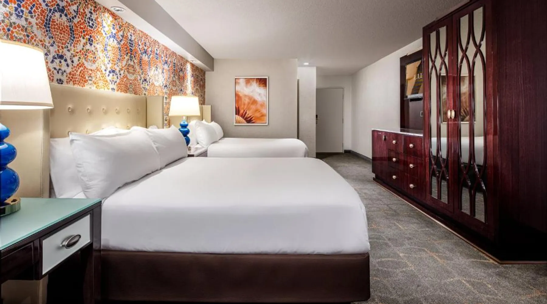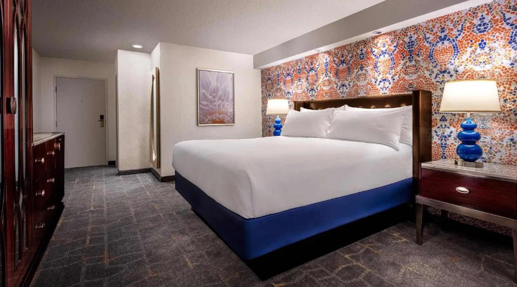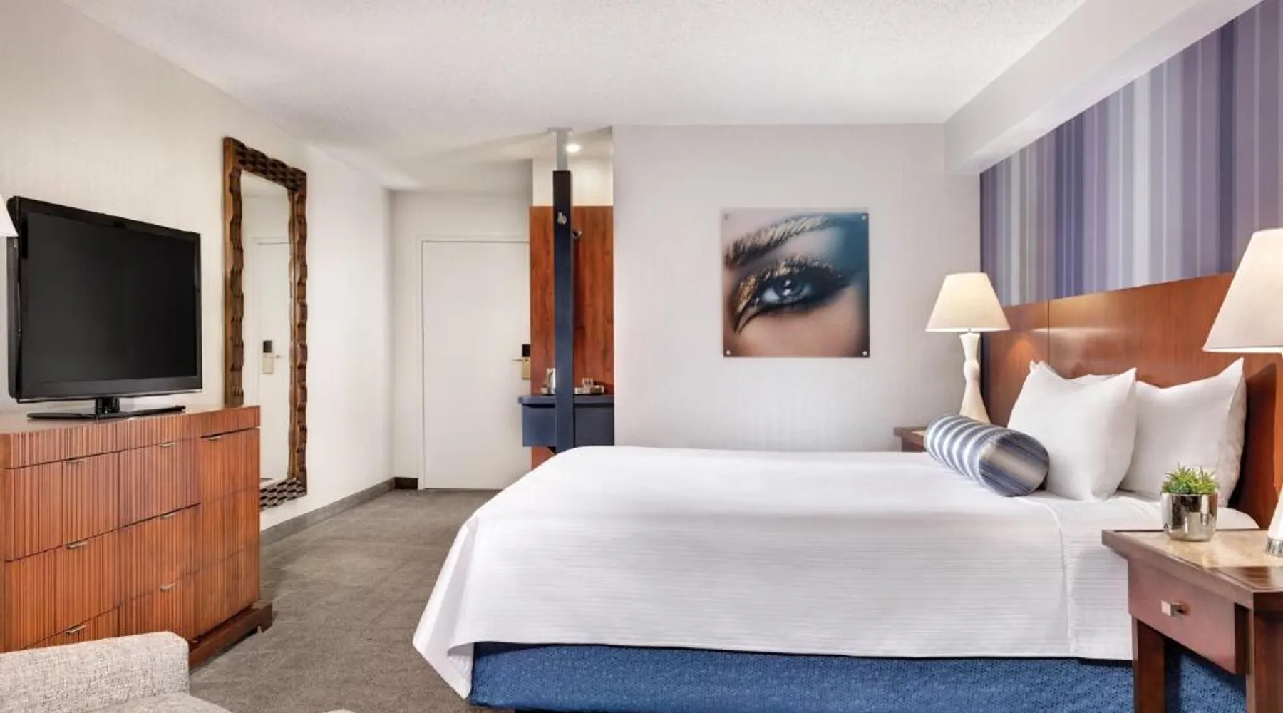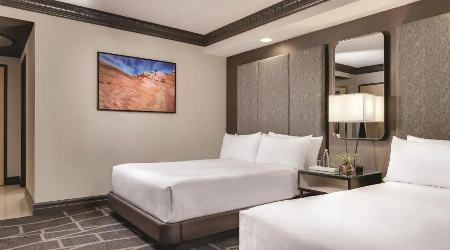 Known for its iconic pyramid shape, Luxor is located on the Las Vegas Strip and features a casino and live entertainment. It provides a full-service spa, 4 large seasonal pools and a hot tub. Tower Premier Rooms offer multiple charging and power outlets, a multi-purpose element that doubles as wardrobe, storage, work surface and media center and a bathroom with separate shower and bathtub. Nurture Spa and Salon offers an assortment of beauty treatments. A steam bath, dry sauna and hot tubs are available at the spa. Bolder and brighter dining options await at Luxor Las Vegas including a steakhouse, cafe and deli. Casino Luxor contains 120,000 square feet of slots and table games including poker. BetMGM Sportsbook at Luxor, a betting arena, with plasma TVs provide entertainment. Please note: Per Luxor policy, please ensure the original credit card used at the time of booking is presented during check-in. This spacious suite consists of 1 bedroom, a seating area and 1 bathroom with a walk-in shower and a bath. This suite is air-conditioned and features a flat-screen TV with satellite channels, a wardrobe, a safe deposit box and a tiled floor. The unit offers 1 bed.