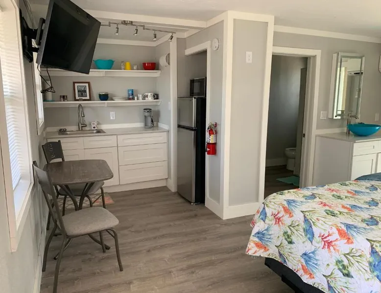 Comfortable Accommodations: Angler's Inn in Matlacha offers a sun terrace, garden, restaurant, and free WiFi. Guests enjoy sea views, air-conditioning, and private bathrooms with walk-in showers. Convenient Facilities: The property features a private check-in and check-out service, outdoor fireplace, 24-hour front desk, housekeeping, outdoor seating, picnic area, barbecue facilities, and free on-site parking. Local Attractions: Located 23 mi from Punta Gorda Airport, nearby attractions include Fishermen's Village (24 mi), Sanibel Lighthouse (29 mi), and Dolphin Marina (14 mi). Activities available include fishing, canoeing, and cycling. Guest Favorites: Guests highly rate the kitchen, convenient location, and terrace. Featuring free toiletries, this studio includes a private bathroom with a walk-in shower and a hairdryer. Guests will find a refrigerator, kitchenware, a microwave and a toaster in the fully equipped kitchenette. The studio also includes a barbecue. The air-conditioned studio features a flat-screen TV with cable channels, a washing machine, a private entrance, a tea and coffee maker as well as sea views. The unit has 2 beds.