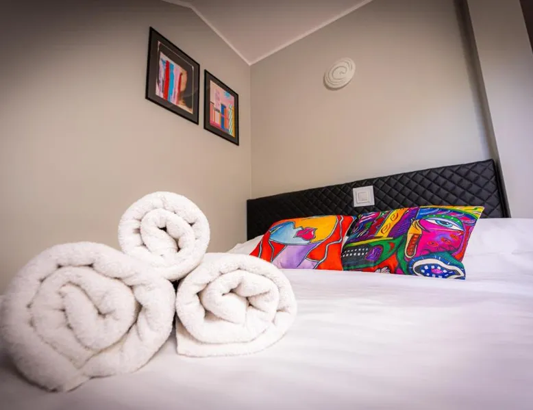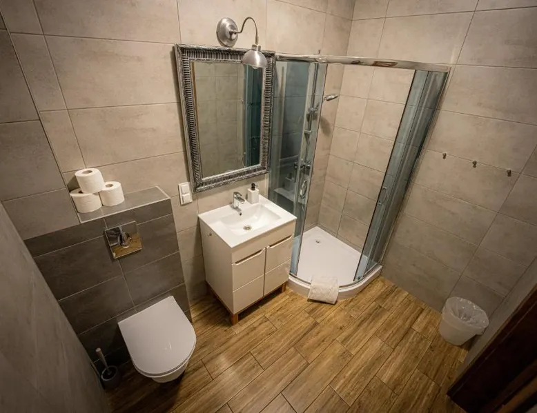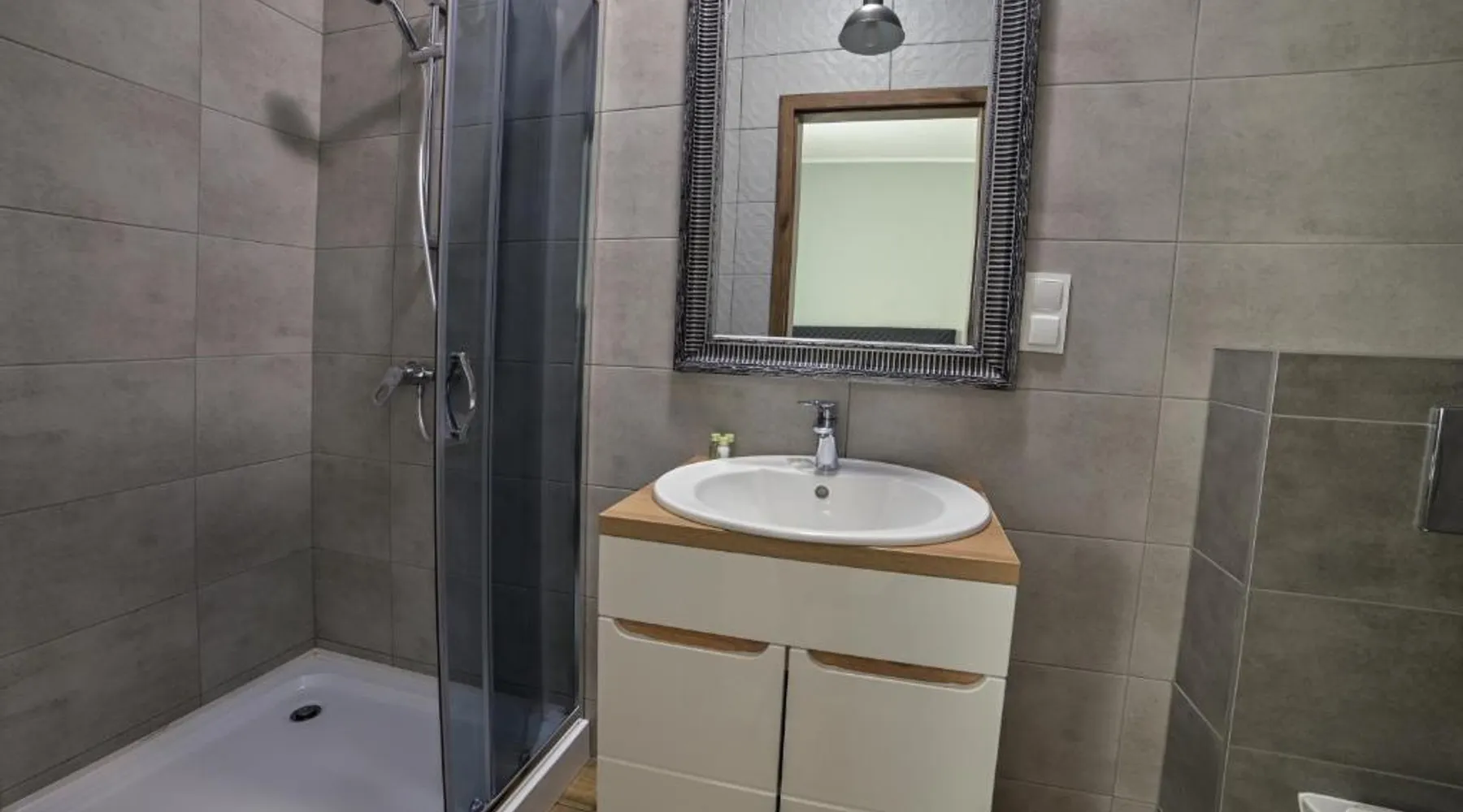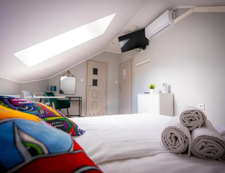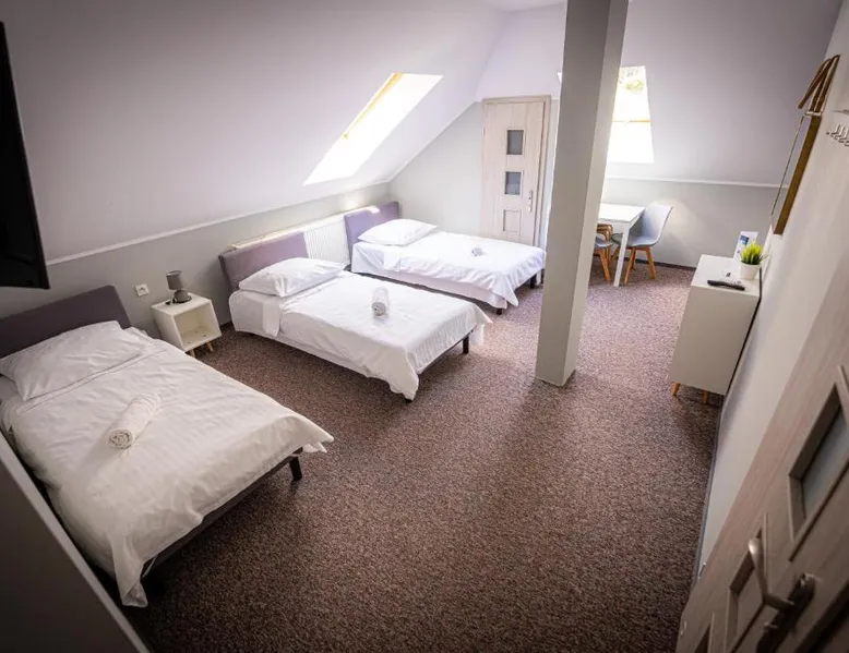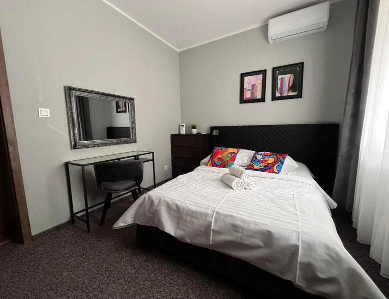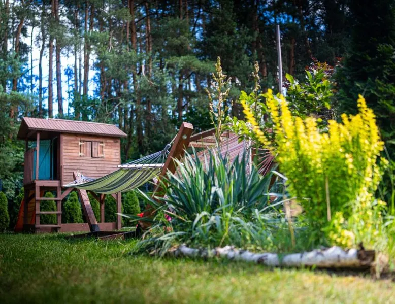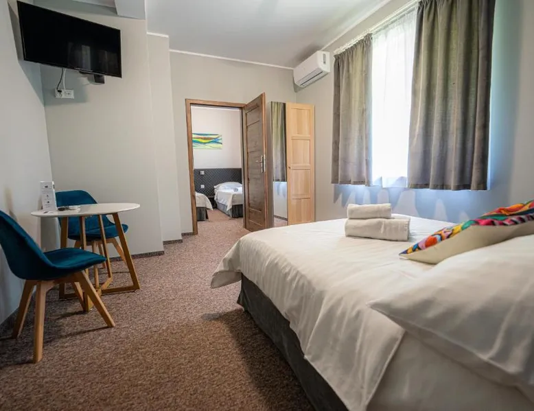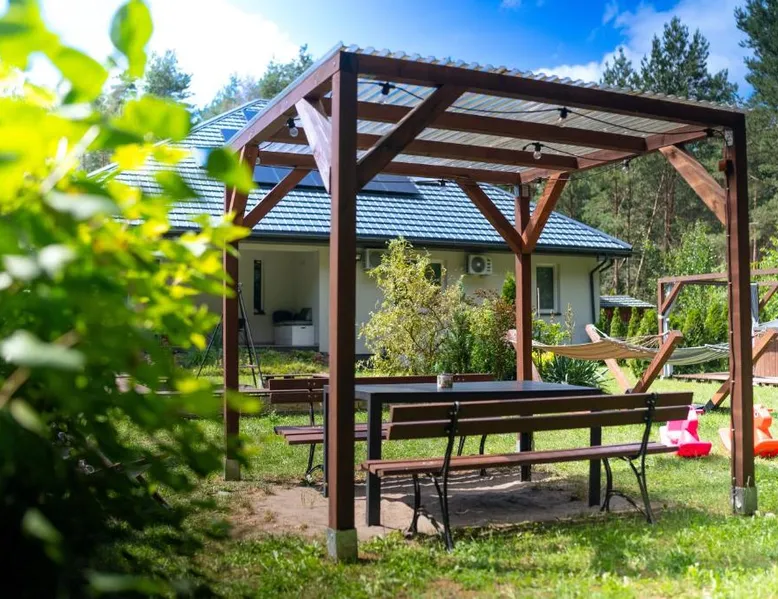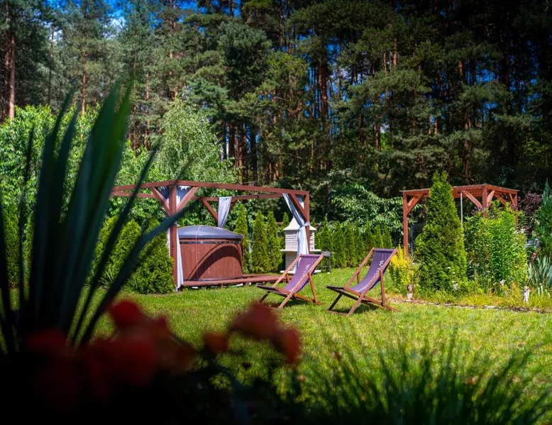 Comfortable Accommodations: Apartamenty Wypoczynkowa 24 in Krzyżówka offers a sun terrace, garden, and free WiFi. Guests enjoy private check-in and check-out services, an outdoor fireplace, shared kitchen, waterpark, outdoor play area, outdoor seating, picnic area, family rooms, and a children's playground. Modern Amenities: The apartment features air-conditioning, a private bathroom, barbecue, outdoor furniture, outdoor dining area, shower, carpeted floors, soundproofing, garden views, dining table, ground-floor unit, inner courtyard views, work desk, and wardrobe. Convenient Location: Located 27 mi from Warsaw Frederic Chopin Airport, 29 mi from Blue City, and 30 mi from Warsaw West Train Station. Highly rated for its kitchen, garden, and room cleanliness. This air-conditioned quadruple room has a private bathroom, soundproof walls, a wardrobe as well as an outdoor dining area. The unit has 3 beds.