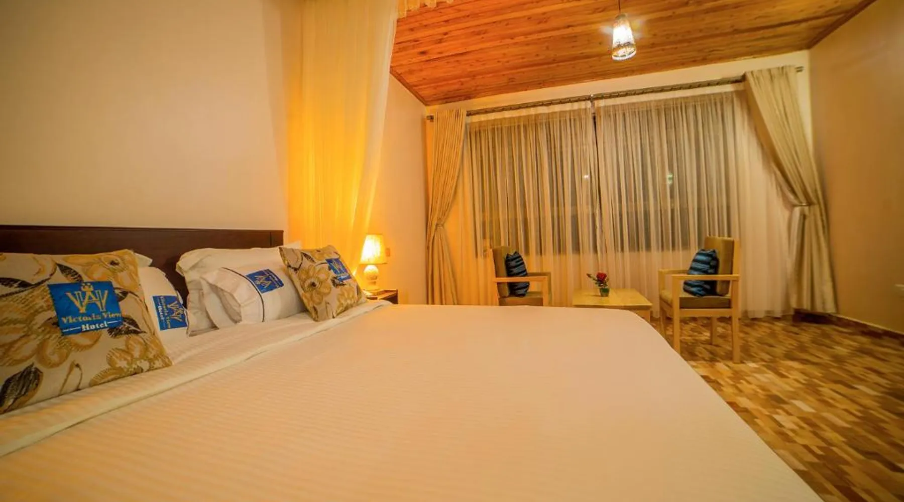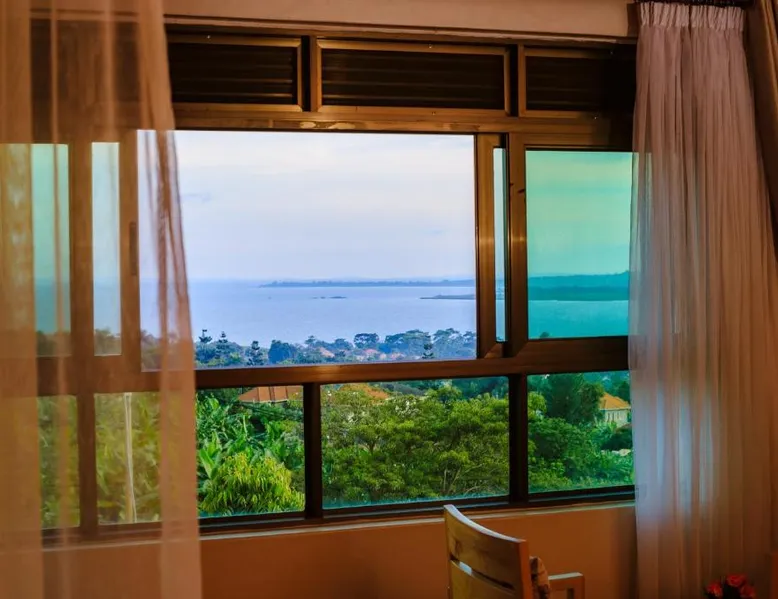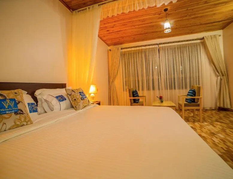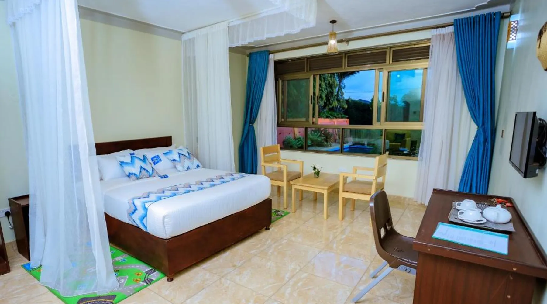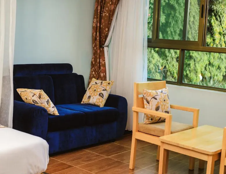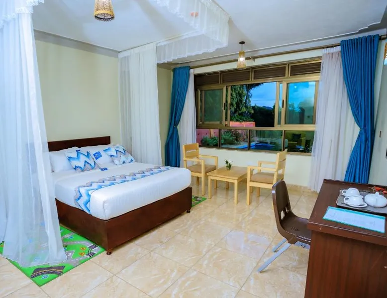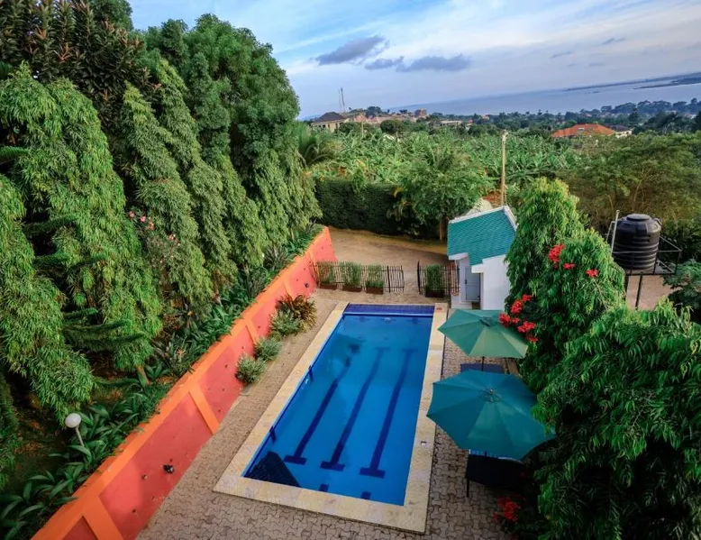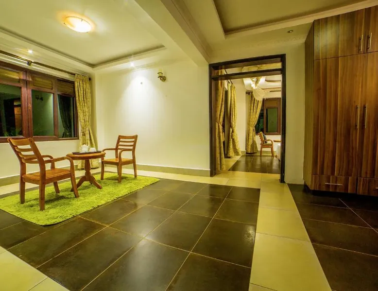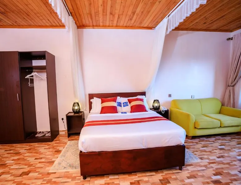 Comfortable Accommodations: Victoria View Boutique Hotels Kigo in Entebbe offers family rooms with private bathrooms, terraces, balconies, and garden or pool views. Each room includes a kitchenette, work desk, and free WiFi. Exceptional Facilities: Guests enjoy a sauna, sun terrace, indoor swimming pool, and free airport shuttle service. Additional amenities include a restaurant, bar, and outdoor seating area. Dining Experience: The family-friendly restaurant serves African cuisine in a modern and romantic ambiance. Breakfast is continental, and room service is available. Prime Location: Located 17 mi from Entebbe International Airport, the hotel is near attractions such as Pope Paul Memorial and Kabaka's Palace. Free on-site parking and a tour desk enhance the stay. This suite features a sauna. Boasting a private entrance, this suite features 1 living room, 1 separate bedroom and 1 bathroom with a bath and a shower. Featuring a terrace with lake views, this suite also features soundproof walls and a TV with satellite channels. The unit has 2 beds.