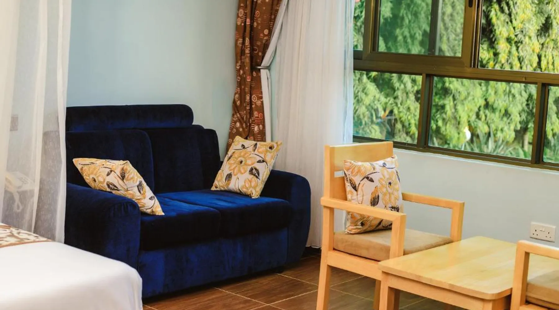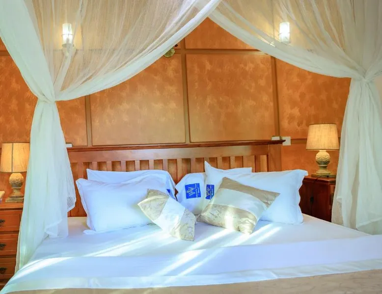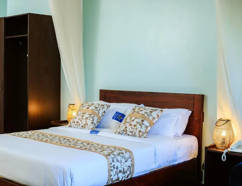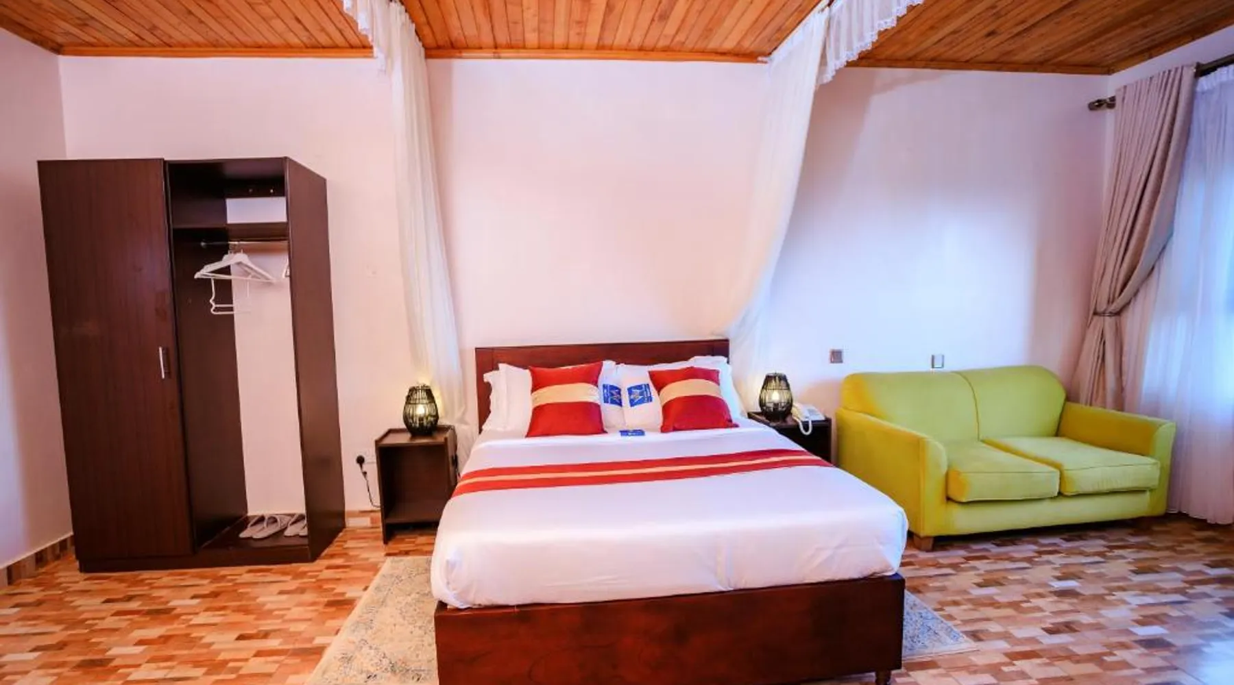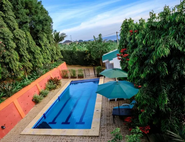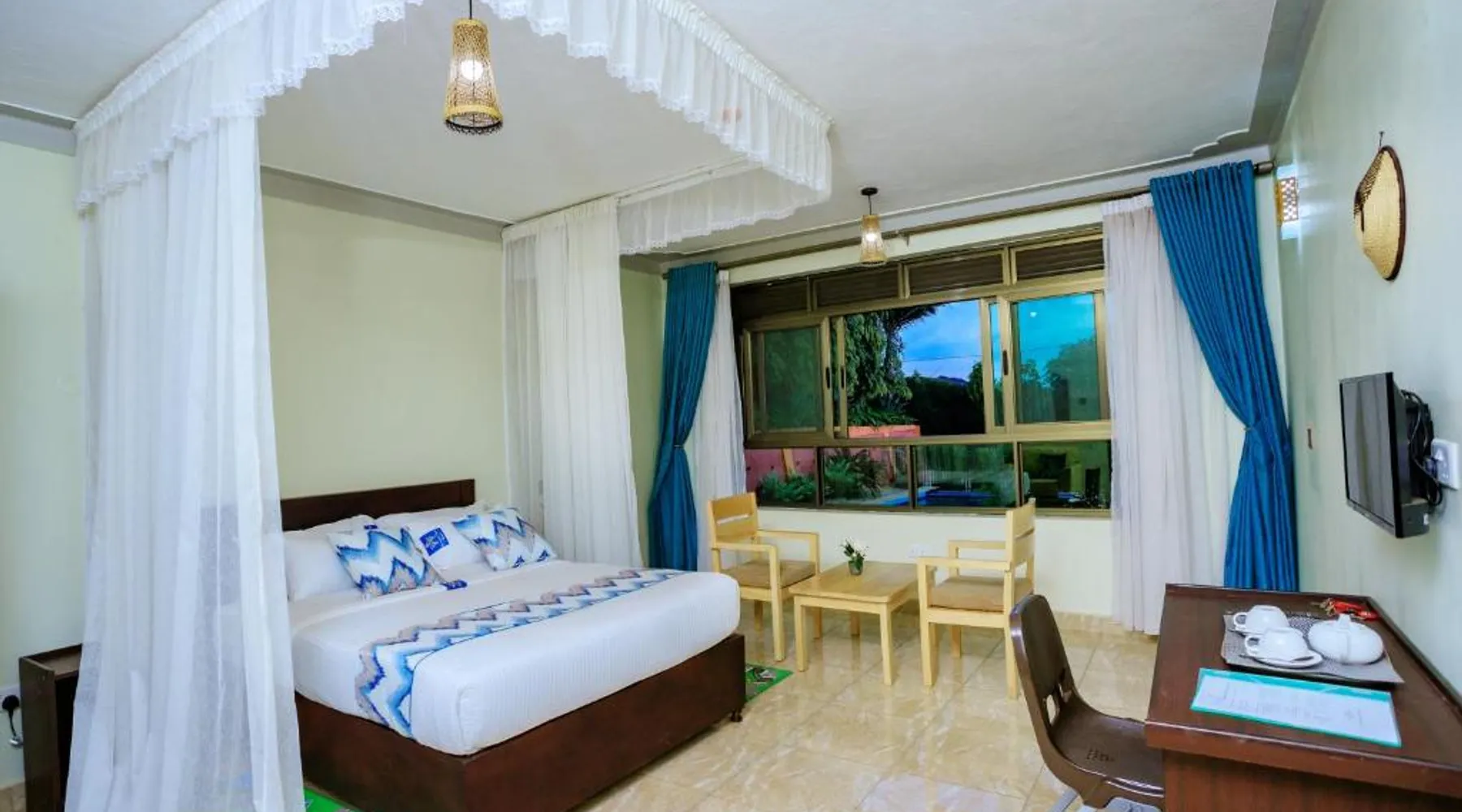 Comfortable Accommodations: Victoria View Boutique Hotels Kigo in Entebbe offers family rooms with private bathrooms, terraces, balconies, and garden or pool views. Each room includes a kitchenette, work desk, and free WiFi. Exceptional Facilities: Guests enjoy a sauna, sun terrace, indoor swimming pool, and free airport shuttle service. Additional amenities include a restaurant, bar, and outdoor seating area. Dining Experience: The family-friendly restaurant serves African cuisine in a modern and romantic ambiance. Breakfast is continental, and room service is available. Prime Location: Located 17 mi from Entebbe International Airport, the hotel is near attractions such as Pope Paul Memorial and Kabaka's Palace. Free on-site parking and a tour desk enhance the stay. This suite features a sauna. Boasting a private entrance, this suite features 1 living room, 1 separate bedroom and 1 bathroom with a bath and a shower. Featuring a terrace with lake views, this suite also features soundproof walls and a TV with satellite channels. The unit has 2 beds.