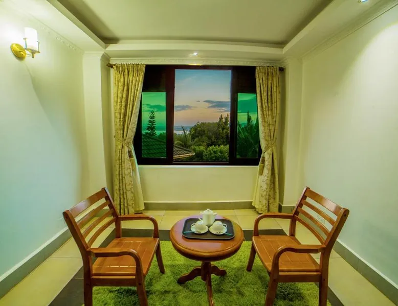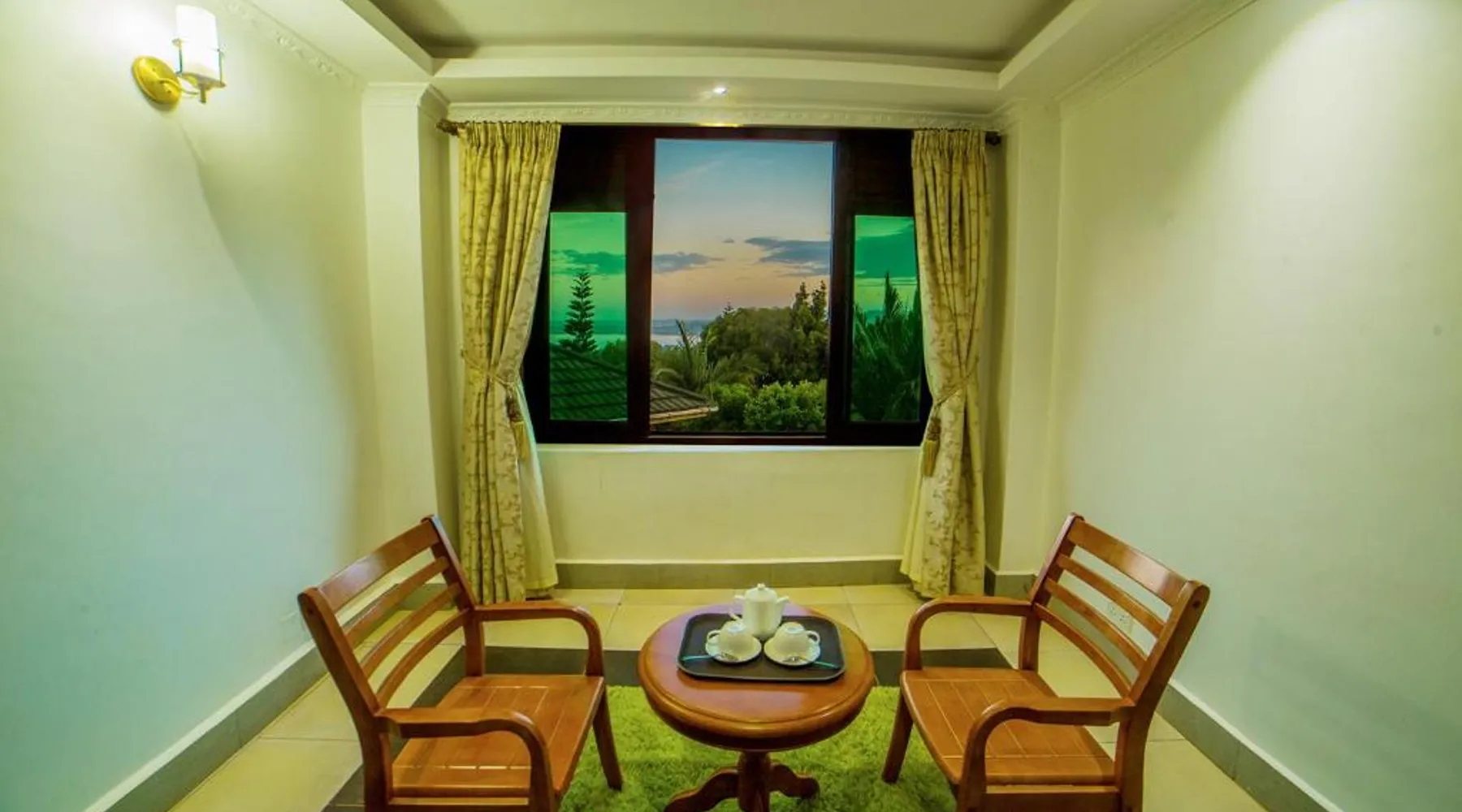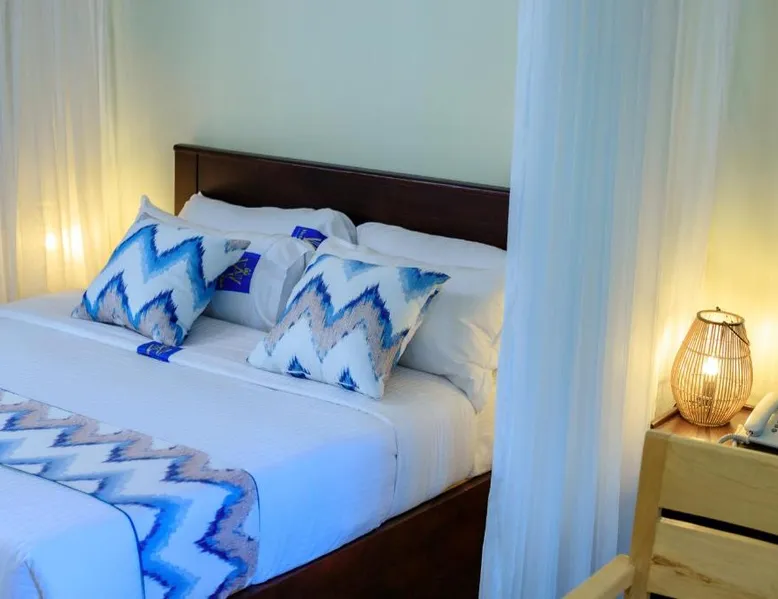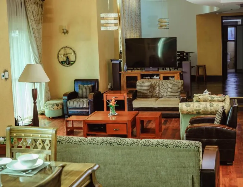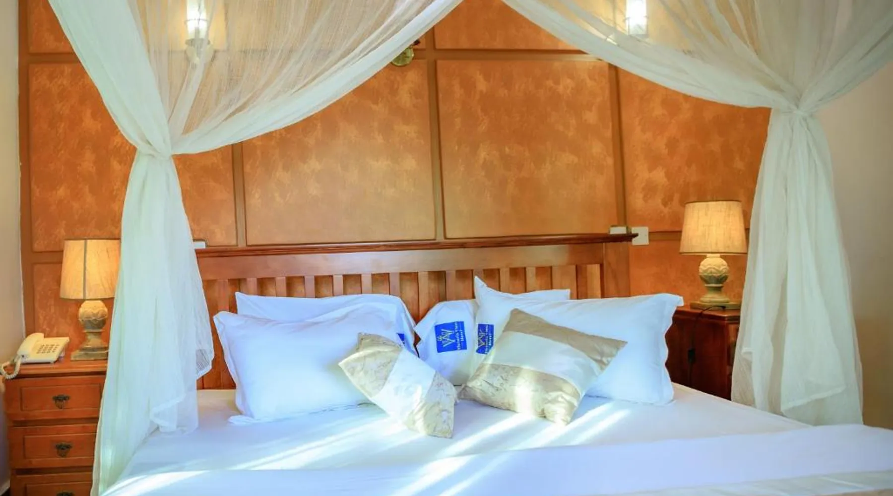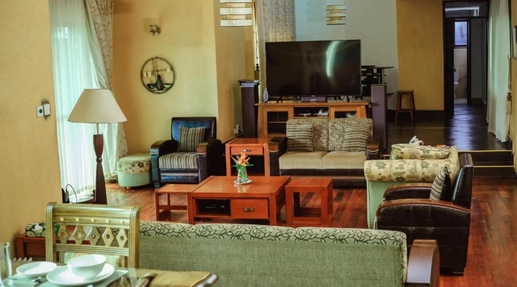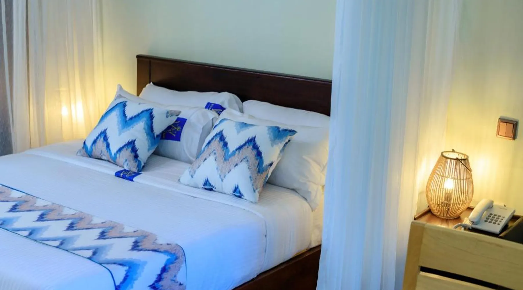Comfortable Accommodations: Victoria View Boutique Hotels Kigo in Entebbe offers family rooms with private bathrooms, terraces, balconies, and garden or pool views. Each room includes a kitchenette, work desk, and free WiFi. Exceptional Facilities: Guests enjoy a sauna, sun terrace, indoor swimming pool, and free airport shuttle service. Additional amenities include a restaurant, bar, and outdoor seating area. Dining Experience: The family-friendly restaurant serves African cuisine in a modern and romantic ambiance. Breakfast is continental, and room service is available. Prime Location: Located 17 mi from Entebbe International Airport, the hotel is near attractions such as Pope Paul Memorial and Kabaka's Palace. Free on-site parking and a tour desk enhance the stay. This suite features a sauna. Boasting a private entrance, this suite features 1 living room, 1 separate bedroom and 1 bathroom with a bath and a shower. Featuring a terrace with lake views, this suite also features soundproof walls and a TV with satellite channels. The unit has 2 beds.