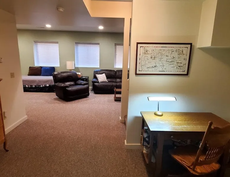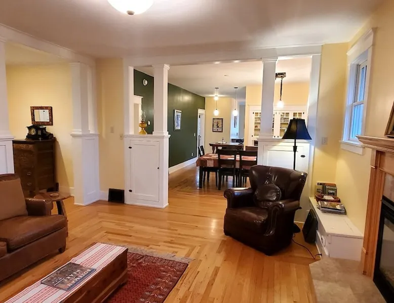 Free, fast Wi-Fi for remote learning/working needs. Keyless self check-in. Keyless self check-in. The space Large 3 bedroom, 2 bath, superb location on Bozeman Creek, next to Bogart Park, near outdoor city pool and downtown - all on a dead end street! Great yard with Bozeman Creek running just behind the fence, off-street parking, front porch, back deck, fully remodeled in 2015, laundry room, Sprectrum Wifi. Lindley Place Cottage is managed by Bozeman Cottage Vacation Rentals, a small homegrown Bozeman company with over 20 years of experience. For more reviews and information search the name of the house plus the words Bozeman Cottage. The Lindley Place Cottage has been completely restored. The location and the house itself are exquisite, with Sourdough Creek just over the back fence, Bogart Park on the other side of the bridge, and on a dead end street just 4 blocks to Bozeman's downtown. Just walk across the bridge and you're at Bogart Park's weekly farmers market, also home to Bozeman's only outdoor public pool, and a large park with playground and summer band concerts. Lindley Park, home to the Sweet Pea Festival, and Pete's Hill trails and recreation area overlooking town is just two more blocks away. And with Montana State University and the Museum of the Rockies just 15 blocks away, you won't even need to get in the car to enjoy the town's splendors. The house has 3 bedrooms, 2 bathrooms and beautifully refinished hardwood floors, new kitchen, bathrooms, and a covered back porch on the way to the yard complete with a fire pit. The pictures say it all, this house has been in the family for three generations and was completely redone in 2015, inside and out. The basement has generous 8 foot ceilings and is full of daylight with large windows, 2 bedrooms, 1 bathroom, a large family with tv and leather sectional sofas, and a laundry room with extra full size refrigerator/freezer. Two of the bedrooms have queen size beds, and one has a full size bed. There is a tv den off of the kitchen area which also has a full size sleeper sofa. The main tv is downstairs (both have Charter cable) with new leather reclining couches. The house has Charter wifi for super fast, reliable service. The kitchen has a Euro drawer fridge with two undercounter drawers, and there is a full size fridge/freezer in the laundry room downstairs. As with all Bozeman Cottage houses, the Lindley Place Cottage is equipped with a drip style coffee maker, coffee grinder, a starter pack of fresh, local coffee, linens, pots/pans, cooking utensils, spices, dry goods (flour, sugar, etc), EO brand non-toxic body products, and comes with organic coffee & grinder. We also provide extensive local info on everything from where to buy real Montana meat & locally grown vegetables to great hiking trails, rafting links to restaurant coupons. We believe in local economies and know the best places! Bozeman Cottage is owned and operated by Paul House, a licensed property manager in the state of Montana, license # RRE-RPM-LIC-45468. City of Bozeman Short Term Rental Permit STR20-00290. Guest access Whole house Registration details str20-00290