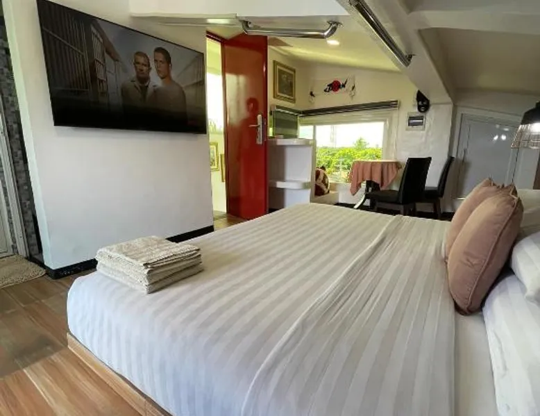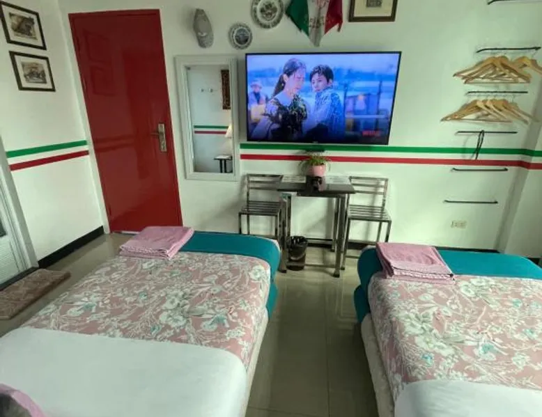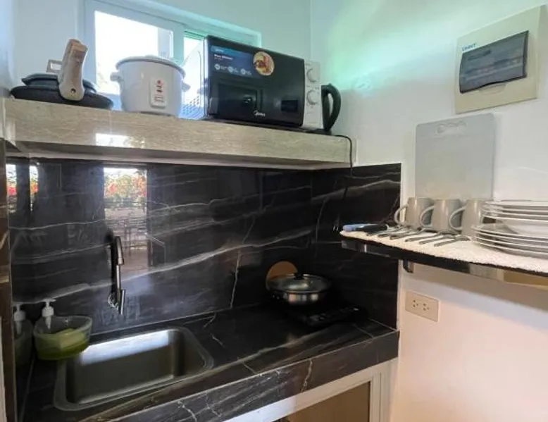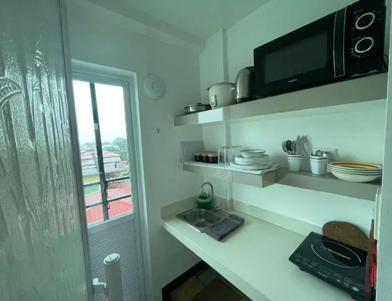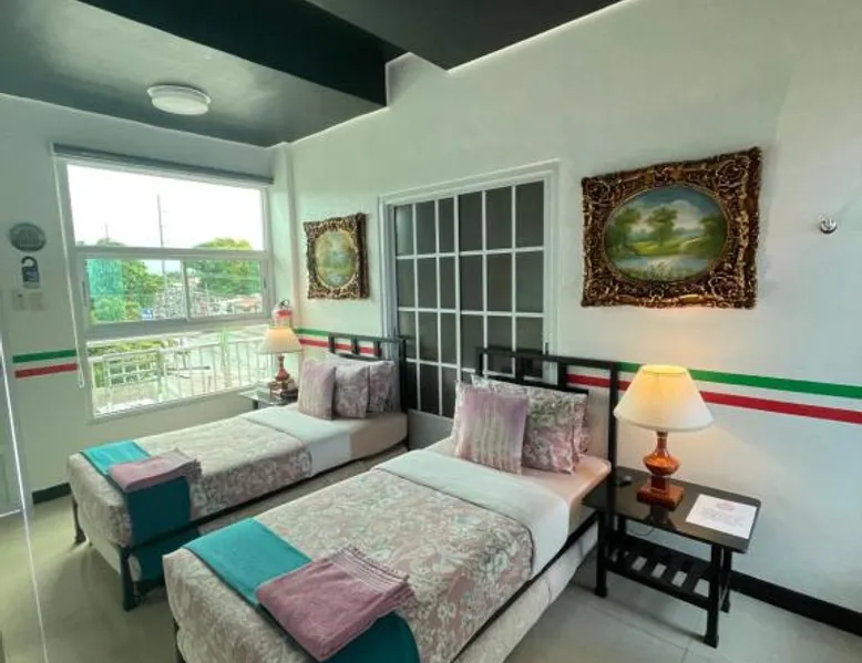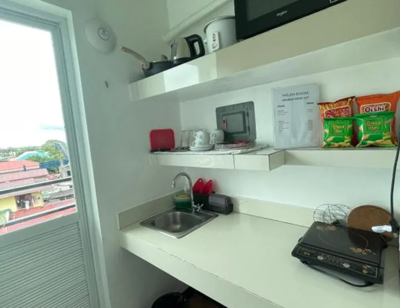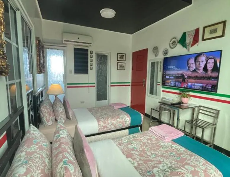 Comfortable Accommodations: Italy Condotel Darasa in Tanauan City offers comfortable rooms with air-conditioning, private bathrooms, and modern amenities. Guests enjoy free WiFi, a sun terrace, and a bar for relaxation. Dining and Leisure: The hotel features an Italian buffet breakfast with fresh pastries and juice. Additional facilities include an outdoor fireplace, waterpark, and coffee shop. Free on-site private parking is available. Convenient Location: Located 35 mi from Ninoy Aquino International Airport, the hotel is near attractions such as Enchanted Kingdom (18 mi) and Picnic Grove (17 mi). Highly rated for room comfort, cleanliness, and excellent service. The well-fitted kitchen features a stovetop, a refrigerator, kitchenware and an oven. This air-conditioned double room includes a flat-screen TV with streaming services, a private bathroom as well as a terrace. The unit offers 1 bed.