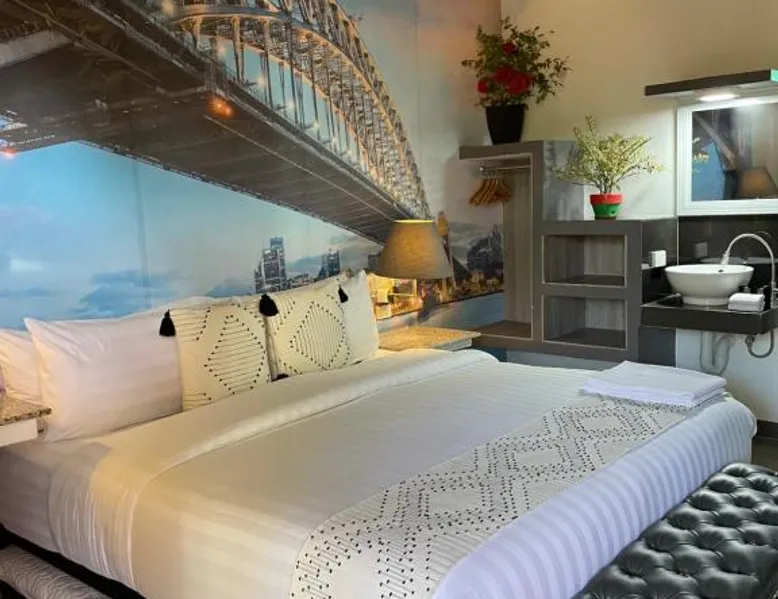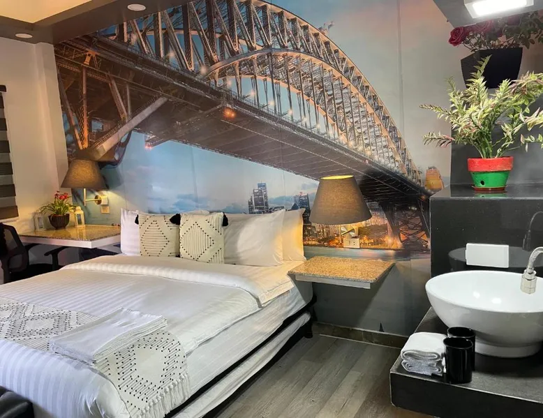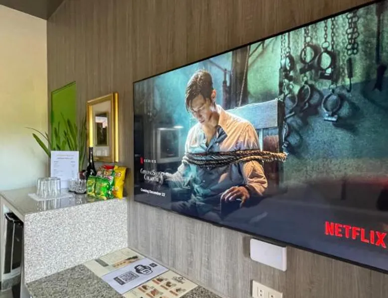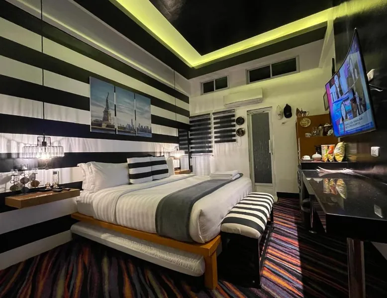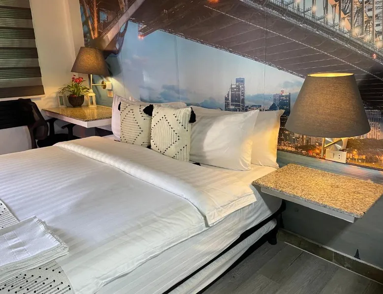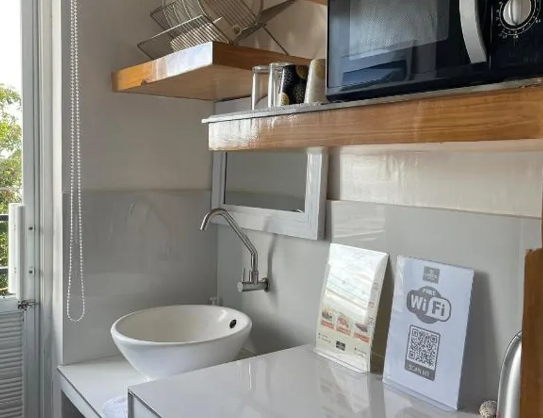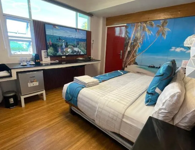 Comfortable Accommodations: Italy Condotel Darasa in Tanauan City offers comfortable rooms with air-conditioning, private bathrooms, and modern amenities. Guests enjoy free WiFi, a sun terrace, and a bar for relaxation. Dining and Leisure: The hotel features an Italian buffet breakfast with fresh pastries and juice. Additional facilities include an outdoor fireplace, waterpark, and coffee shop. Free on-site private parking is available. Convenient Location: Located 35 mi from Ninoy Aquino International Airport, the hotel is near attractions such as Enchanted Kingdom (18 mi) and Picnic Grove (17 mi). Highly rated for room comfort, cleanliness, and excellent service. The well-fitted kitchen features a stovetop, a refrigerator, kitchenware and an oven. This air-conditioned double room includes a flat-screen TV with streaming services, a private bathroom as well as a terrace. The unit offers 1 bed.