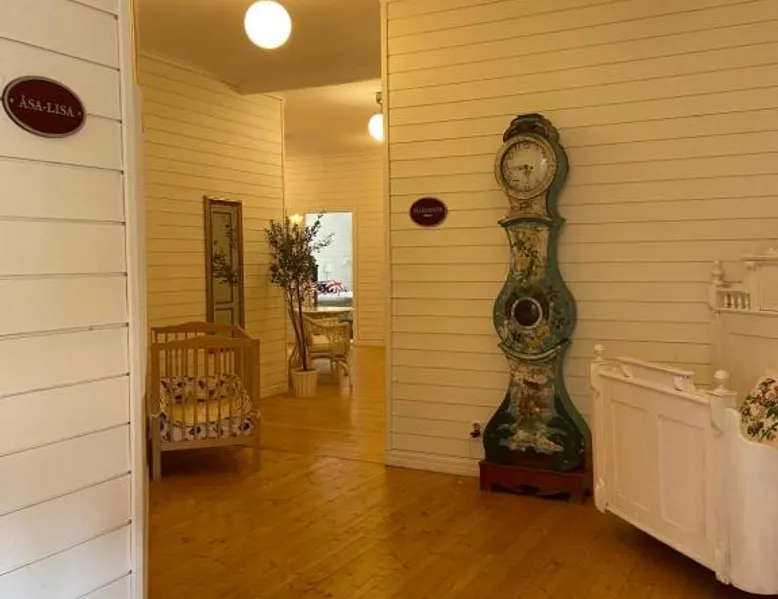 Comfortable Accommodations: Bashults Gård in Jönköping offers family rooms with private bathrooms, garden views, and parquet floors. Each room includes a sofa bed, work desk, and TV. Modern Facilities: Guests enjoy free WiFi, a lounge, public bath, fitness room, elevator, shared kitchen, outdoor seating area, picnic area, and ski storage. Additional amenities include a patio, hairdryer, and electric kettle. Convenient Location: Located 11 mi from Jönköping Airport, the guest house is 8.1 mi from A6 Shopping Mall and Jönköping Centralstation. Nearby attractions include Elmia (8.7 mi) and Jönköpings Läns Museum (9.3 mi). This family room features a desk, a patio, garden views and a private bathroom. The unit offers 2 beds.
