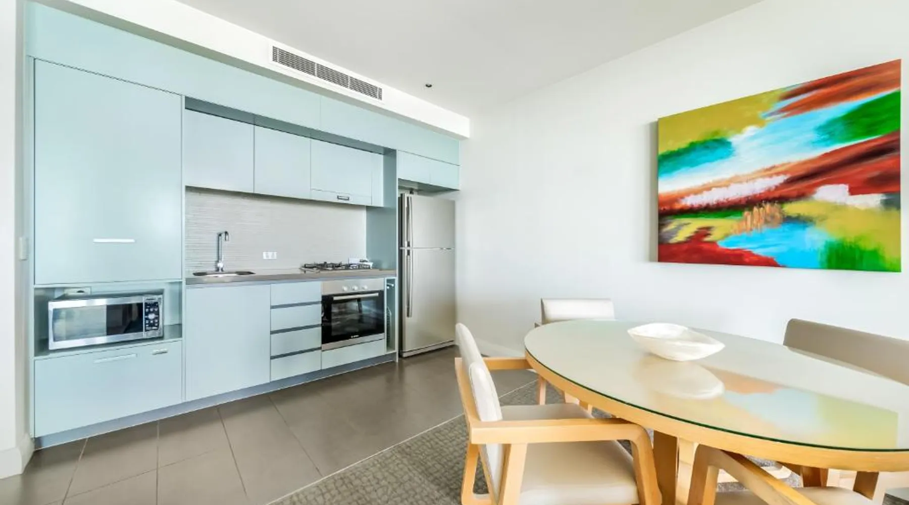 Located directly opposite the Settlement Cove Lagoon, Oaks Redcliffe Mon Komo Suites offers accommodations with private balconies and beautiful city or ocean views. It features a swimming pool, a fitness center and retail shops. All rooms feature modern décor and include a TV, DVD player and CD player. Most units also include laundry facilities and a fully equipped kitchen with stainless steel appliances. Oaks Redcliffe Mon Komo Suites is just 10 minutes’ walk from Redcliffe Museum. Brisbane is a 35-minute drive away. This apartment features a private balcony and full kitchen and laundry facilities.