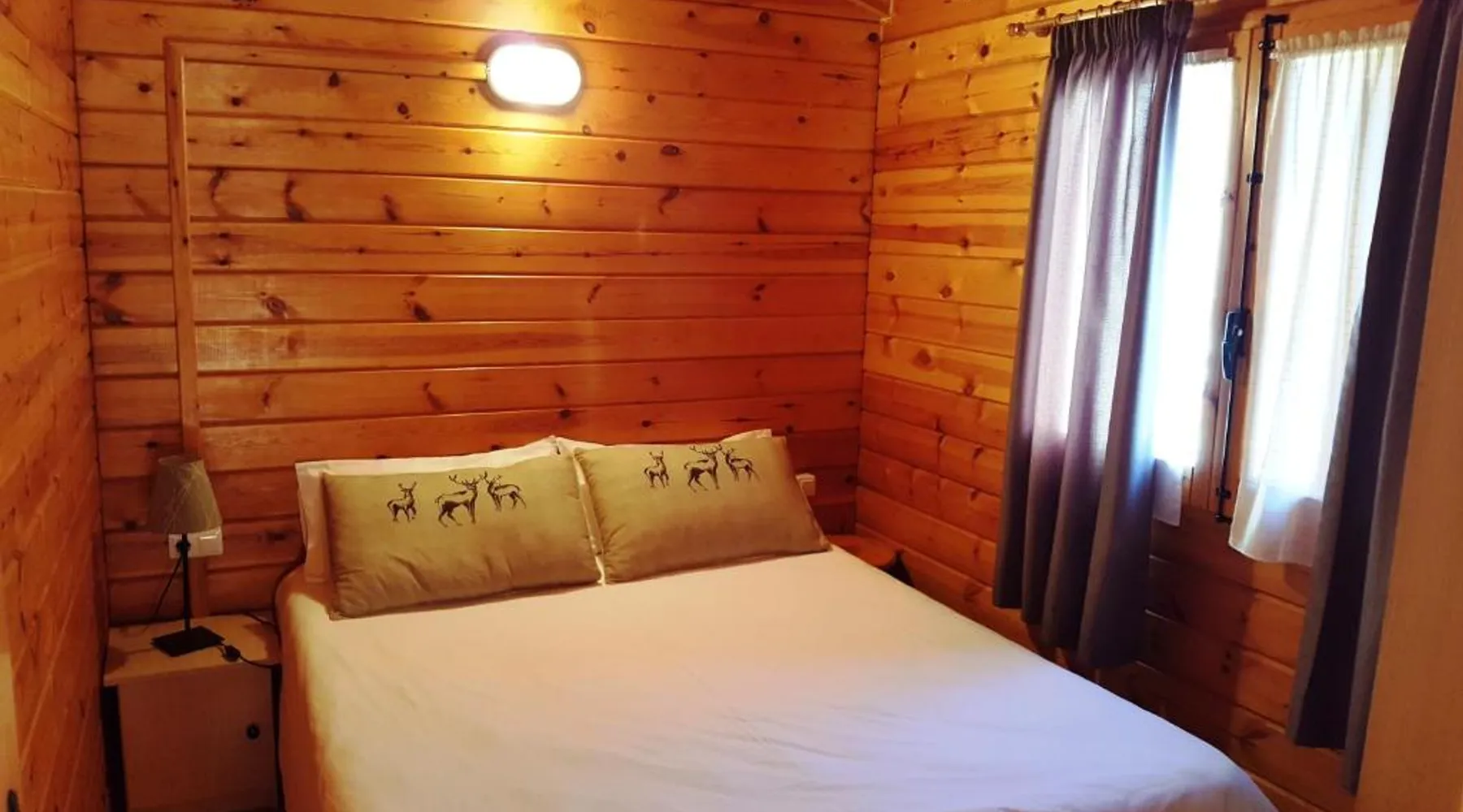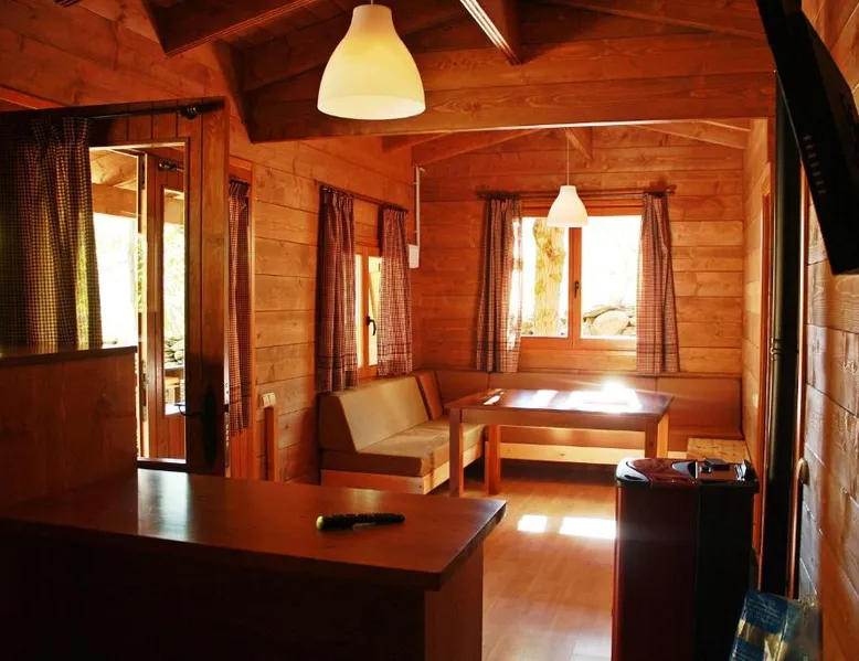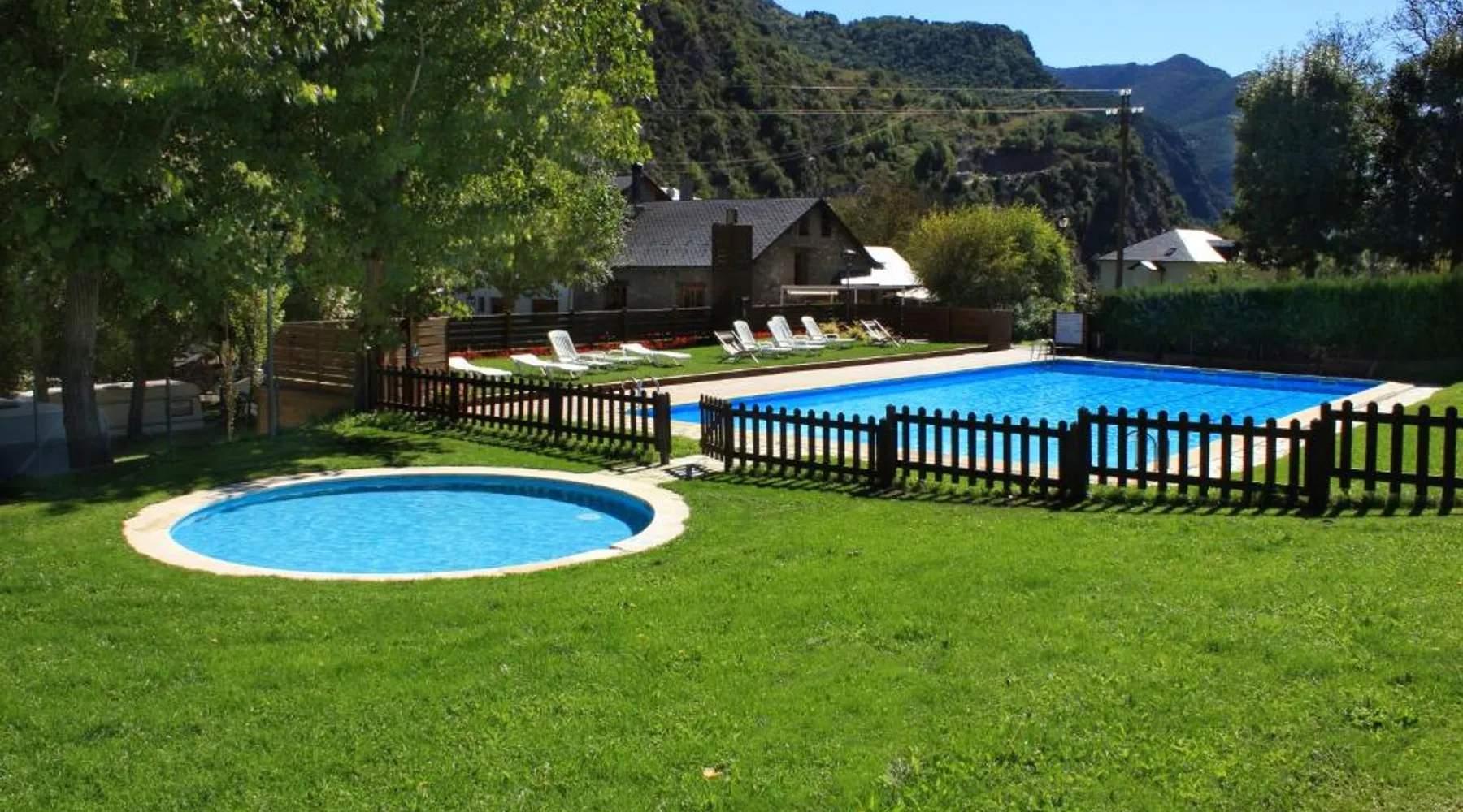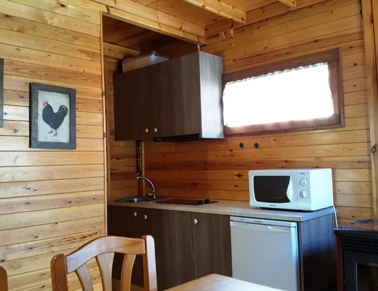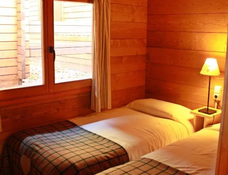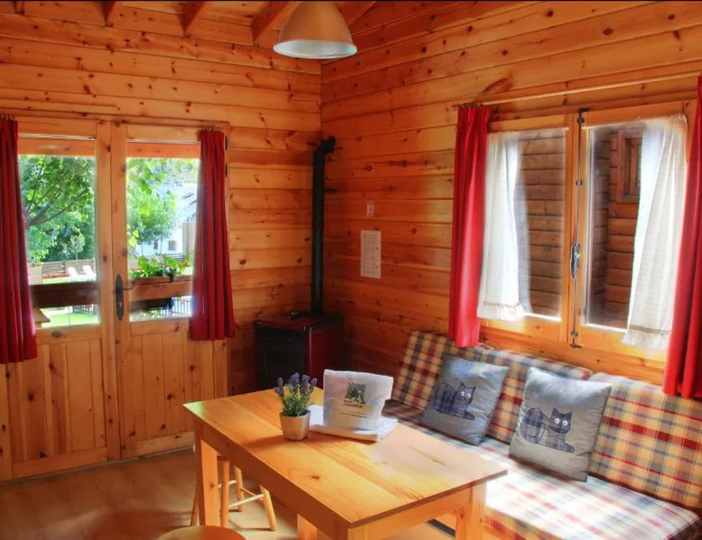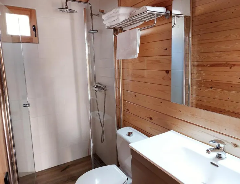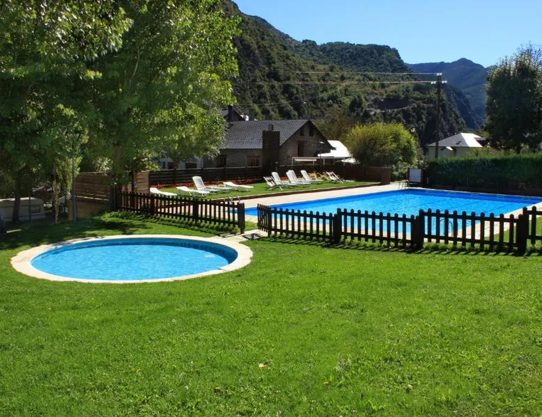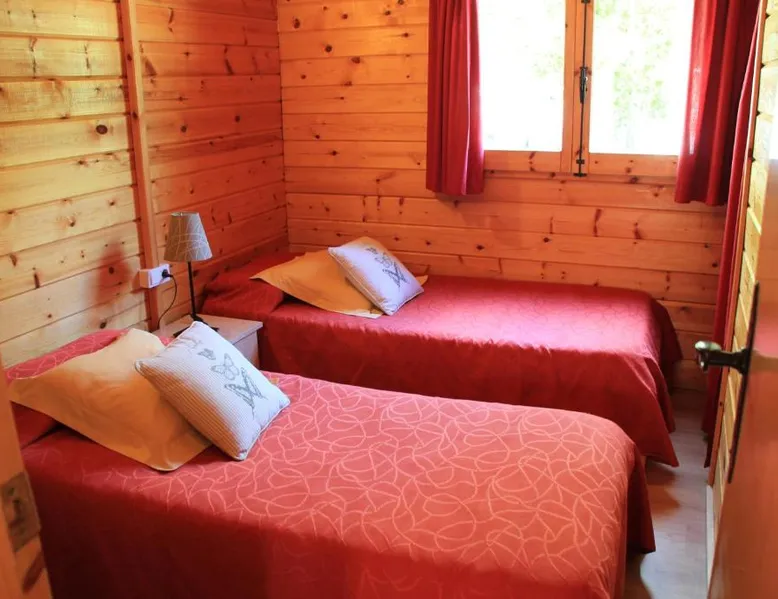 Essential Facilities: Bungalows Nou Camping in Guingueta offers a swimming pool with a view, sun terrace, and lush garden. Guests can relax at the on-site restaurant and bar, enjoy free WiFi, and take advantage of the outdoor fireplace and games room. Comfortable Accommodations: The camping features family rooms with private bathrooms, kitchenettes, and modern amenities. Additional facilities include a minimarket, waterpark, and indoor play area, ensuring a comfortable stay for all ages. Dining Experience: The family-friendly restaurant serves Catalan, Mediterranean, local, and barbecue grill cuisines in a traditional ambiance. Breakfast includes juice and cheese, and outdoor dining areas provide scenic mountain views. Activities and Location: Guests can enjoy skiing, walking tours, hiking, and cycling. Located 50 mi from Andorra–La Seu d'Urgell Airport, the property is highly rated for its convenient location and excellent staff support. This bungalow has 2 double bedrooms and a living room. The kitchen area features a fridge, a microwave and a coffee machine.