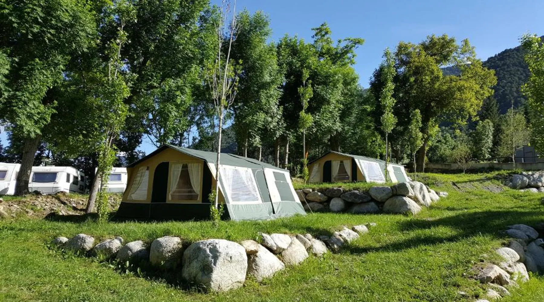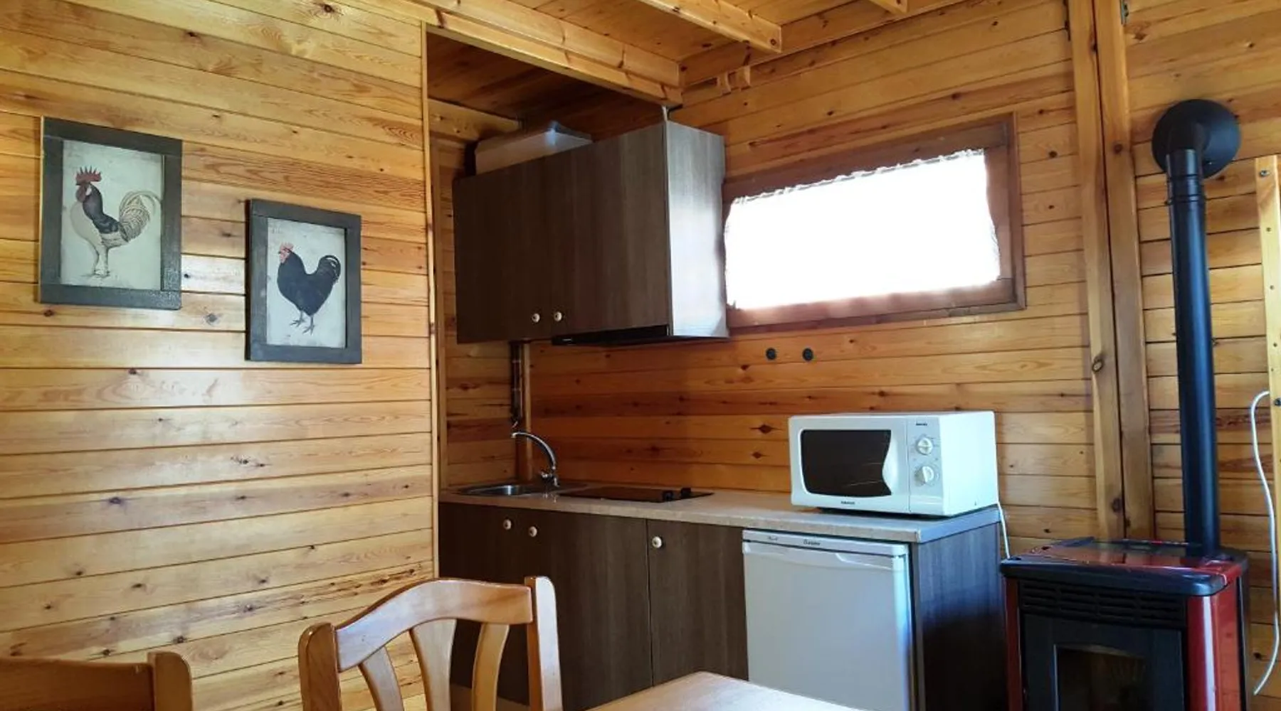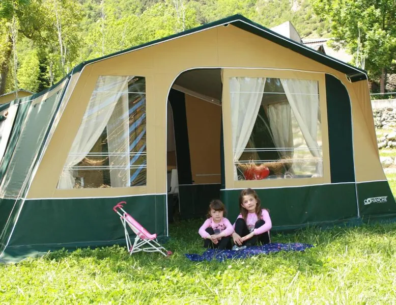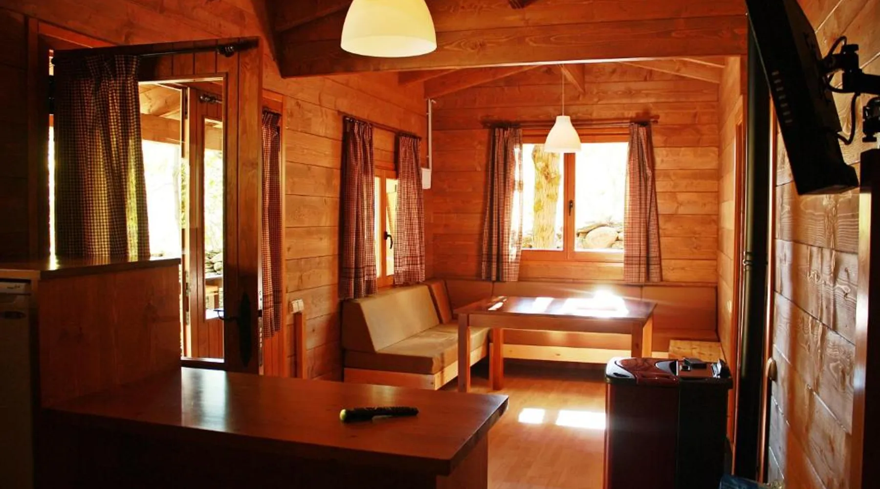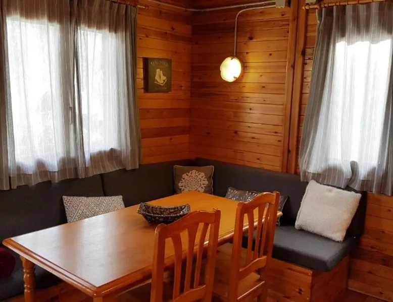 Essential Facilities: Bungalows Nou Camping in Guingueta offers a swimming pool with a view, sun terrace, and lush garden. Guests can relax at the on-site restaurant and bar, enjoy free WiFi, and take advantage of the outdoor fireplace and games room. Comfortable Accommodations: The camping features family rooms with private bathrooms, kitchenettes, and modern amenities. Additional facilities include a minimarket, waterpark, and indoor play area, ensuring a comfortable stay for all ages. Dining Experience: The family-friendly restaurant serves Catalan, Mediterranean, local, and barbecue grill cuisines in a traditional ambiance. Breakfast includes juice and cheese, and outdoor dining areas provide scenic mountain views. Activities and Location: Guests can enjoy skiing, walking tours, hiking, and cycling. Located 50 mi from Andorra–La Seu d'Urgell Airport, the property is highly rated for its convenient location and excellent staff support. This bungalow has 2 double bedrooms and a living room. The kitchen area features a fridge, a microwave and a coffee machine.