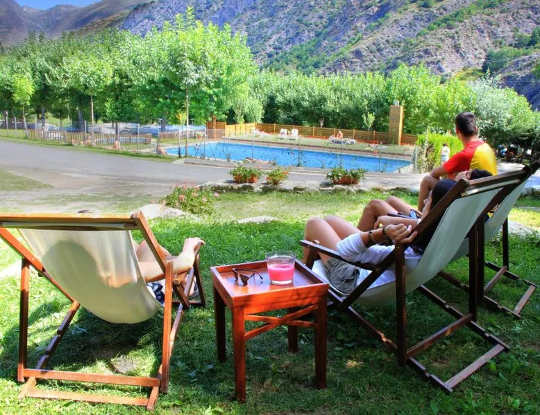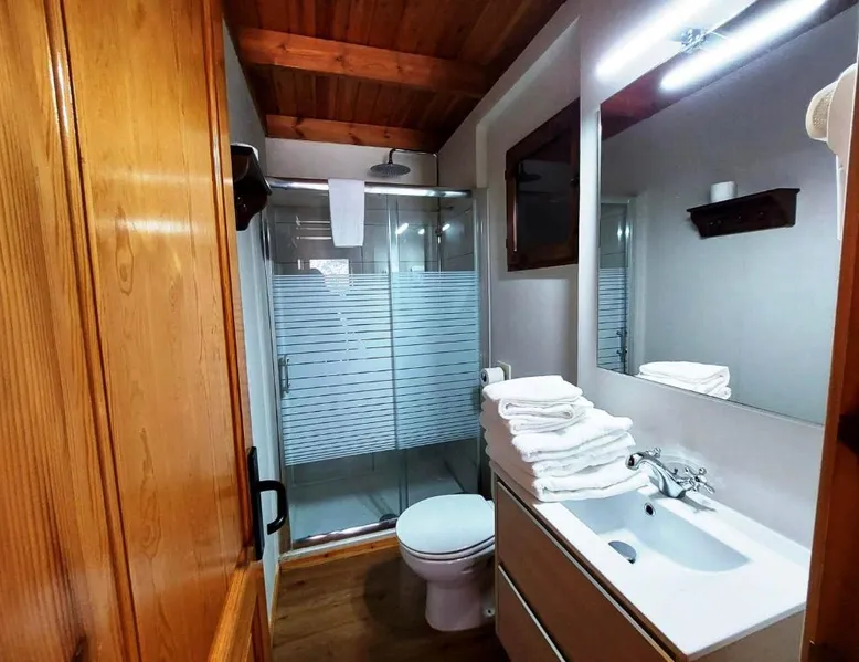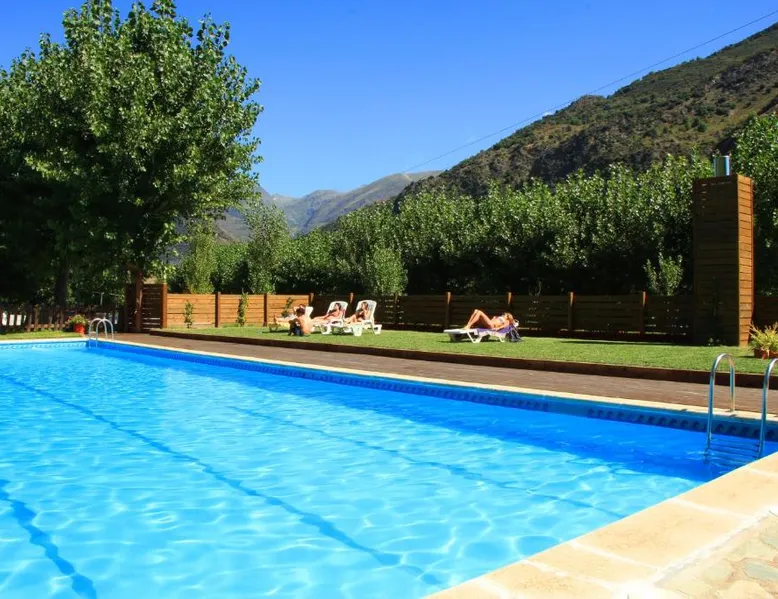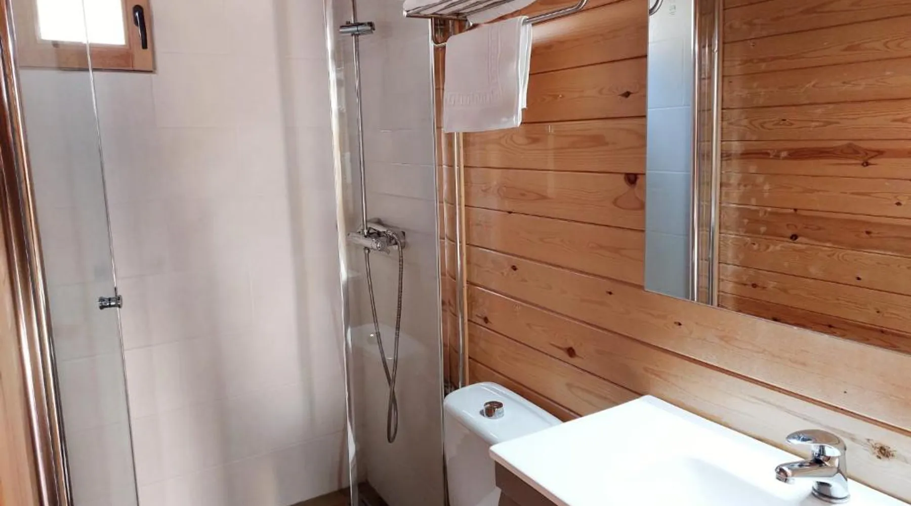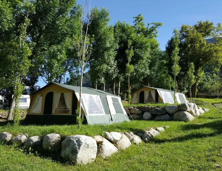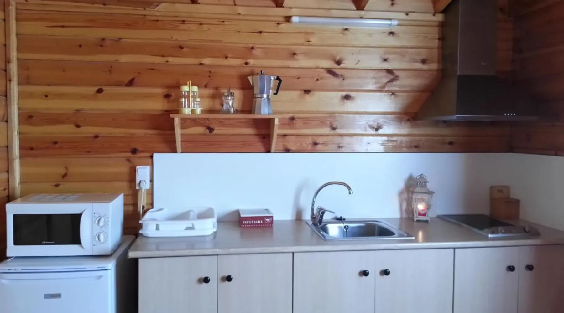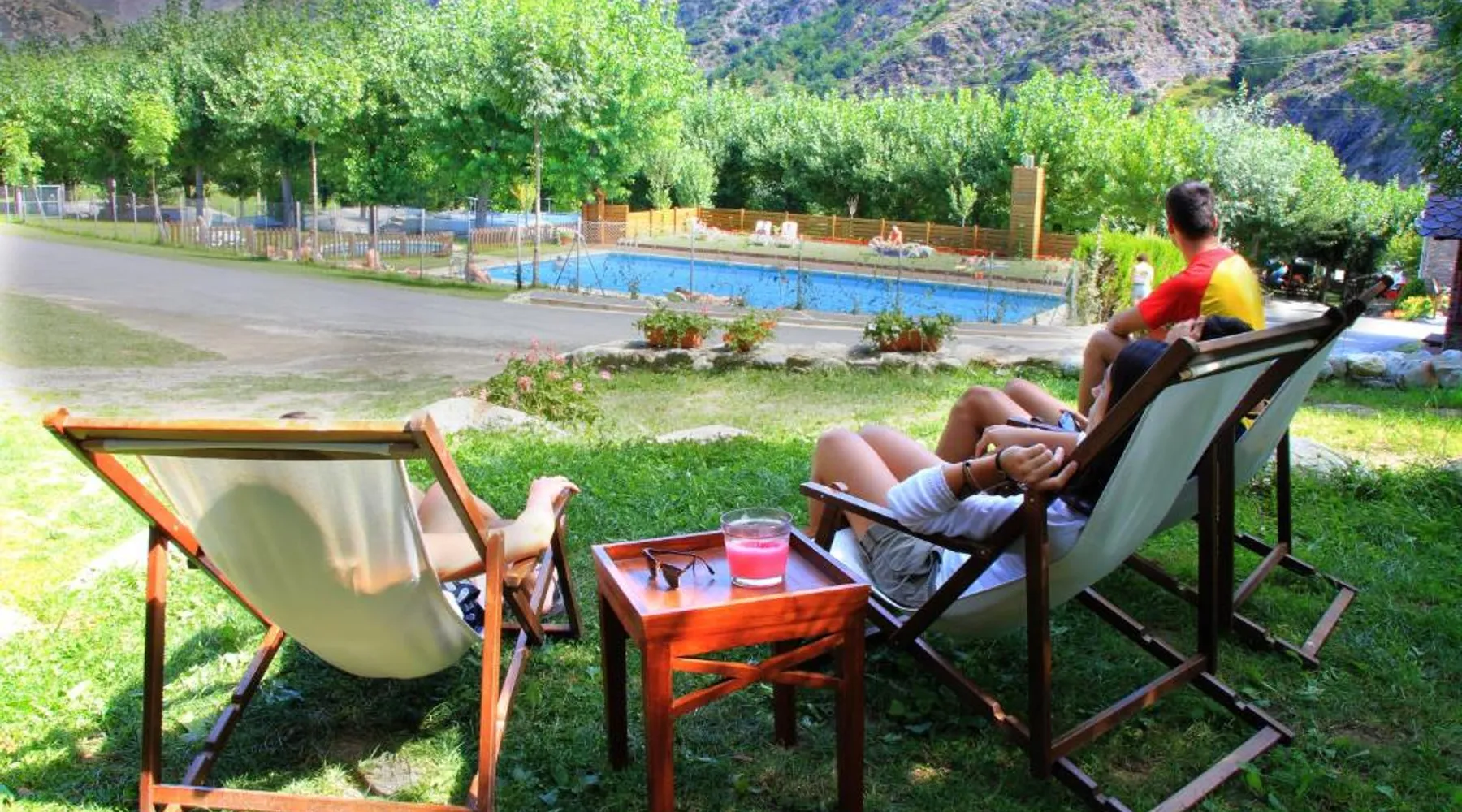Essential Facilities: Bungalows Nou Camping in Guingueta offers a swimming pool with a view, sun terrace, and lush garden. Guests can relax at the on-site restaurant and bar, enjoy free WiFi, and take advantage of the outdoor fireplace and games room. Comfortable Accommodations: The camping features family rooms with private bathrooms, kitchenettes, and modern amenities. Additional facilities include a minimarket, waterpark, and indoor play area, ensuring a comfortable stay for all ages. Dining Experience: The family-friendly restaurant serves Catalan, Mediterranean, local, and barbecue grill cuisines in a traditional ambiance. Breakfast includes juice and cheese, and outdoor dining areas provide scenic mountain views. Activities and Location: Guests can enjoy skiing, walking tours, hiking, and cycling. Located 50 mi from Andorra–La Seu d'Urgell Airport, the property is highly rated for its convenient location and excellent staff support. This bungalow has 2 double bedrooms and a living room. The kitchen area features a fridge, a microwave and a coffee machine.