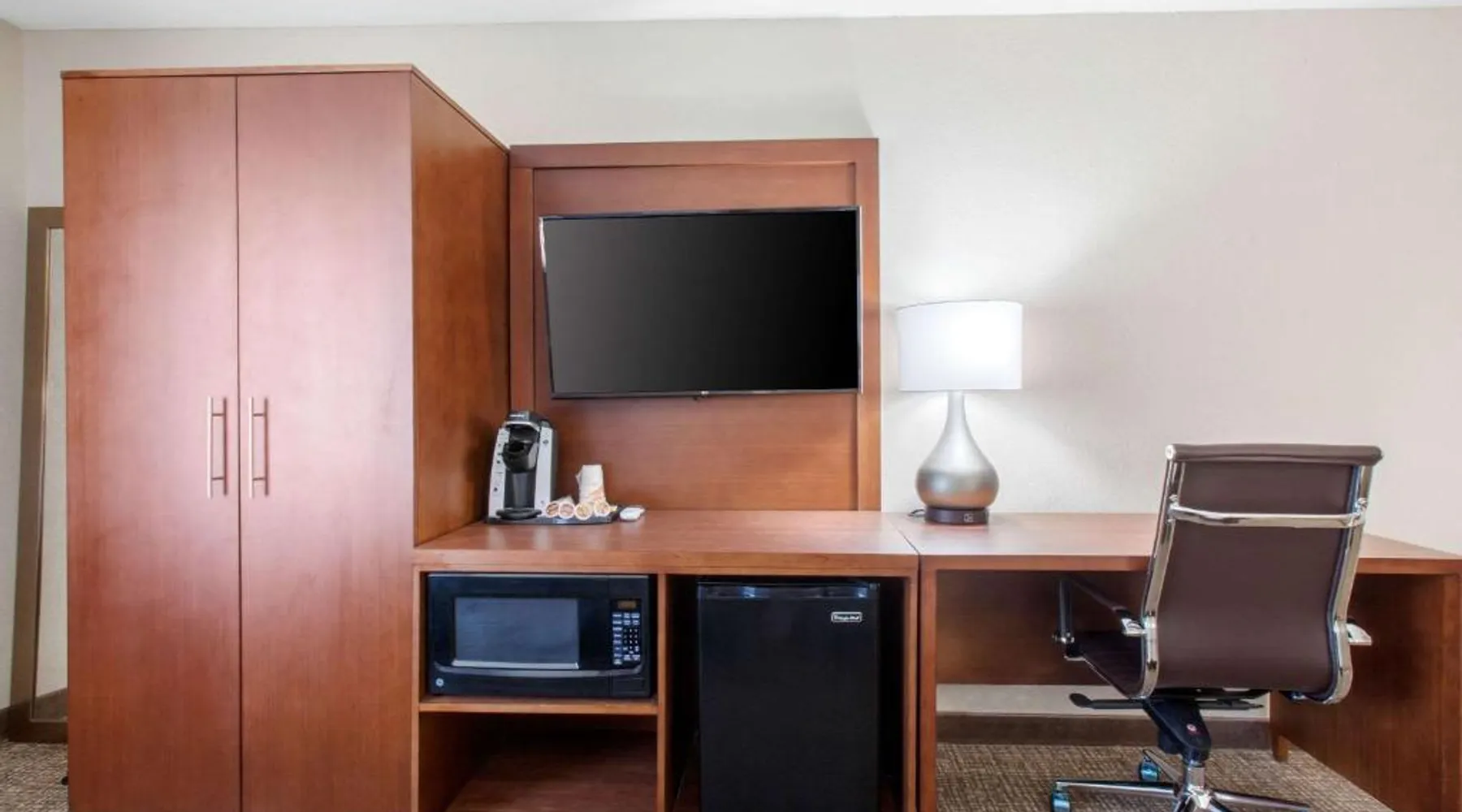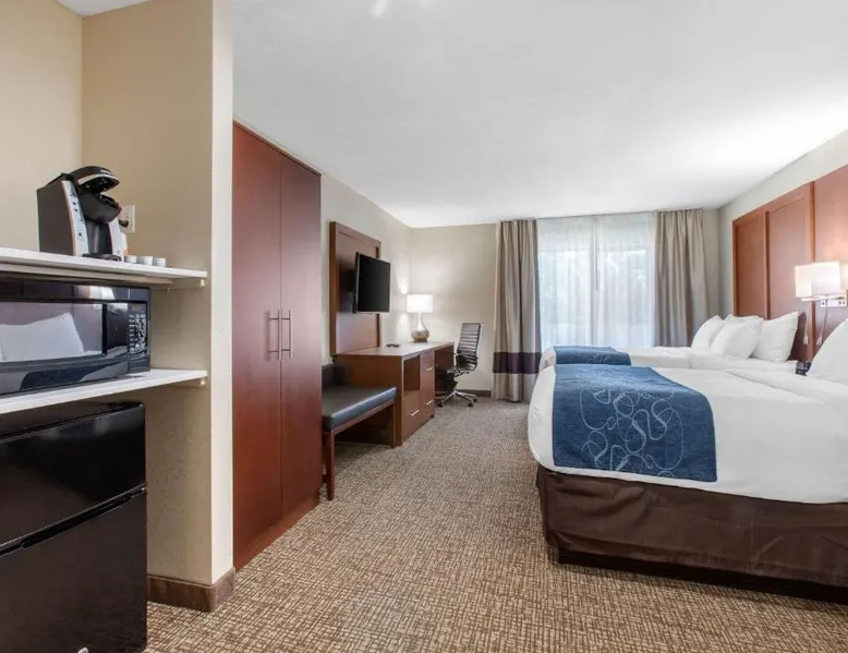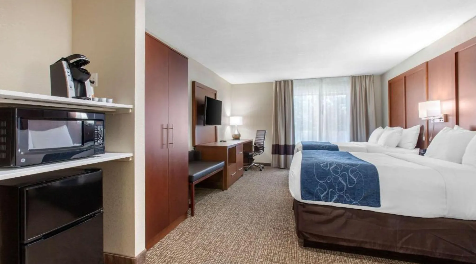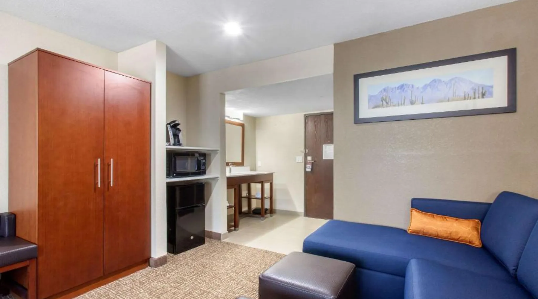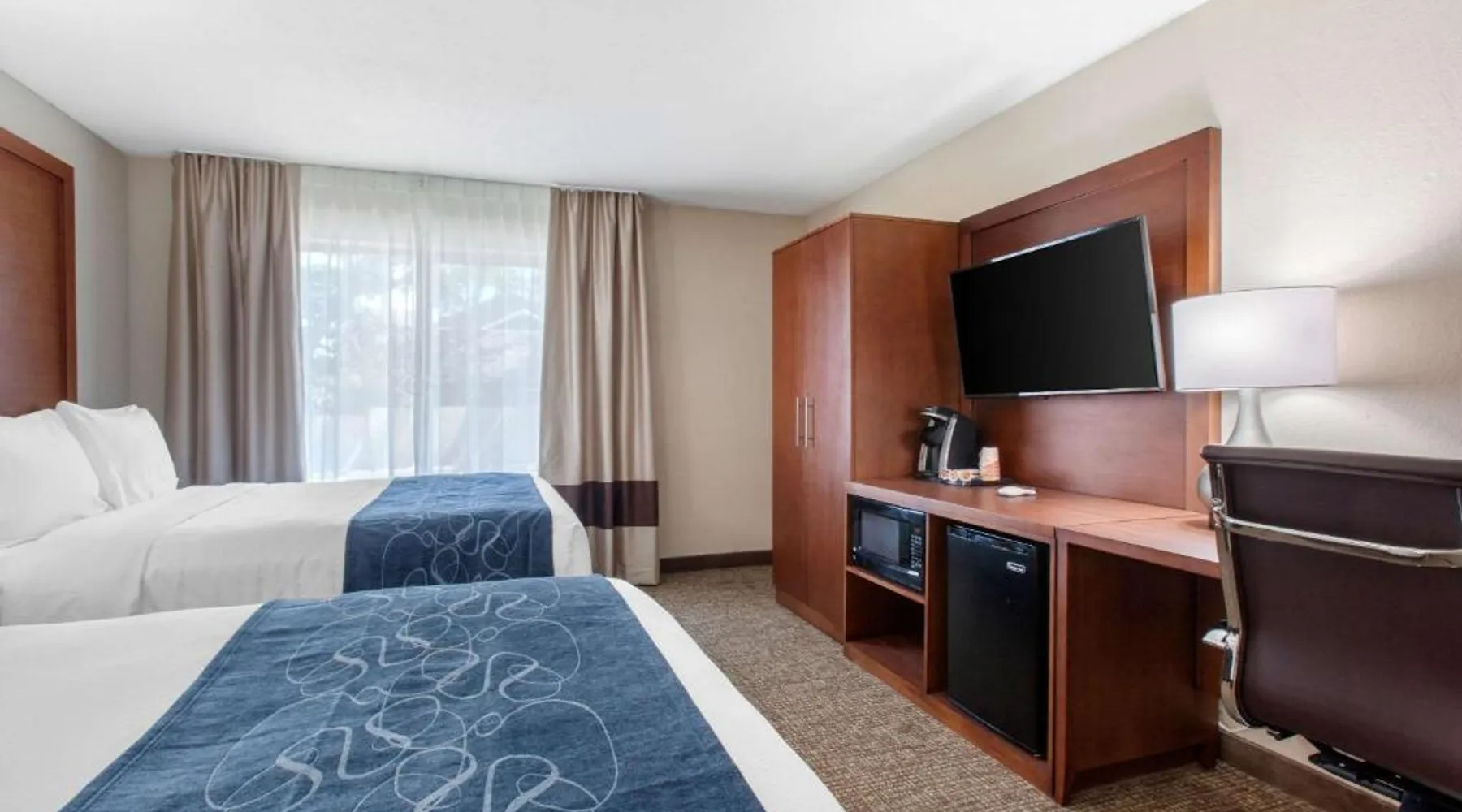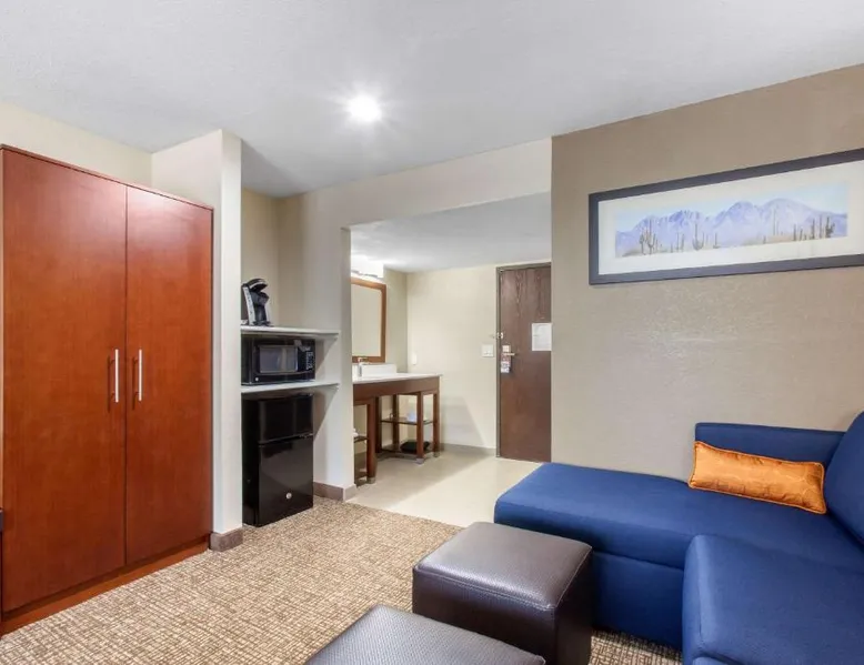 Comfortable Accommodations: Comfort Inn & Suites Pinetop Show Low in Lakeside offers family rooms with private bathrooms, tea and coffee makers, and free WiFi. Each room includes a work desk, refrigerator, microwave, and seating area. Facilities and Services: Guests enjoy a fitness center, lounge, and 24-hour front desk. Additional amenities include a business area, free on-site parking, and full-day security. Private check-in and check-out services ensure a smooth arrival and departure. Activities and Location: The hotel is located 9.3 mi from Show Low Regional Airport. Activities available include skiing, hiking, and cycling. Guests appreciate the room cleanliness, bed comfort, and breakfast provided by the property. The family room provides a tea and coffee maker, a seating area, as well as a private bathroom featuring a shower and a hairdryer. The unit offers 2 beds.