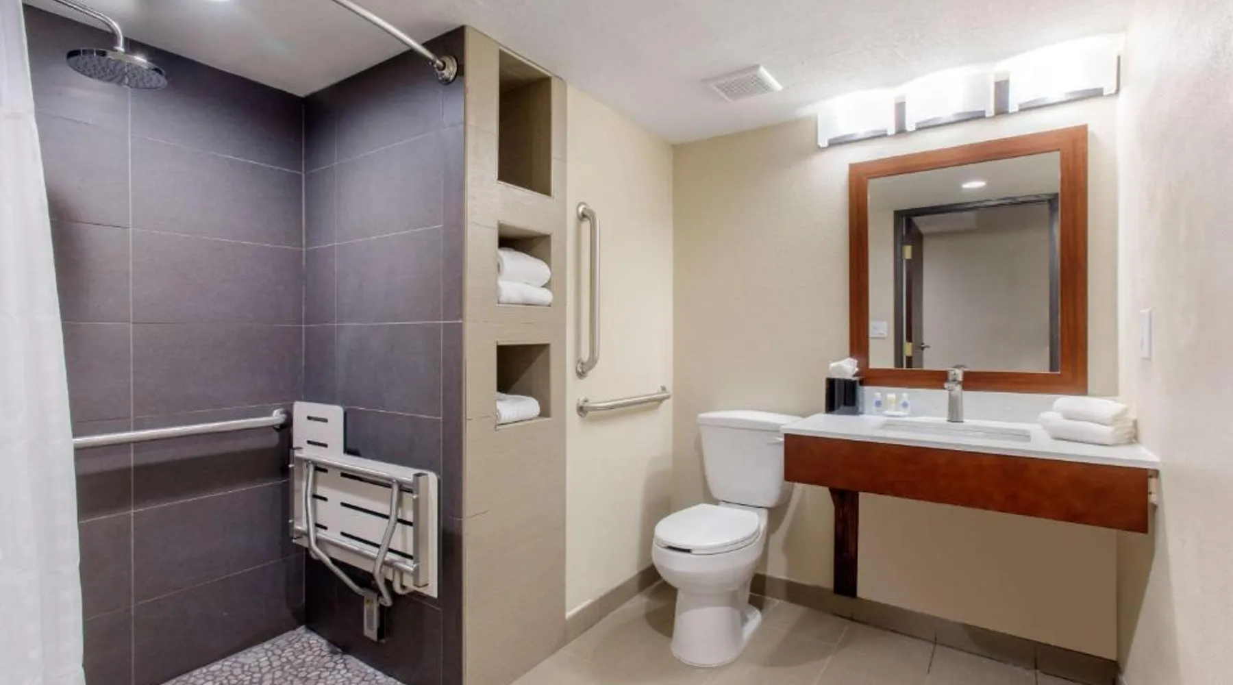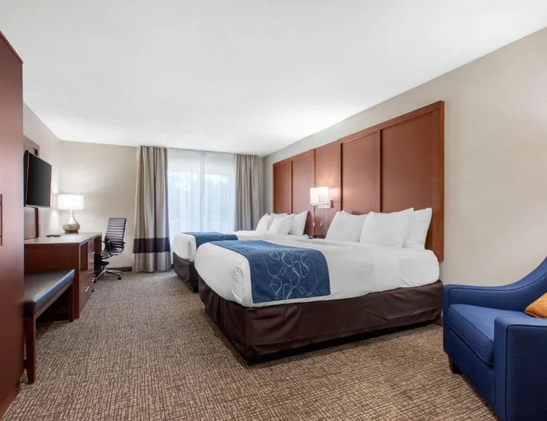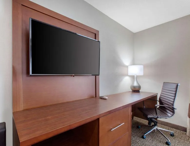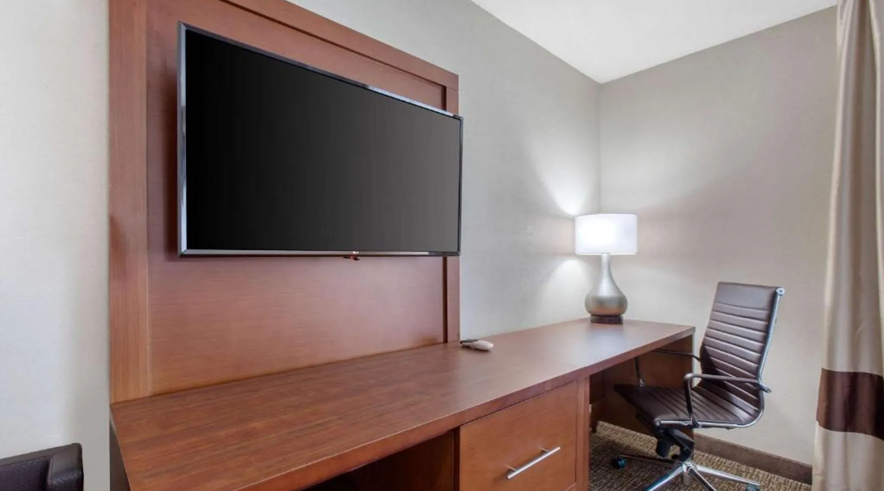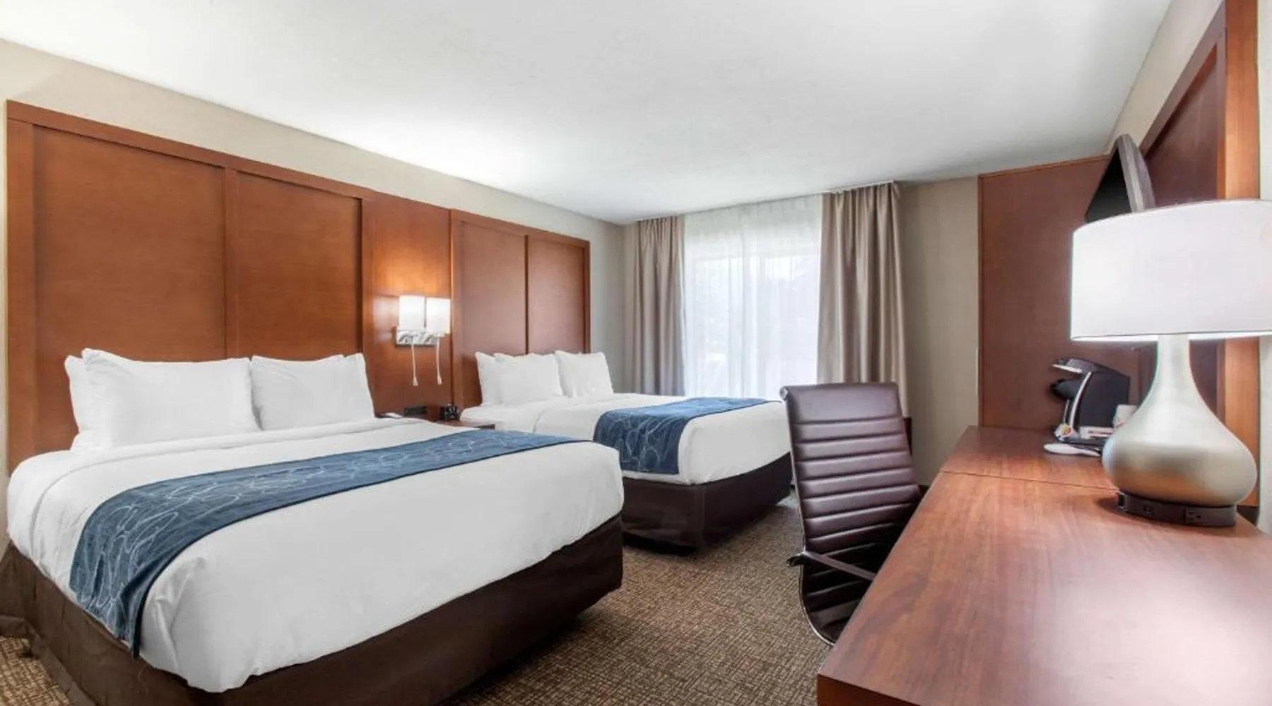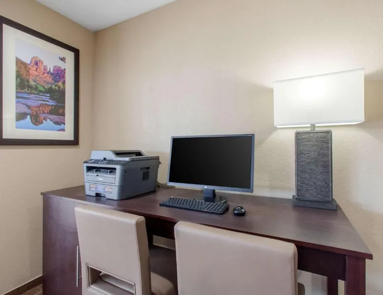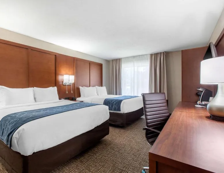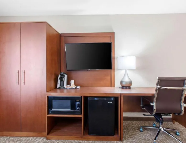 Comfortable Accommodations: Comfort Inn & Suites Pinetop Show Low in Lakeside offers family rooms with private bathrooms, tea and coffee makers, and free WiFi. Each room includes a work desk, refrigerator, microwave, and seating area. Facilities and Services: Guests enjoy a fitness center, lounge, and 24-hour front desk. Additional amenities include a business area, free on-site parking, and full-day security. Private check-in and check-out services ensure a smooth arrival and departure. Activities and Location: The hotel is located 9.3 mi from Show Low Regional Airport. Activities available include skiing, hiking, and cycling. Guests appreciate the room cleanliness, bed comfort, and breakfast provided by the property. The family room provides a tea and coffee maker, a seating area, as well as a private bathroom featuring a shower and a hairdryer. The unit offers 2 beds.