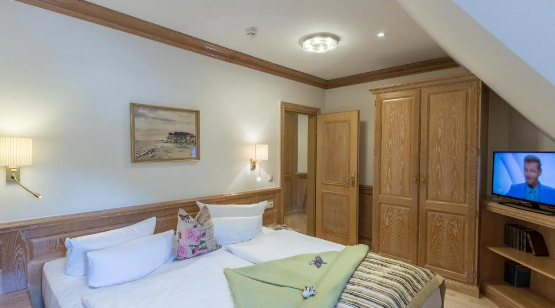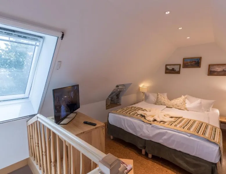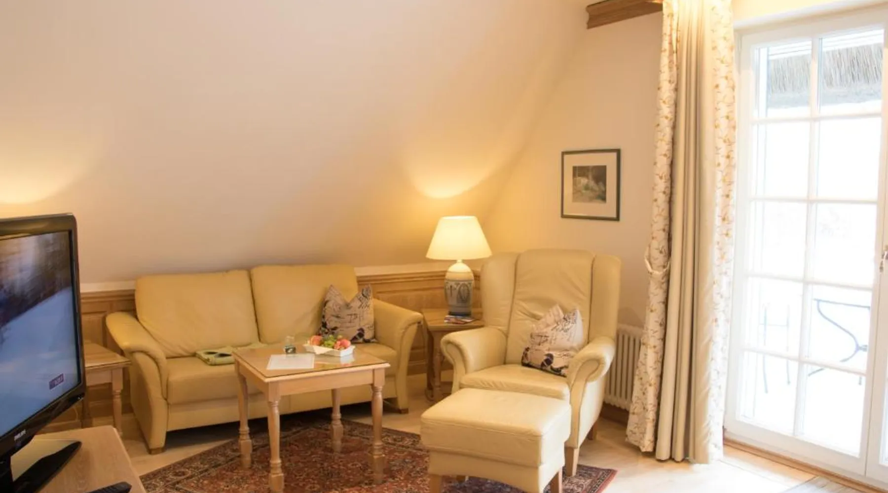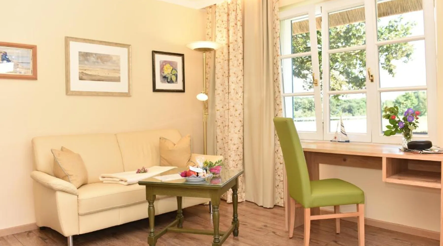 This hotel on the Fischland-Darß-Zingst Peninsula is a traditional thatched-roof cottage in Ahrenshoop, a 5-minute walk from the Baltic Sea Beach. Romantikhotel Fischerwiege offers a spa with a swimming pool. Romantikhotel Fischerwiege is part of an artists' colony. Unique design features include a ceramic fireplace in the foyer, an iron spiral staircase and seaside motifs. All rooms at the Romantikhotel Ahrenshoop include cable TV and a private bathroom with hairdryer. Free Wi-Fi is available in public areas. Guests can enjoy a daily breakfast buffet and homemade cakes on the Fischerwiege's terrace. Northern German specialties and seafood dishes are served in the Namenlos restaurant next door. Massages are available in the Romantikhotel's spa, and there is also a Finnish sauna and steam room. The surrounding natural countryside is ideal for hiking, cycling and fishing. This suite features a combined living room/bedroom, a seating area, a flat-screen TV, telephone, mini-bar and work desk. The bathroom comes with a shower, a hairdryer, a make-up mirror and complimentary toiletries.