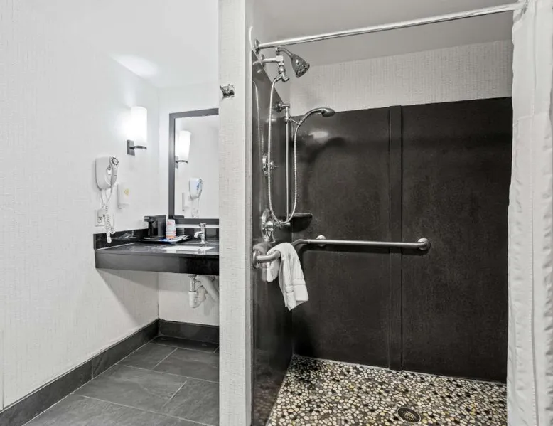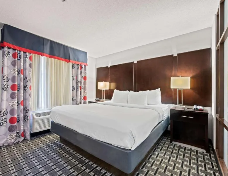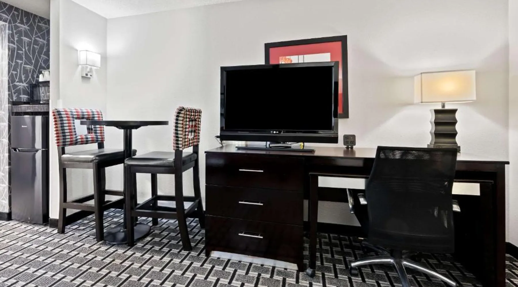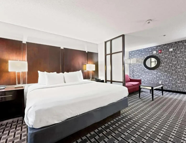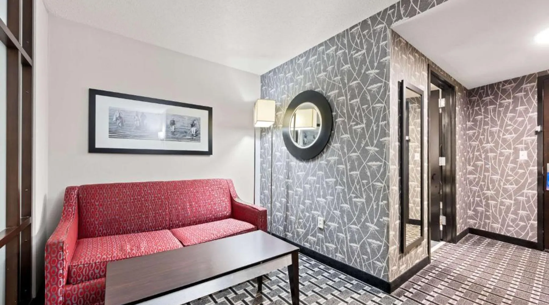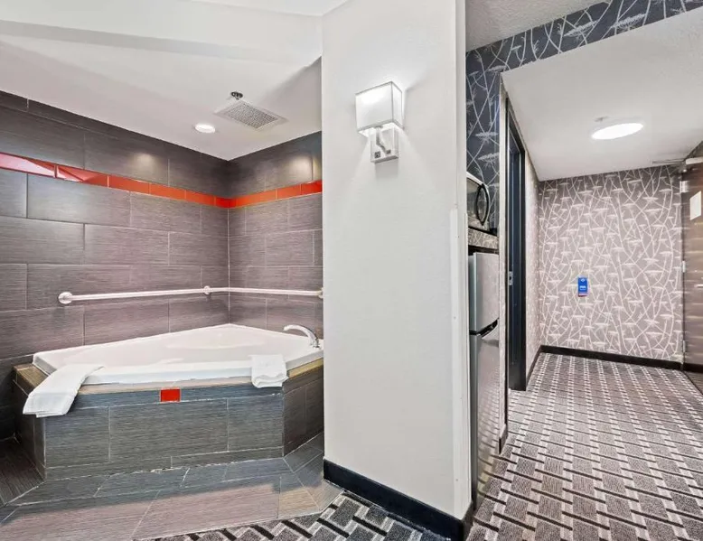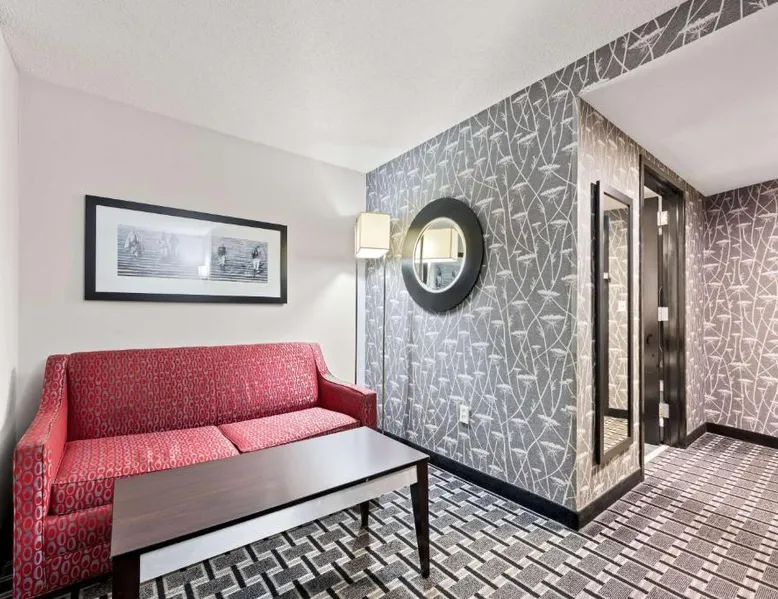 This hotel is a 5-minute drive from historic downtown Williamsburg, Virginia and the College of William and Mary. It features an indoor pool and modern suites with a flat-screen cable TV. A microwave, refrigerator and coffee maker are standard in every suite at the Comfort Suites Bypass Williamsburg. Decorated with rich colors and dark wood furniture, all suites include free Wi-Fi and a sitting area with sofa bed. A daily buffet breakfast is served each morning and features make-your-own waffles. Snacks and beverages can be purchased at the on-site convenience store. Free access to the gym and hot tub is provided to all guests of the Williamsburg Comfort Suites. Laundry facilities and free parking are also available. Golden Horseshoe Golf Course is just 2.5 miles from the hotel. The Williamsburg Winery is 5.7 miles away. This suite features a sofa bed, microwave and refrigerator.
