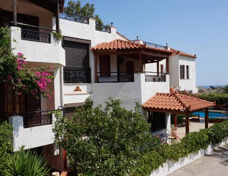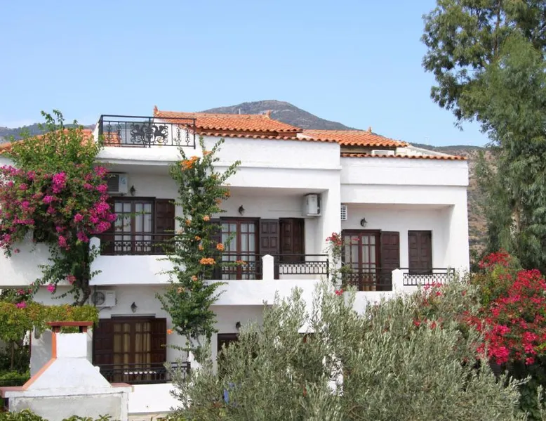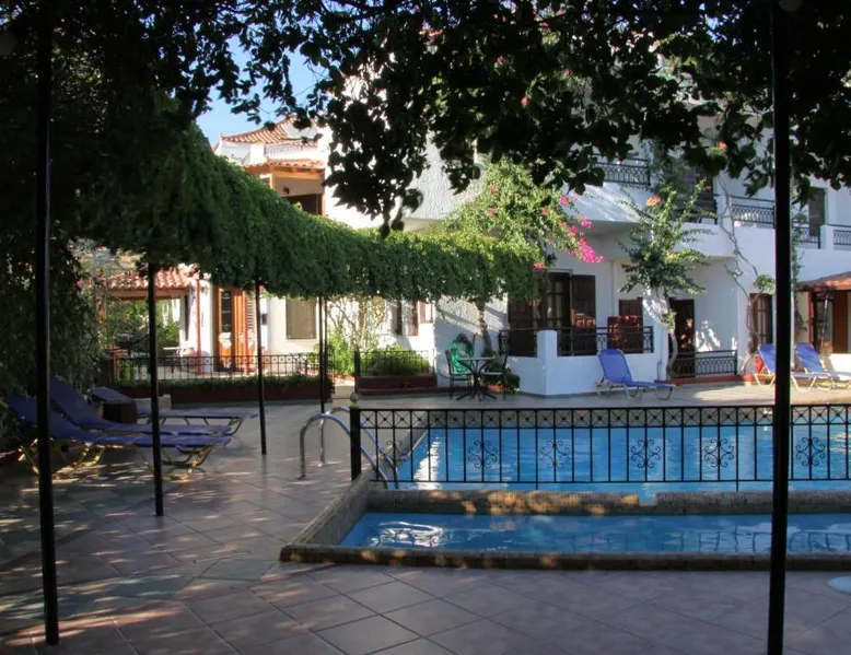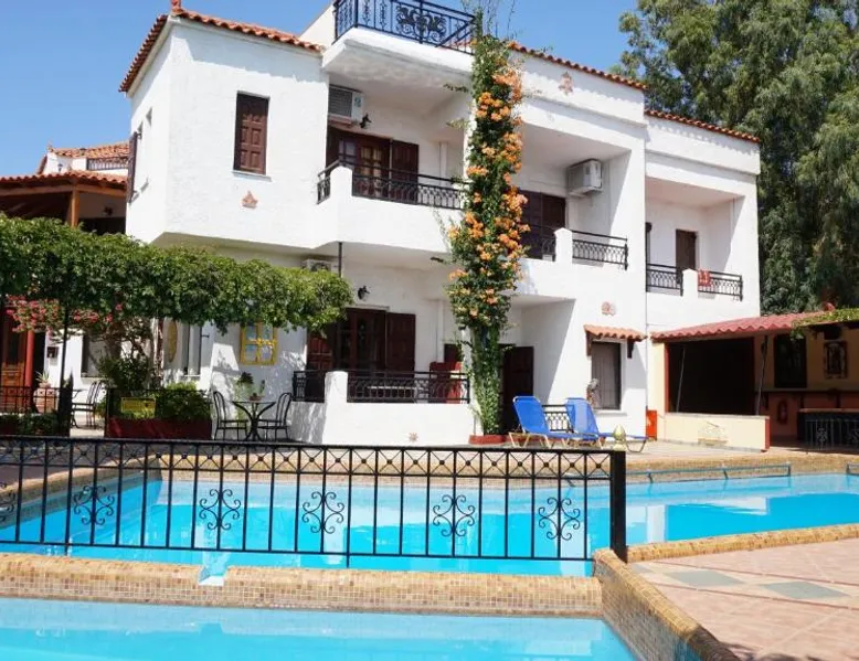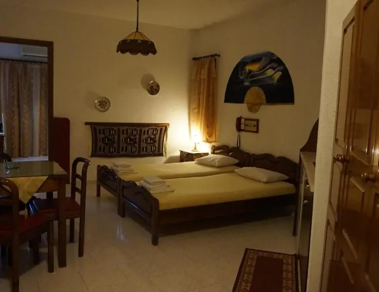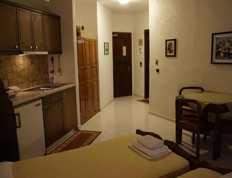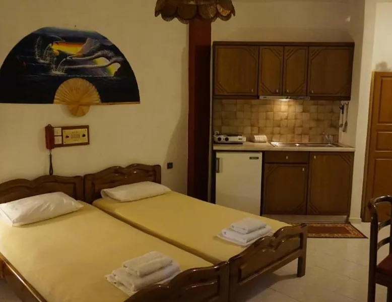 Comfortable Accommodations: Hotel Mary in Marathokampos offers family rooms with air-conditioning, kitchenettes, balconies, and private bathrooms. Each room includes a terrace, dining table, and modern amenities such as a refrigerator and stovetop. Leisure Facilities: Guests can relax on the sun terrace, in the garden, or by the outdoor swimming pool. The aparthotel features a bar, outdoor seating area, and a kids' pool. Free WiFi is available throughout the property. Prime Location: Located 19 mi from Samos International Airport, Hotel Mary is a short walk from Votsalakia Kampos Beach. Nearby attractions include the Folklore Museum of Karlovasi (9.9 mi) and Moni Megalis Panagias (15 mi). Highly rated for its convenient location and beach access. The air-conditioned apartment features 2 bedrooms and 1 bathroom with a shower and a hairdryer. Guests can make meals in the kitchenette that comes with a stovetop, a refrigerator, kitchenware and a tea and coffee maker. The apartment has a terrace with outdoor furniture and mountain views to relax in after a busy day. The unit offers 3 beds.