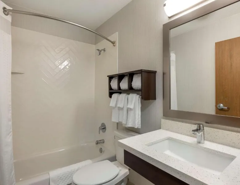 Comfortable Accommodations: Rooms feature air-conditioning, private bathrooms, tea and coffee makers, hairdryers, work desks, free toiletries, showers, carpeted floors, TVs, and wardrobes. Additional amenities include sofa beds, refrigerators, and microwaves. Leisure Facilities: Guests can enjoy a fitness center, indoor swimming pool, hot tub, and waterpark. Free WiFi is available throughout the property. Convenient Location: Located in Watertown, the hotel is 5 mi from Watertown Regional Airport and 2.3 mi from Watertown Mall. Free on-site parking is provided. Guest Services: The hotel offers a 24-hour front desk, daily housekeeping, express check-in and check-out, business area, outdoor seating, and a kids' pool. Highly rated for its children's pool and convenient location. The family room offers a tea and coffee maker. The unit offers 3 beds.