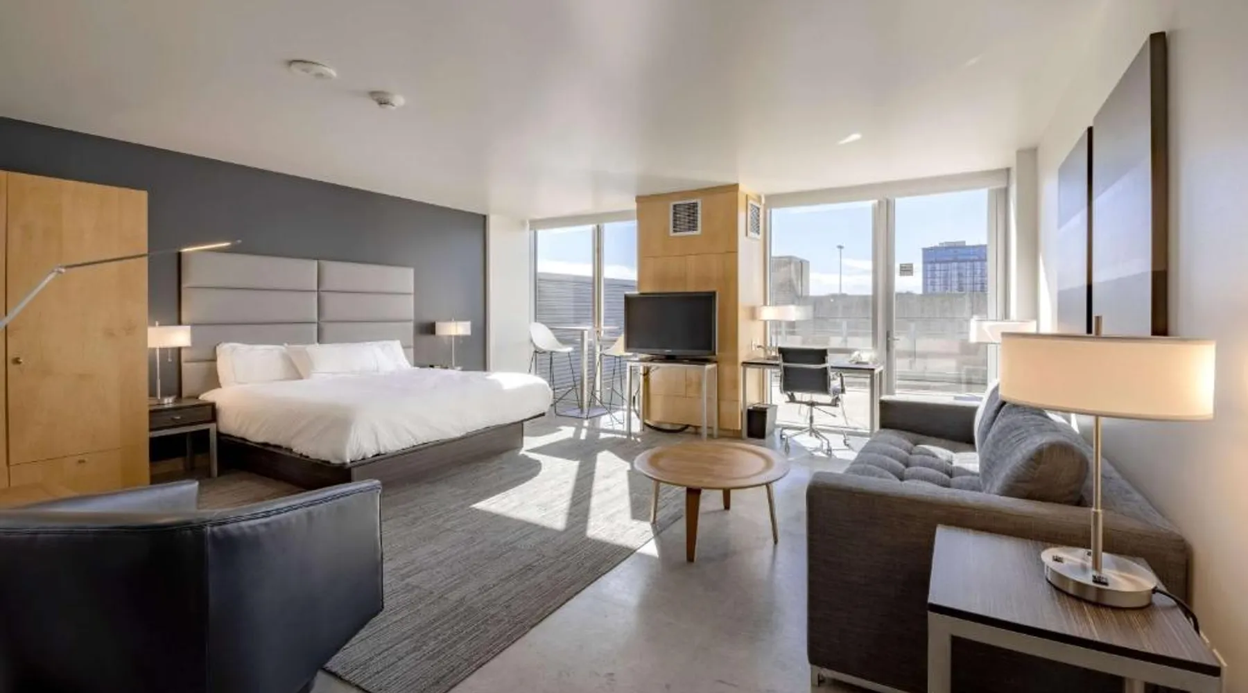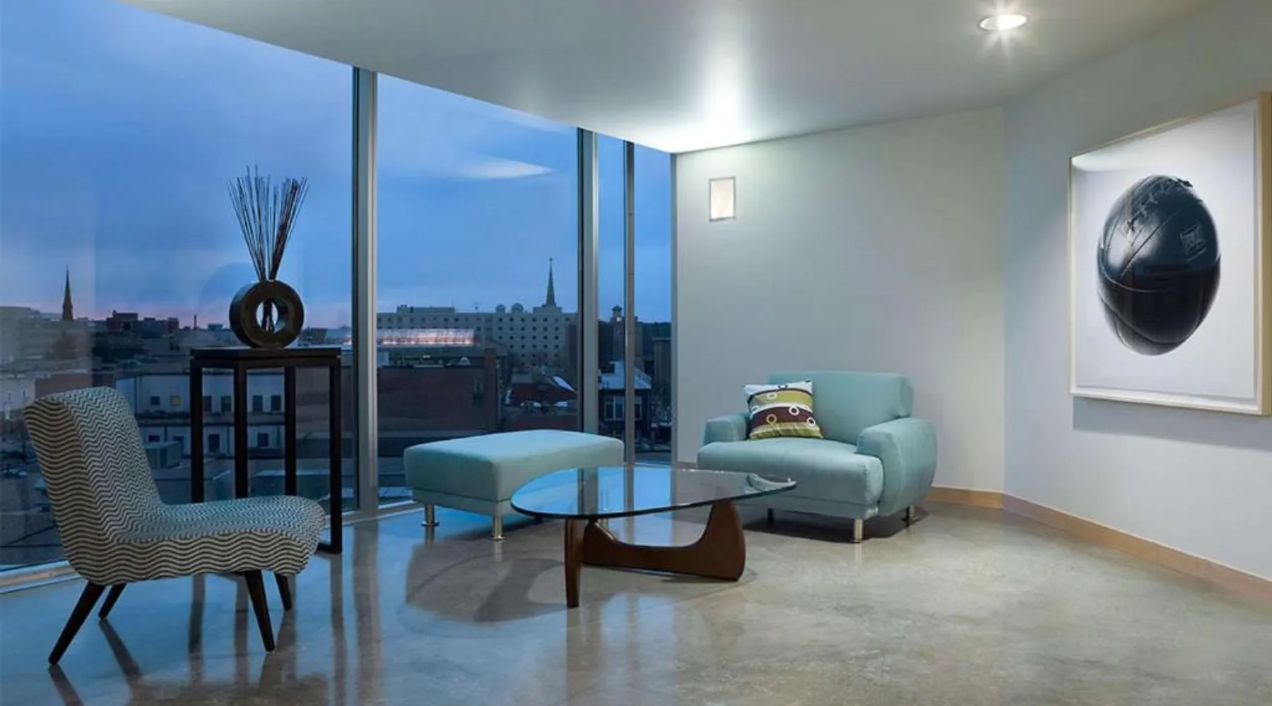 Hotelvetro Iowa City, Tapestry Collection By Hilton features modern rooms, an on-site Asian restaurant and a 4,800 square-foot roof garden overlooking the historic Pedestrian Mall. The University of Iowa is 1 block away. The Hotelvetro Iowa City, Tapestry Collection By Hilton offers rooms with a full kitchen and oversize bathroom. Each is equipped with free WiFi, a flat-screen cable TV and an in-room coffee maker. Formosa Asian Cuisine, on the ground level of hotelVetro, serves fresh sushi. Guests will have access to the the on-site fitness center. Children can also enjoy their own play area. Valet parking is available for an additional fee. The Iowa City hotelVetro is a 3-minute walk from Englert Civic Theater. A seating area with a flat-screen TV, air conditioning and a balcony are available in this spacious quadruple room. The unit has 2 beds.
