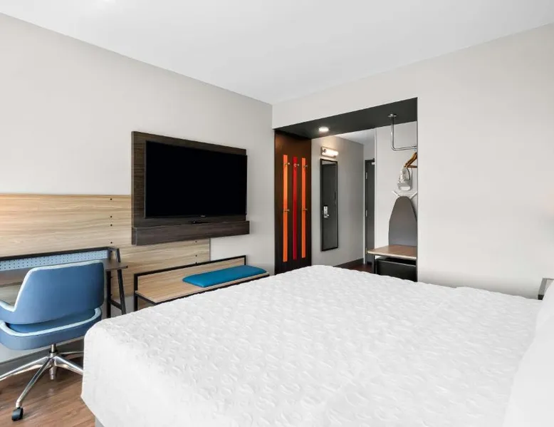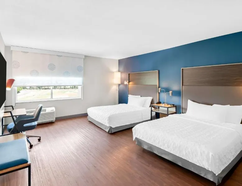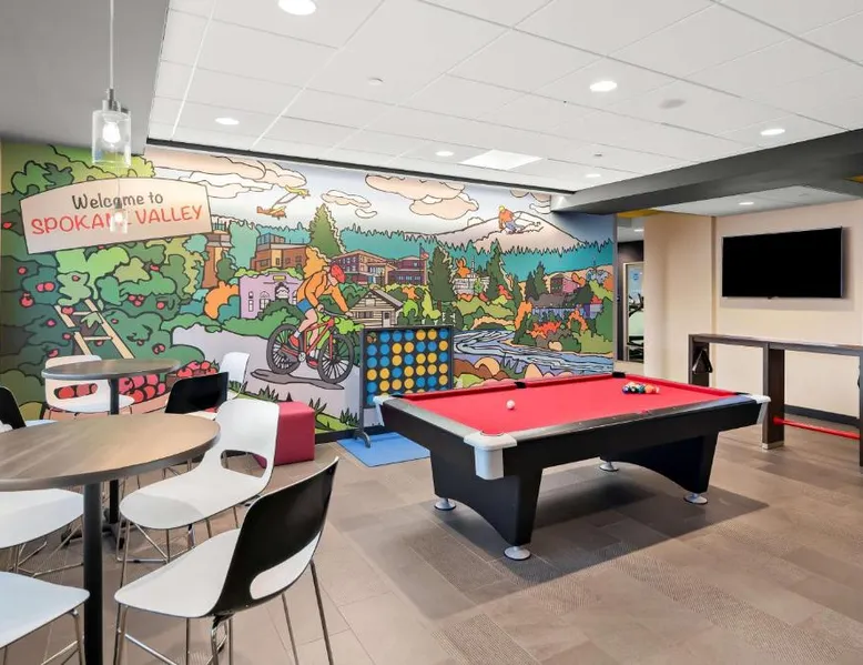 Comfortable Accommodations: Rooms feature air-conditioning, free WiFi, and modern amenities such as a work desk, refrigerator, and TV. Guests appreciate the room comfort and cleanliness. Leisure Facilities: The hotel offers a saltwater swimming pool, indoor swimming pool, and hot tub. Additional facilities include a fitness room, lounge, outdoor fireplace, and games room. Dining Options: A continental buffet breakfast is served daily, including juice, pancakes, and fruits. Free on-site private parking is available. Location and Attractions: Located in Spokane Valley, the hotel is 15 mi from Spokane International Airport. Nearby attractions include MeadowWood Golf Course (8.1 mi) and Spokane Center (11 mi). The quadruple room provides air conditioning, parquet floors, heating, a flat-screen TV with streaming services, as well as mountain views. The unit offers 2 beds.