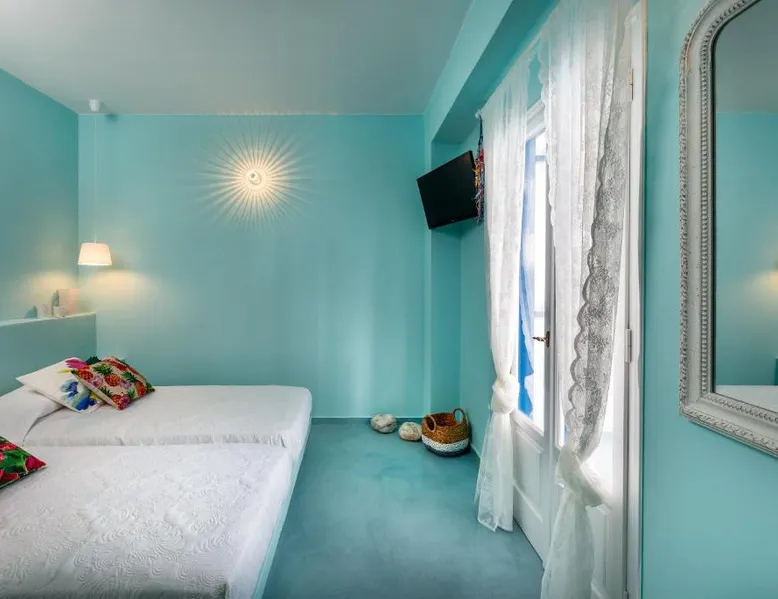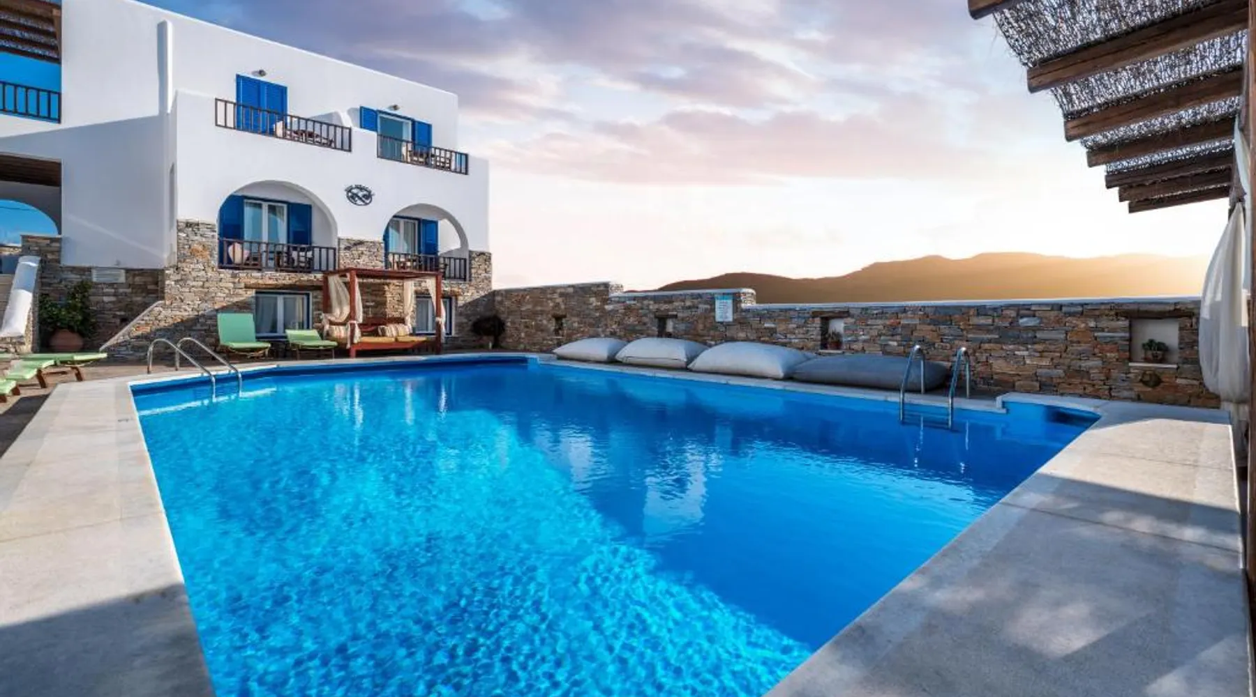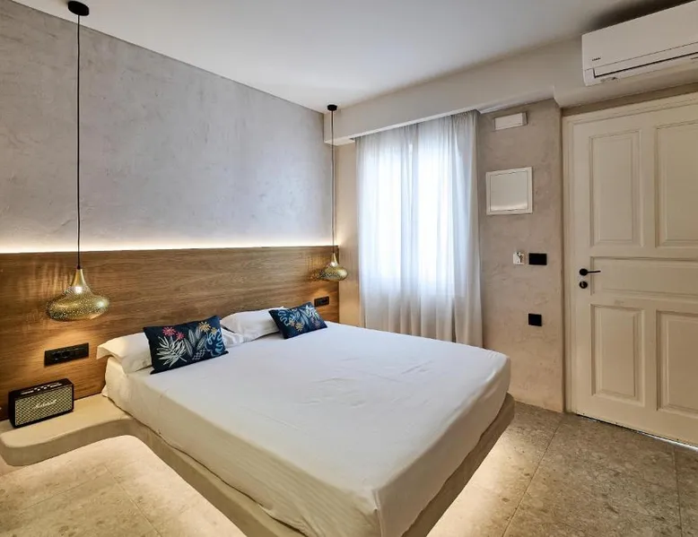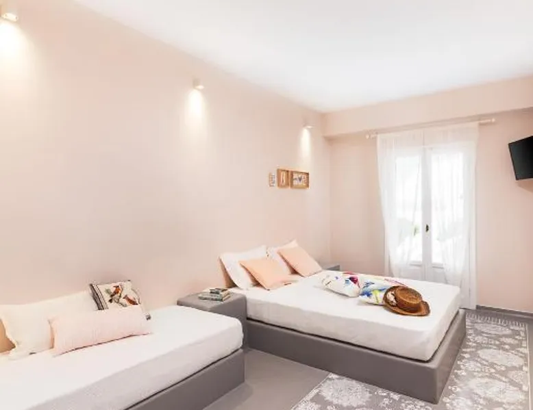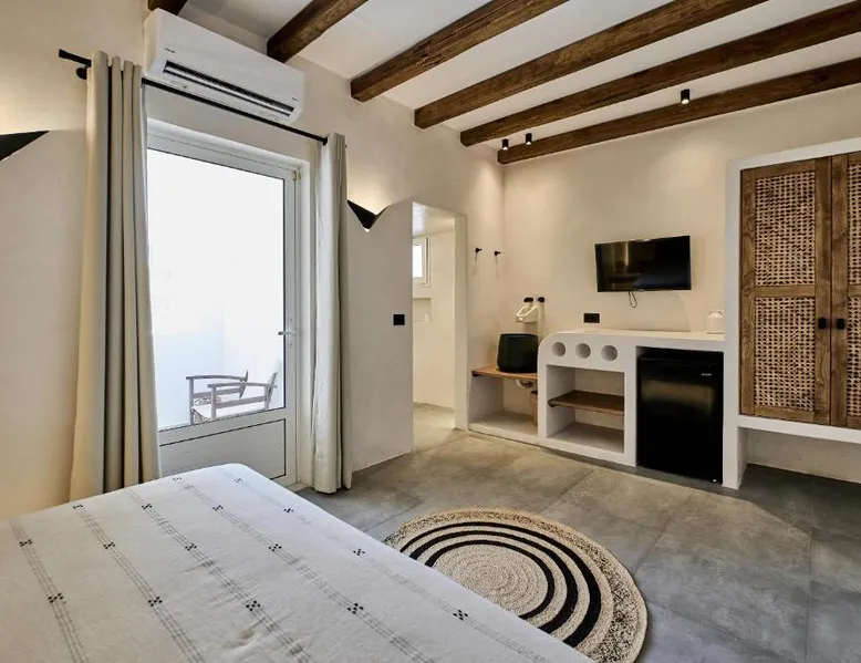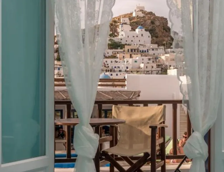 The whitewashed Ios Resort enjoys a central location in Ios Town, just a few minutes’ walk from the clubs and restaurants. It has a swimming pool with poolside bar and offers tastefully furnished rooms with free Wi-Fi. Rooms and suites at Ios Resort are decorated in earthy tones featuring wooden furnishings. They are air conditioned and have a balcony or patio with pool or town views. Facilities include an LCD TV, mini fridge and hairdryer. The hotel’s bar serves refreshing drinks, cocktails and light meals next to the pool, while continental breakfast is prepared daily. BBQ nights are organized on a weekly basis. Ios Resort is 1.9 mi away from the port and the popular Mylopotas Beach. At 656 feet guests can find a bus station and at 328 feet there is a supermarket. Decorated in earthy tones and featuring wooden furnishings this room is air conditioned and has a balcony with town or pool views.