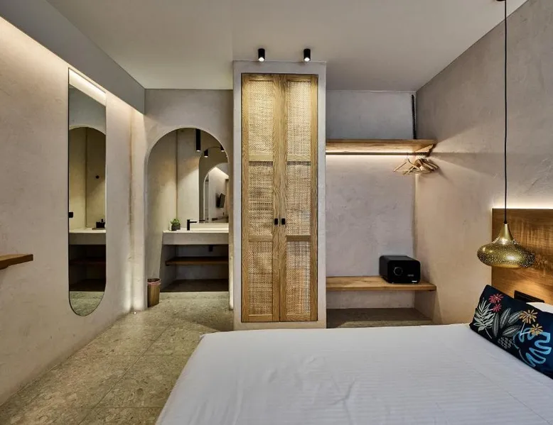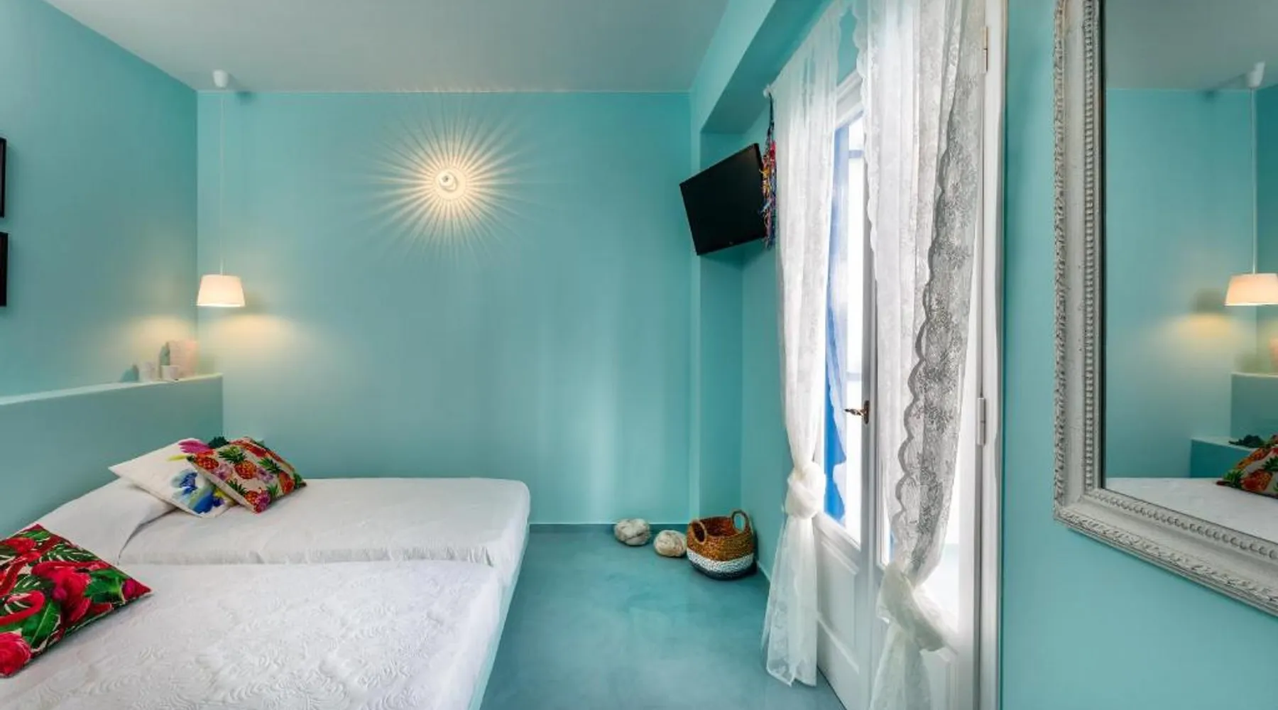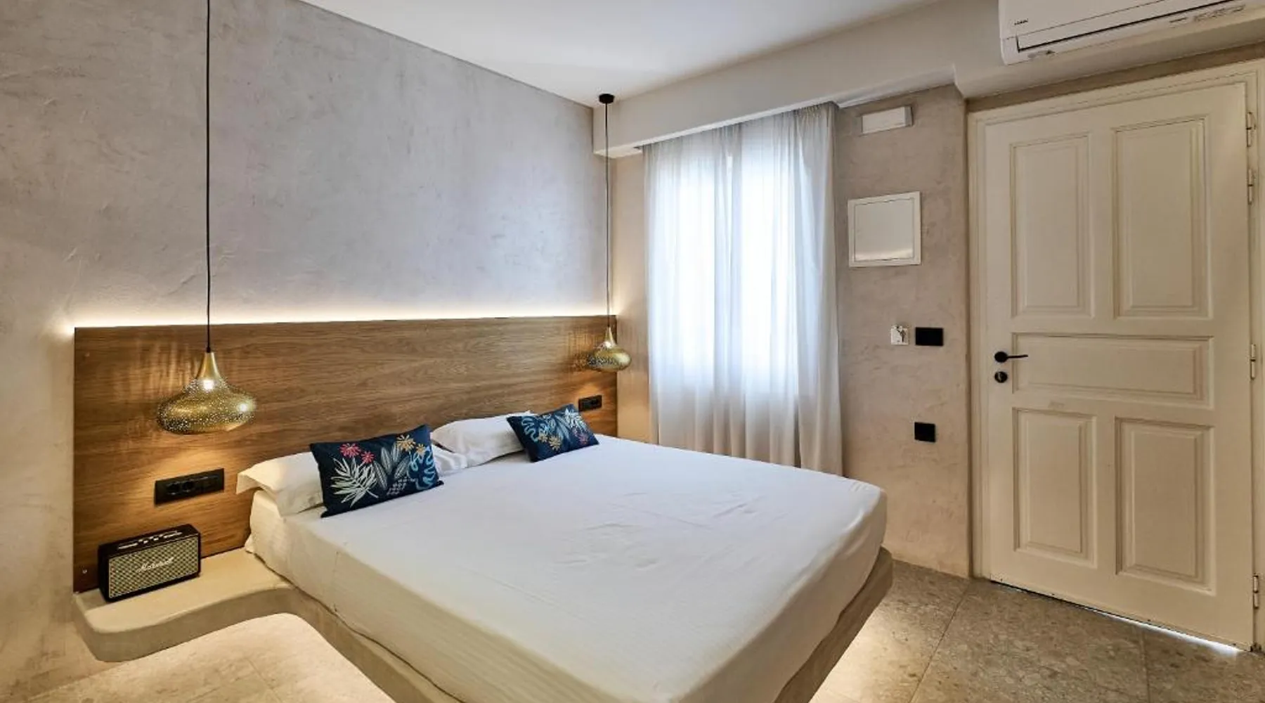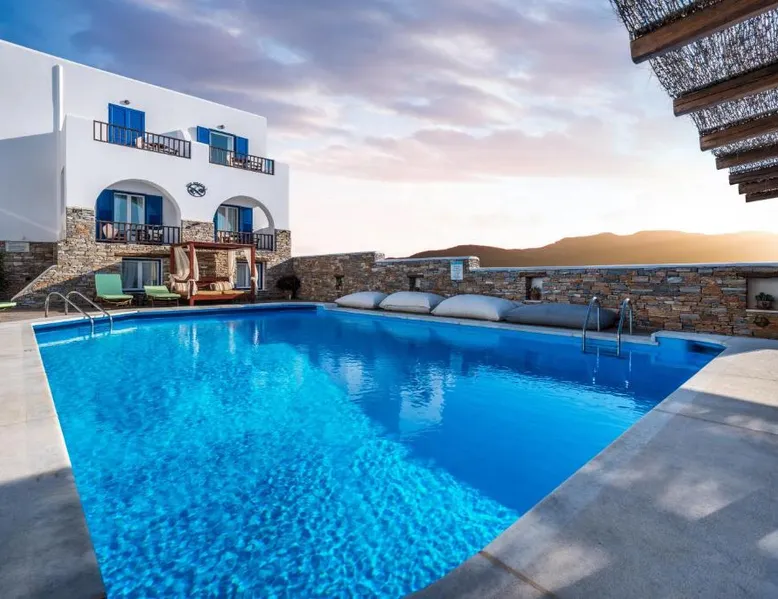 The whitewashed Ios Resort enjoys a central location in Ios Town, just a few minutes’ walk from the clubs and restaurants. It has a swimming pool with poolside bar and offers tastefully furnished rooms with free Wi-Fi. Rooms and suites at Ios Resort are decorated in earthy tones featuring wooden furnishings. They are air conditioned and have a balcony or patio with pool or town views. Facilities include an LCD TV, mini fridge and hairdryer. The hotel’s bar serves refreshing drinks, cocktails and light meals next to the pool, while continental breakfast is prepared daily. BBQ nights are organized on a weekly basis. Ios Resort is 1.9 mi away from the port and the popular Mylopotas Beach. At 656 feet guests can find a bus station and at 328 feet there is a supermarket. Decorated in earthy tones and featuring wooden furnishings this room is air conditioned and has a balcony with town or pool views.