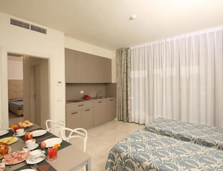 Hotel Residence Holiday offers rooms and apartments with a balcony or terrace in Sirmione, just 492 feet from the shores of Lake Garda. It also features free parking and an Olympic-size pool. Predominantly decorated with light-wood furniture, accommodations comes with satellite TV and air conditioning and some overlooks the lake. Studios and apartments also come with a fully equipped kitchenette. At breakfast, you will be spoiled with choice. The large buffet includes pies and freshly baked croissants, plus savory options such as cold cuts and cheese. Residence Hotel Holiday’s large garden also features a smaller swimming pool for children, along with a tennis court and a table tennis. The on-site bar serves classic cocktails and liqueurs. Sirmione’s city center is less than a 10-minute drive away, as are the 2 neighboring lakeside towns of Desenzano del Garda and Peschiera Del Garda. The air-conditioned apartment features 2 bedrooms and 1 bathroom with a shower and a hairdryer. The apartment's kitchenette, which has a refrigerator and kitchenware, is available for cooking and storing food. Featuring a balcony with garden views, this apartment also provides a safe deposit box and a flat-screen TV with satellite channels. The unit offers 3 beds.