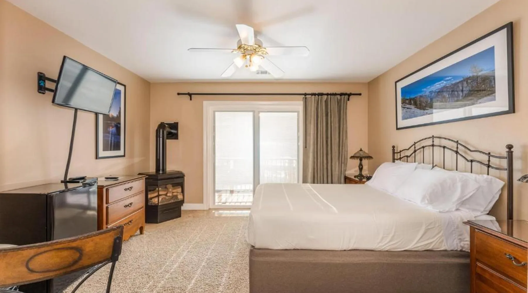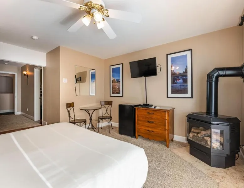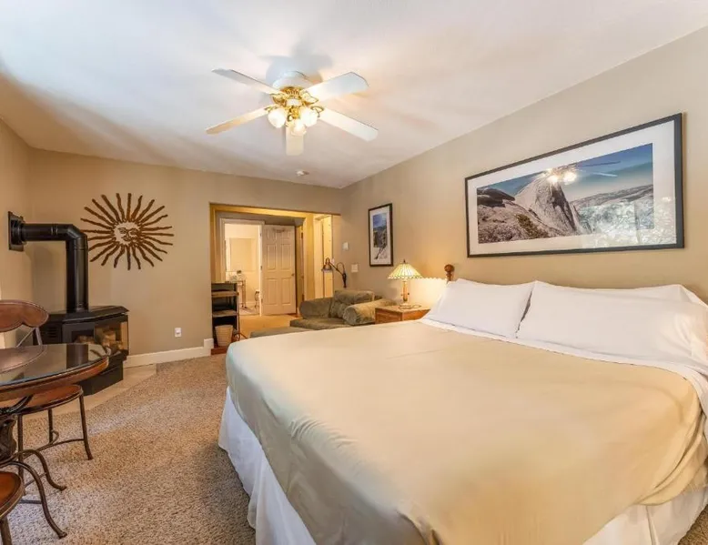 Comfortable Accommodations: Big Creek Inn in Fish Camp offers adults-only rooms with private balconies, bathrobes, and mountain or river views. Each room includes a private bathroom, bath, tea and coffee maker, and free toiletries. Modern Amenities: Guests enjoy free WiFi, streaming services, and soundproofing. Additional features include a terrace, patio, fireplace, and garden views. Delicious Breakfast: A continental breakfast is served in-room, featuring fresh pastries, cheese, fruits, and juice. Convenient Location: Located 59 mi from Fresno Yosemite International Airport and 2.1 mi from Yosemite South Entrance. Highly rated for its friendly host, balcony, and suitability for nature trips. The fireplace is the standout feature of this double room. The spacious double room features soundproof walls, a tea and coffee maker, a terrace with garden views as well as a private bathroom boasting a bath. The unit has 1 bed.
