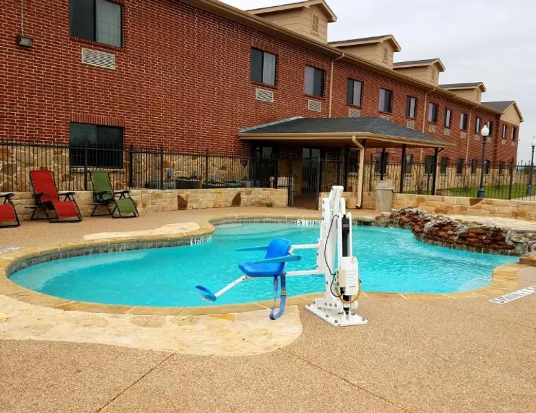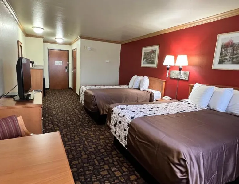 Comfortable Accommodations: Velkommen Inn in Clifton offers clean rooms with air-conditioning, baths, hairdryers, work desks, carpeted floors, and TVs. Guests enjoy free WiFi, ensuring a pleasant stay. Leisure Facilities: The hotel features a fitness center, seasonal outdoor swimming pool, and free on-site private parking. Additional amenities include a elevator, 24-hour front desk, business area, and express check-in and check-out services. Convenient Location: Located 31 mi from Waco Regional Airport, Velkommen Inn is near attractions such as Lake Whitney State Park (26 mi), Cliftex (1.4 mi), Bosque Museum (1.9 mi), Texas Safari Ranch (2.9 mi), and Mccown Valley Park (27 mi). Highly rated for room cleanliness. This quadruple room has air conditioning, a carpeted floor and a flat-screen TV with satellite channels. The unit has 2 beds.