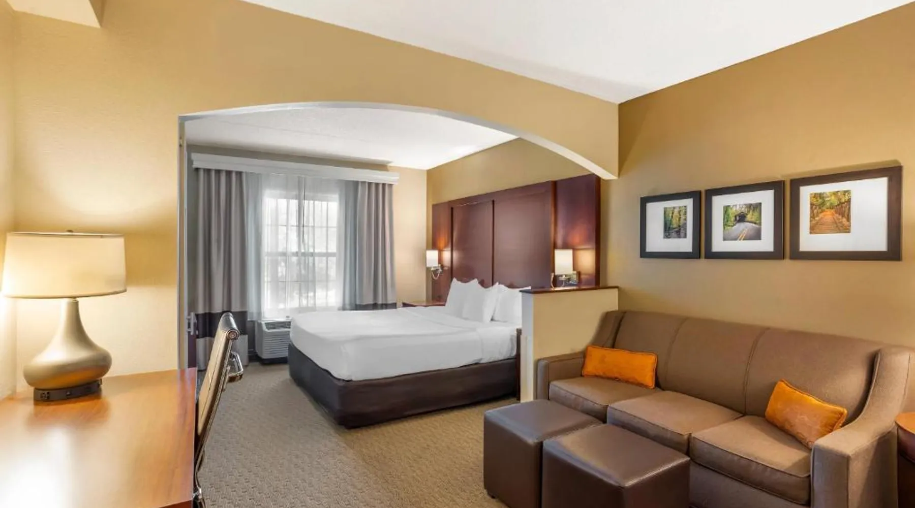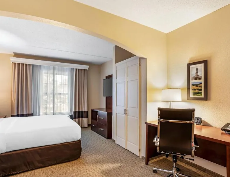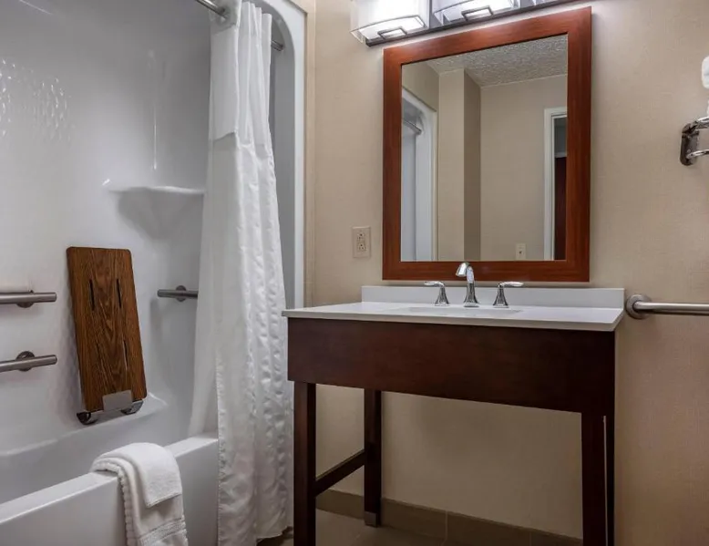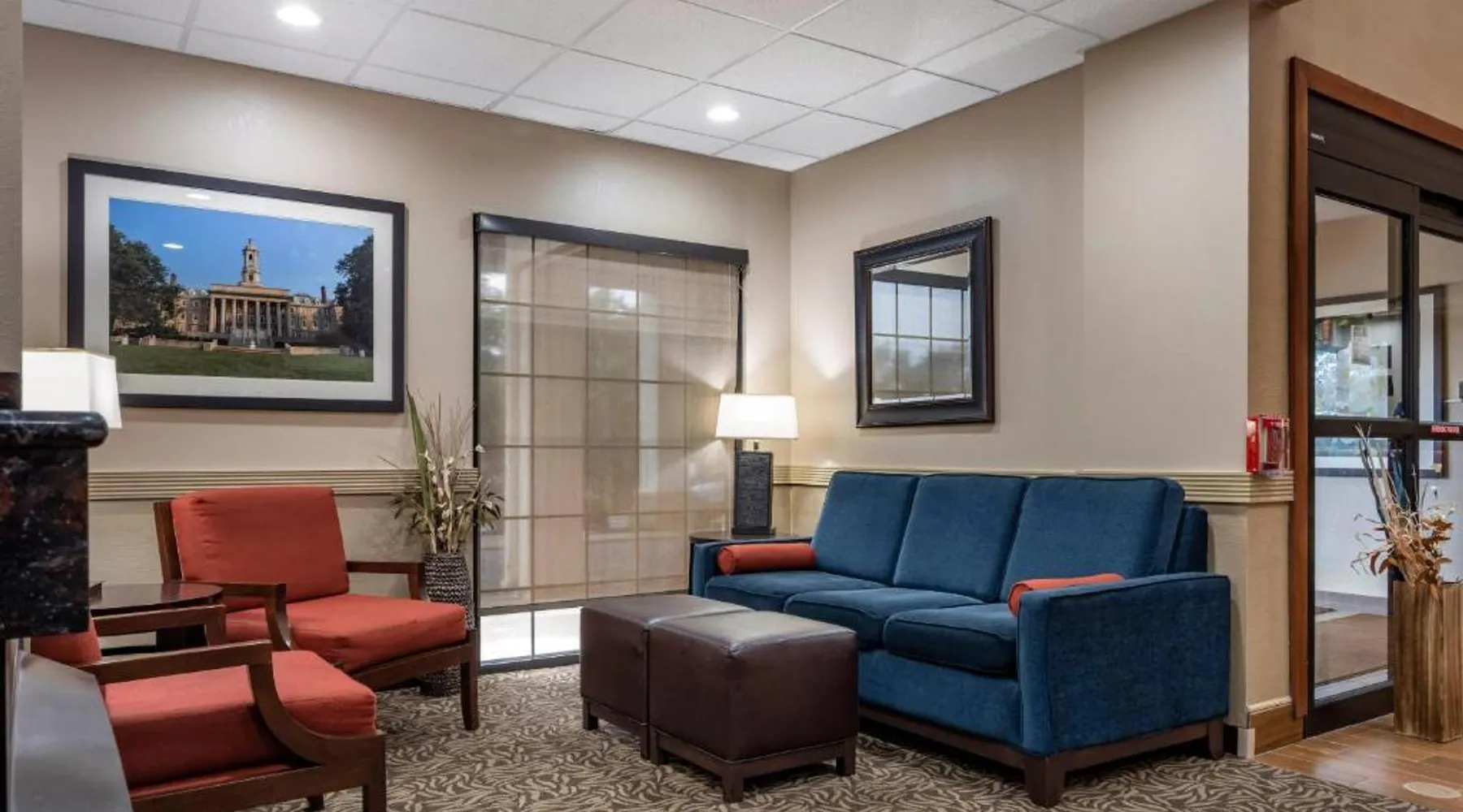 Comfortable Accommodations: Comfort Suites near Penn State in State College offers comfortable rooms with air-conditioning, private bathrooms, and modern amenities. Each room includes a work desk, sofa bed, and free WiFi, ensuring a pleasant stay. Exceptional Facilities: Guests can enjoy a fitness center, indoor swimming pool, and free on-site private parking. Additional facilities include a elevator, 24-hour front desk, housekeeping service, business area, outdoor seating, picnic area, and bicycle parking. Convenient Location: Located 5 mi from University Park Airport, the hotel is a short distance from Penn State University (6.2 mi) and Beaver Stadium (2.4 mi). Nearby attractions include the Palmer Museum of Art, a 16-minute walk away. Guest Satisfaction: Highly rated for its attentive staff, room cleanliness, and convenient location, Comfort Suites near Penn State provides excellent service and comfort for all visitors. Featuring free toiletries, this double room includes a private bathroom with a shower and a hairdryer. The spacious air-conditioned double room features a flat-screen TV with streaming services, a tea and coffee maker, a wardrobe, a safe deposit box as well as a quiet street view. The unit has 1 bed.