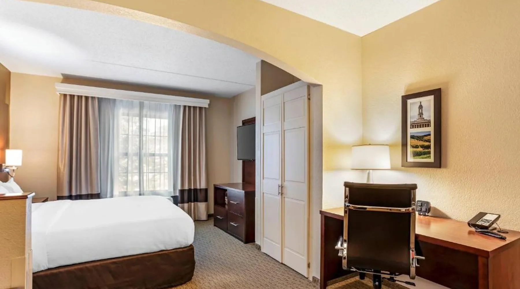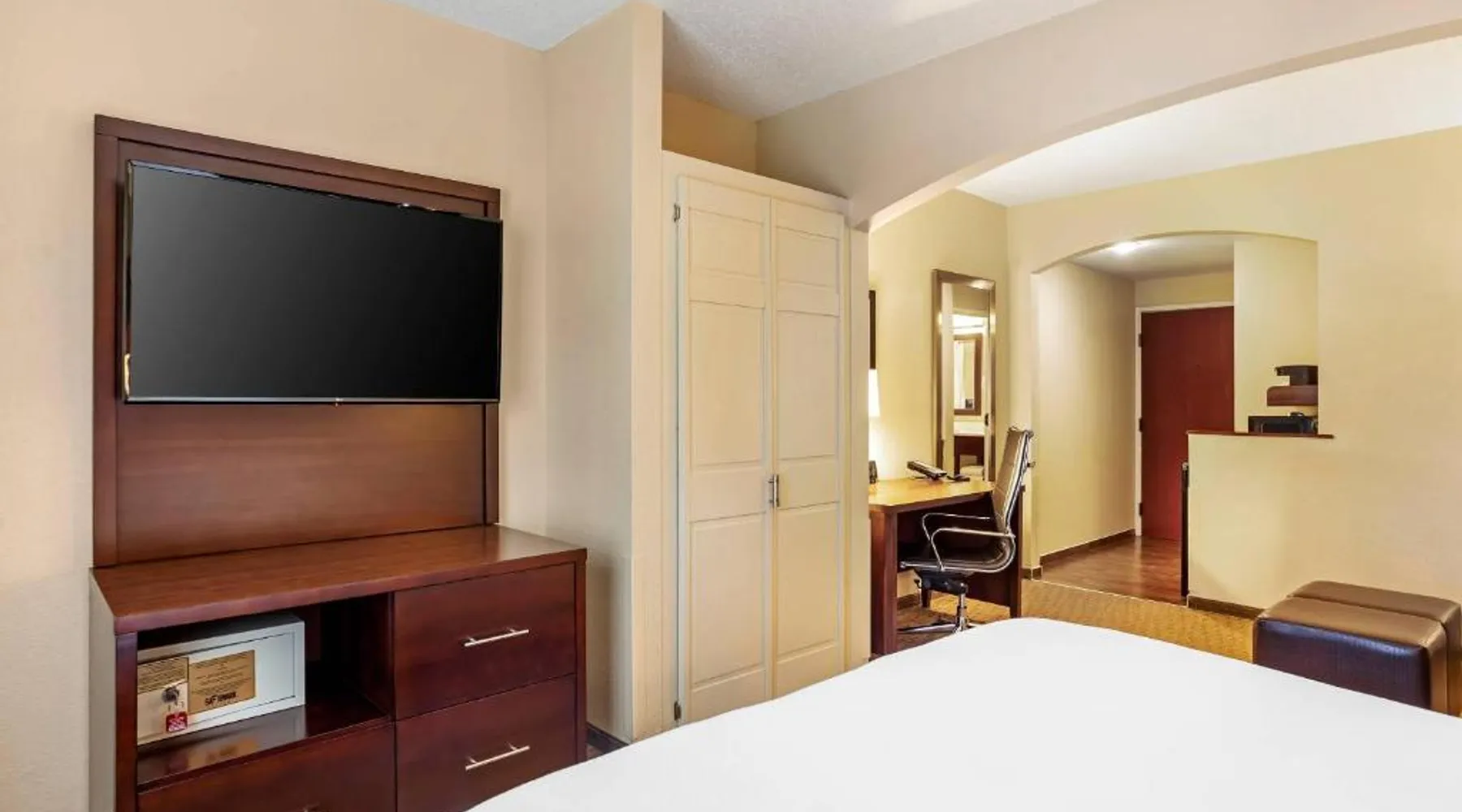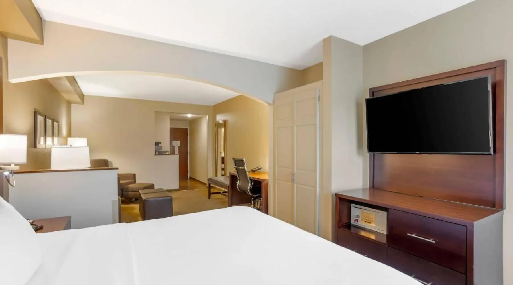 Comfortable Accommodations: Comfort Suites near Penn State in State College offers comfortable rooms with air-conditioning, private bathrooms, and modern amenities. Each room includes a work desk, sofa bed, and free WiFi, ensuring a pleasant stay. Exceptional Facilities: Guests can enjoy a fitness center, indoor swimming pool, and free on-site private parking. Additional facilities include a elevator, 24-hour front desk, housekeeping service, business area, outdoor seating, picnic area, and bicycle parking. Convenient Location: Located 5 mi from University Park Airport, the hotel is a short distance from Penn State University (6.2 mi) and Beaver Stadium (2.4 mi). Nearby attractions include the Palmer Museum of Art, a 16-minute walk away. Guest Satisfaction: Highly rated for its attentive staff, room cleanliness, and convenient location, Comfort Suites near Penn State provides excellent service and comfort for all visitors. Featuring free toiletries, this double room includes a private bathroom with a shower and a hairdryer. The spacious air-conditioned double room features a flat-screen TV with streaming services, a tea and coffee maker, a wardrobe, a safe deposit box as well as a quiet street view. The unit has 1 bed.