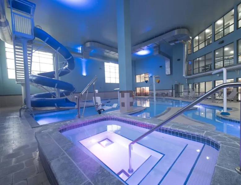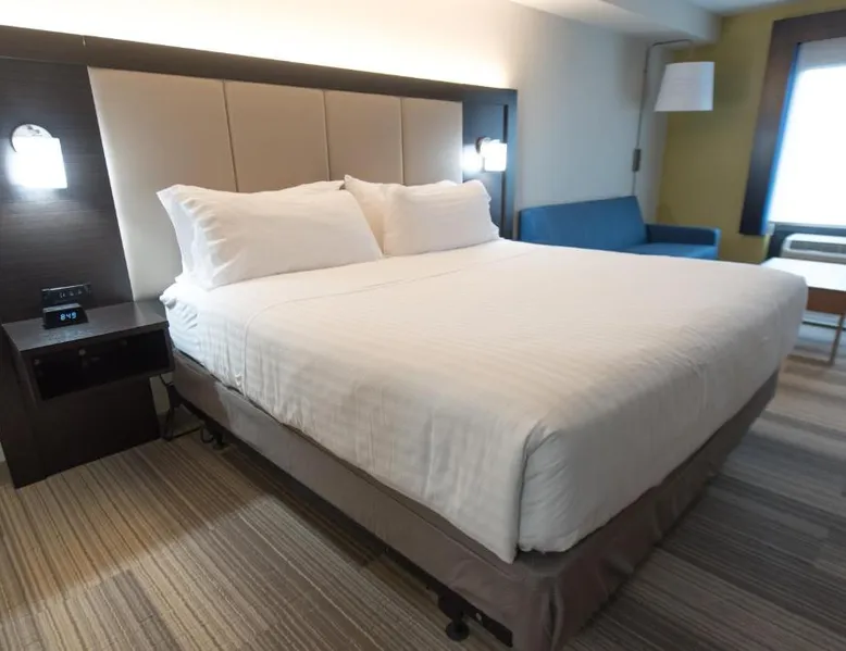Located off Interstate 90, this hotel in North East, Pennsylvania is within a 15 mi drive from Mercyhurst College. It features an indoor water park, pool and guest rooms provide free WiFi. Holiday Inn Express Hotel & Suites Erie an IHG Hotel North East (Erie I-90 Exit 41) equips each room with a flat-screen cable TV and iPod docking station. The spacious rooms are decorated in neutral tones and dark wood furniture. Each includes a microwave and refrigerator. A 24-hour business center and well equipped gym is available for guests' use at the hotel. North East Holiday Inn Express Hotel & Suites Erie an IHG Hotel also serves a hot breakfast to guests every morning. Presque Isle State Park is 32 mi away. Lake Erie Speedway is 3.5 mi away from the hotel. This room features two queen beds, sofa bed, refrigerator, microwave, Keurig coffee maker, WiFi, wired internet, two chairs and a round table.