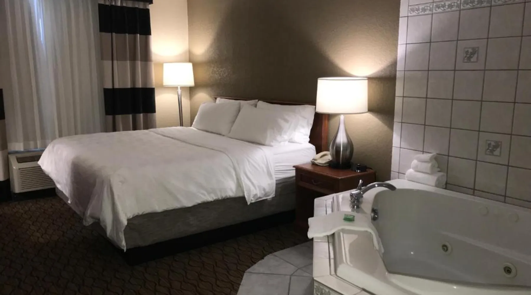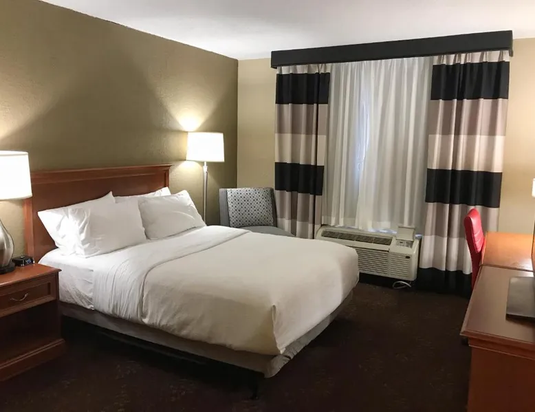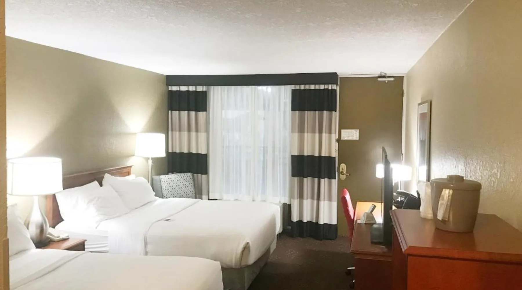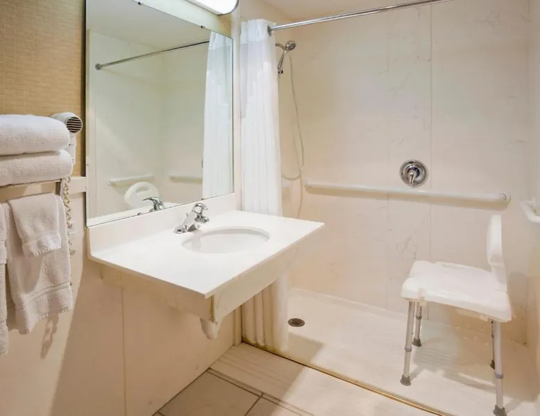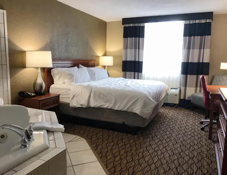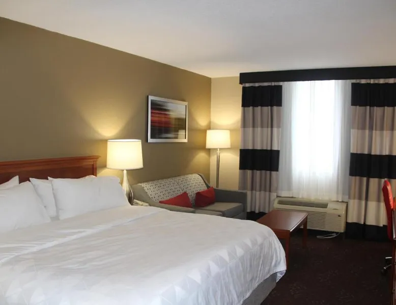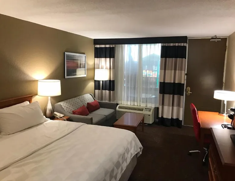 Comfortable Accommodations: Holiday Inn Alexandria by IHG in Alexandria offers air-conditioned rooms with private bathrooms, free WiFi, and modern amenities. Each room includes a work desk, TV, and wardrobe, ensuring a pleasant stay. Dining and Leisure: Guests can enjoy a family-friendly restaurant serving American cuisine with vegetarian, vegan, gluten-free, and dairy-free options. The on-site bar provides a relaxing atmosphere for unwinding. Additional facilities include a fitness center, indoor swimming pool, and hot tub. Convenient Location: Located 70 mi from St. Cloud Regional Airport and 15 mi from Andes Tower Hills, the hotel offers easy access to local attractions. Free on-site parking is available for guests’ convenience. This pool view room features a flat-screen TV and a sofa bed.