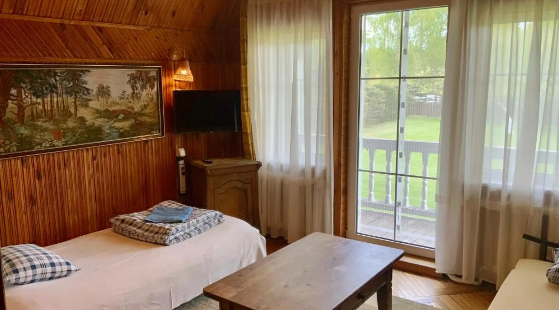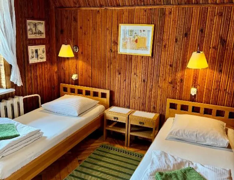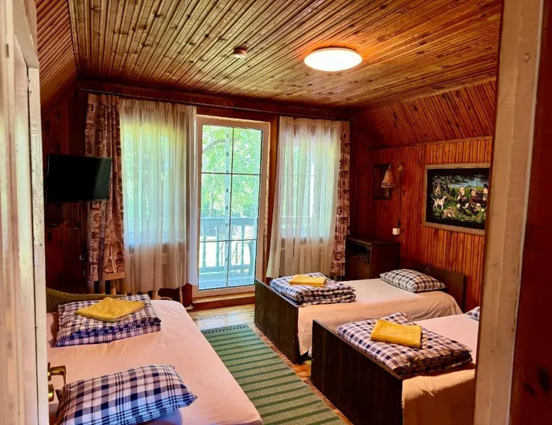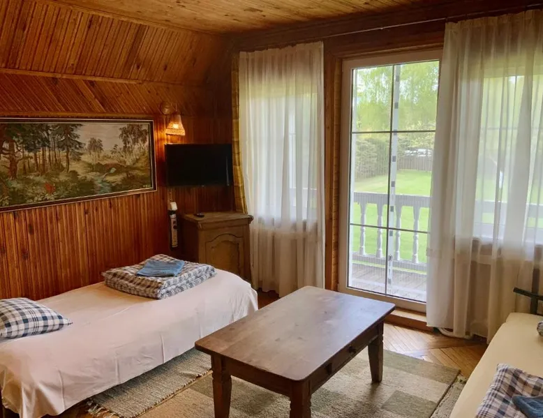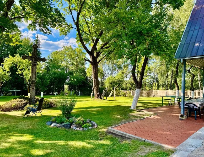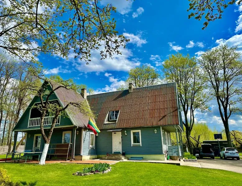 Elegant Country House in Utena: Maple House - Sodyba Tarp Klevų offers a serene country house experience in Utena, Lithuania. Guests enjoy a beautiful garden and terrace, complemented by free WiFi throughout the property. Comfortable Accommodations: The country house features family rooms, a lounge, and a shared kitchen. Additional amenities include air-conditioning, a balcony, and a washing machine. Free on-site private parking is available for guests. Delicious Breakfast and Dining: A continental breakfast is served daily, including warm dishes, fresh pastries, pancakes, cheese, and fruits. Outdoor dining areas provide ample space for relaxation and socializing. Convenient Location: Located 65 mi from Vilnius International Airport, the property is near attractions such as the Lithuanian Ethnocosmology Museum (19 mi) and Horse Museum (27 mi). An ice-skating rink is also in the vicinity. Highly rated for its friendly host, excellent location, and attentive staff. The spacious double room features a private entrance, soundproof walls, as well as a private bathroom boasting a bath and a shower. The double room's kitchen, which has kitchenware and an electric kettle, is available for cooking and storing food. The double room offers a flat-screen TV, a seating area, a dining area, a wardrobe as well as an inner courtyard view. The unit has 3 beds.