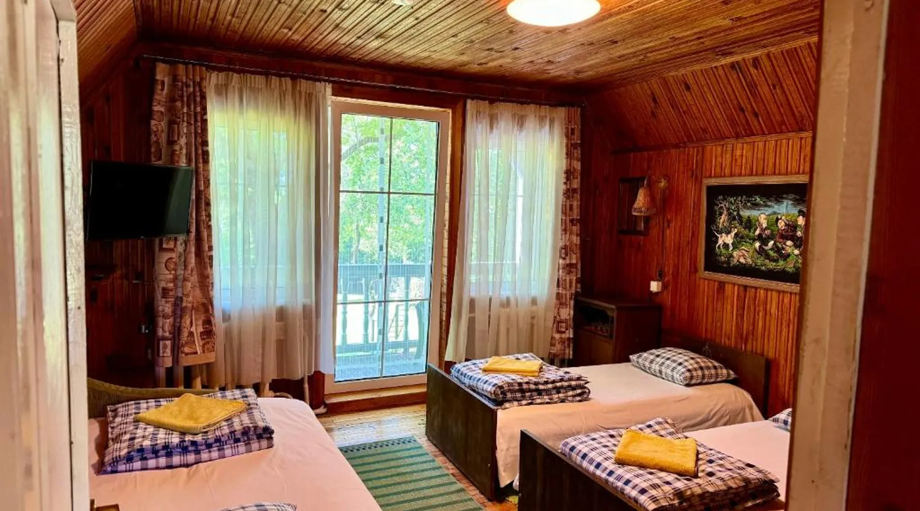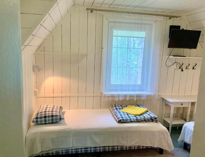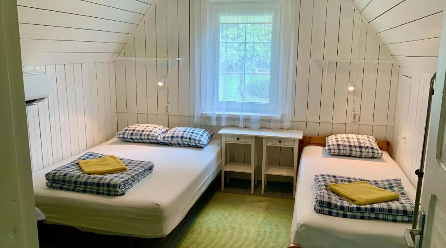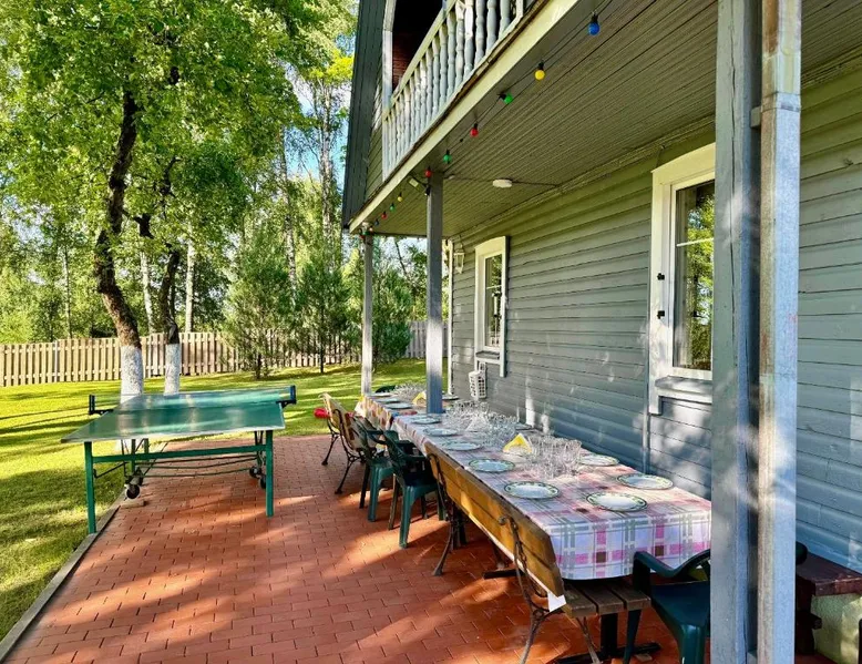 Elegant Country House in Utena: Maple House - Sodyba Tarp Klevų offers a serene country house experience in Utena, Lithuania. Guests enjoy a beautiful garden and terrace, complemented by free WiFi throughout the property. Comfortable Accommodations: The country house features family rooms, a lounge, and a shared kitchen. Additional amenities include air-conditioning, a balcony, and a washing machine. Free on-site private parking is available for guests. Delicious Breakfast and Dining: A continental breakfast is served daily, including warm dishes, fresh pastries, pancakes, cheese, and fruits. Outdoor dining areas provide ample space for relaxation and socializing. Convenient Location: Located 65 mi from Vilnius International Airport, the property is near attractions such as the Lithuanian Ethnocosmology Museum (19 mi) and Horse Museum (27 mi). An ice-skating rink is also in the vicinity. Highly rated for its friendly host, excellent location, and attentive staff. The spacious double room features a private entrance, soundproof walls, as well as a private bathroom boasting a bath and a shower. The double room's kitchen, which has kitchenware and an electric kettle, is available for cooking and storing food. The double room offers a flat-screen TV, a seating area, a dining area, a wardrobe as well as an inner courtyard view. The unit has 3 beds.