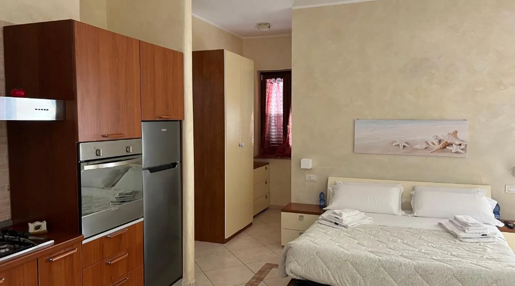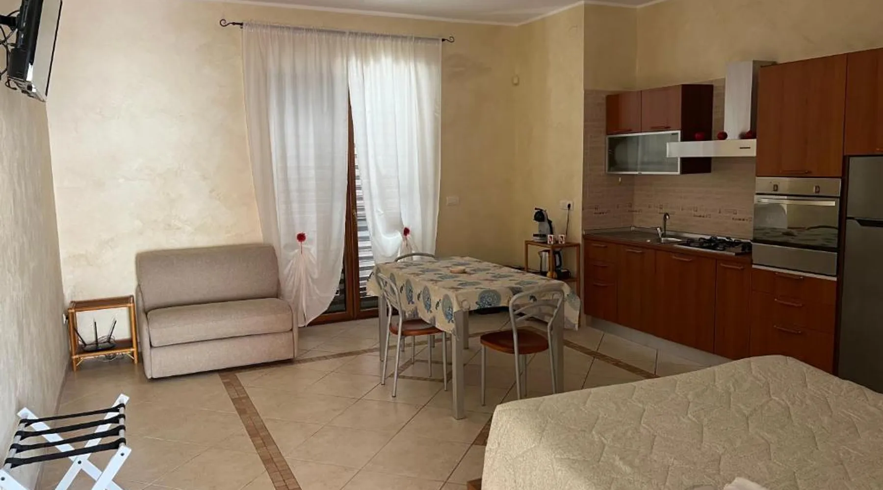Elegant Accommodations: La Marinella in Palmi offers a comfortable apartment with a swimming pool, sun terrace, and lush garden. Guests enjoy free WiFi, ensuring connectivity during their stay. Modern Amenities: The apartment features a fully equipped kitchen, private bathroom, and a balcony with sea views. Additional amenities include air-conditioning, washing machine, and free on-site private parking. Prime Location: Located 1.2 mi from Spiaggia della Marinella, the property is 30 mi from Reggio di Calabria Tito Minniti Airport. Nearby attractions include the Archaeological Museum with Riace Bronzes and Aragonese Castle. Guest Satisfaction: Highly rated for its scenic location and convenient position, La Marinella provides a welcoming environment for all visitors. Featuring a private entrance, this air-conditioned apartment is consisted of of 1 living room, 1 separate bedroom and 1 bathroom with a walk-in shower and a bidet. The well-equipped kitchen has a stovetop, a refrigerator, kitchenware and an oven. This wheelchair accessible apartment features a washing machine, a seating area with a flat-screen TV and a roll-in shower. The unit offers 2 beds.