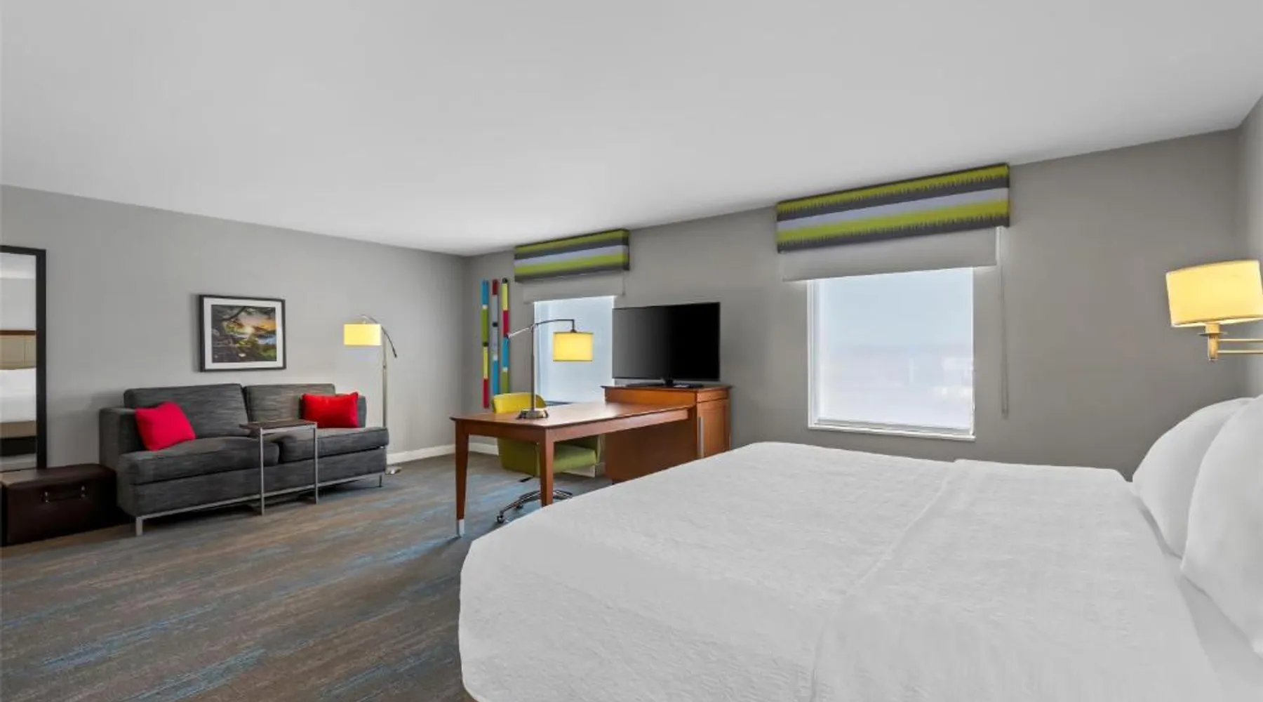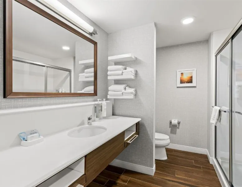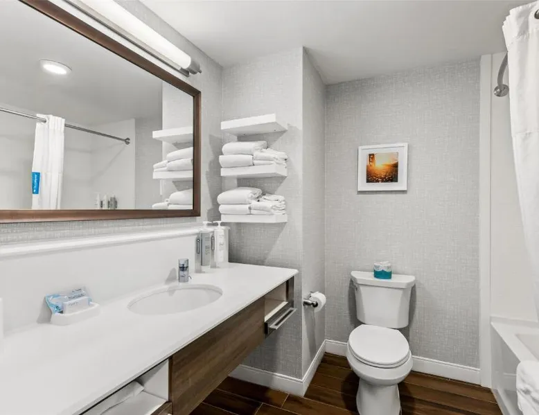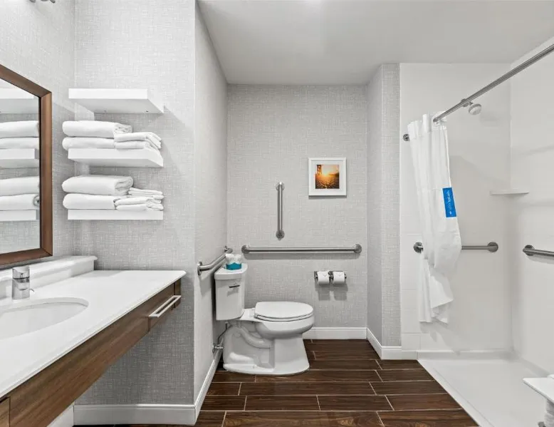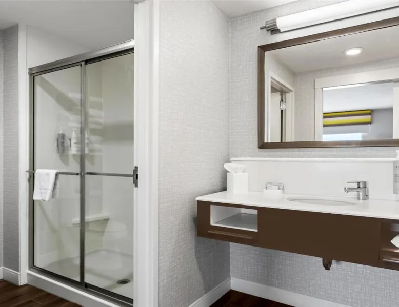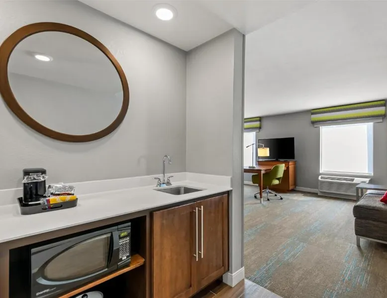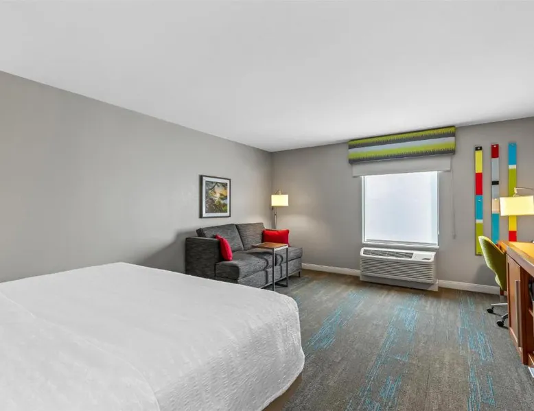 Comfortable Accommodations: Hampton Inn Fond du Lac in Fond du Lac offers family rooms with balconies, tea and coffee makers, hairdryers, refrigerators, microwaves, showers, and TVs. Each room includes a sofa bed and seating area. Exceptional Facilities: Guests enjoy an indoor swimming pool, free WiFi, fitness room, elevator, and 24-hour front desk. Free on-site private parking is available. Convenient Location: Located 35 mi from Outagamie County Regional Airport, the hotel is near EAA AirVenture Museum (17 mi), University of Wisconsin-Oshkosh (21 mi), Oshkosh Public Museum (21 mi), and New Holstein Historical Society: Timm House (29 mi). Guest Satisfaction: Highly rated for its breakfast and room cleanliness, the hotel ensures a pleasant stay for all visitors. This room features a flat-screen TV, coffee maker and free in-room movie channels. The room includes disability accessible amenities.