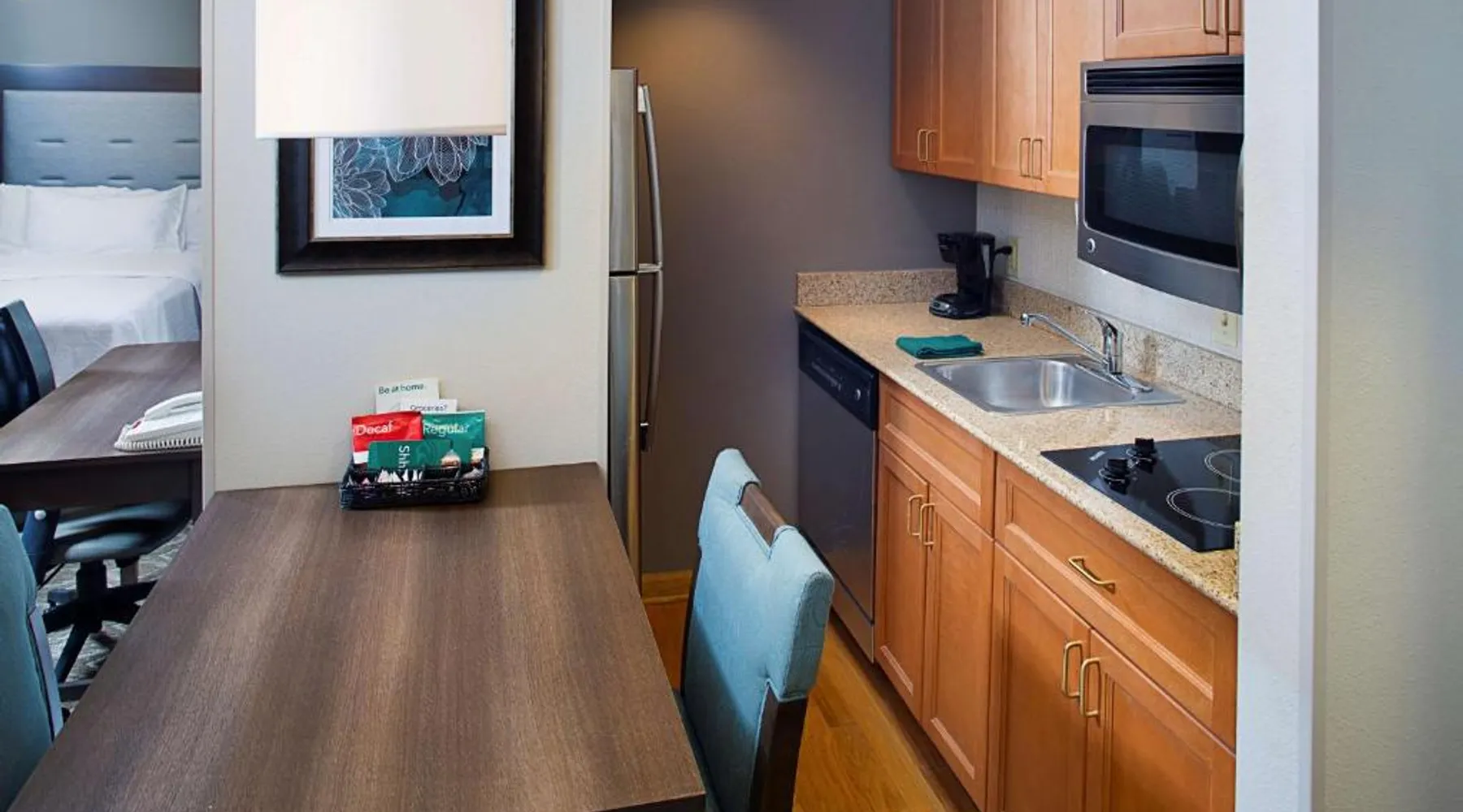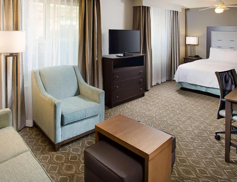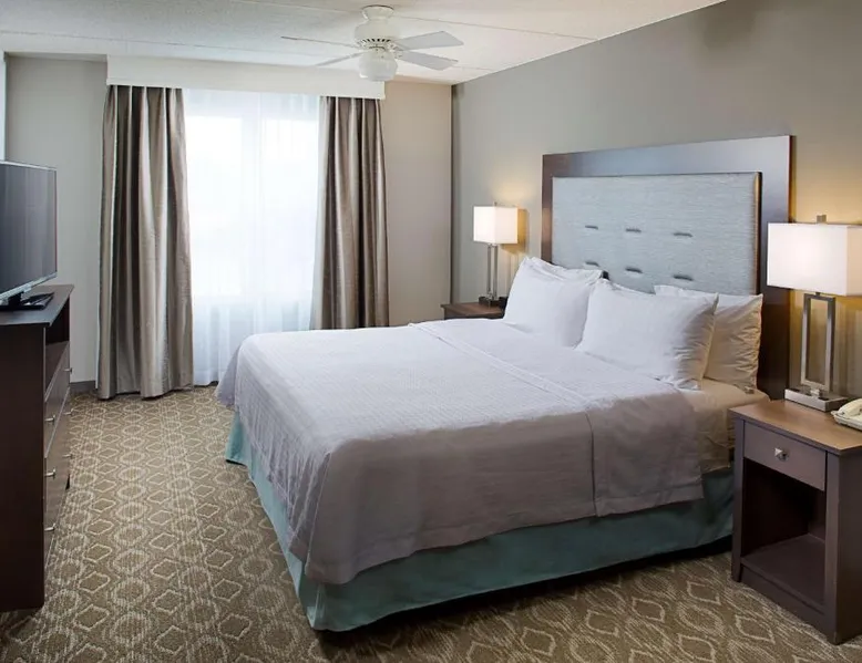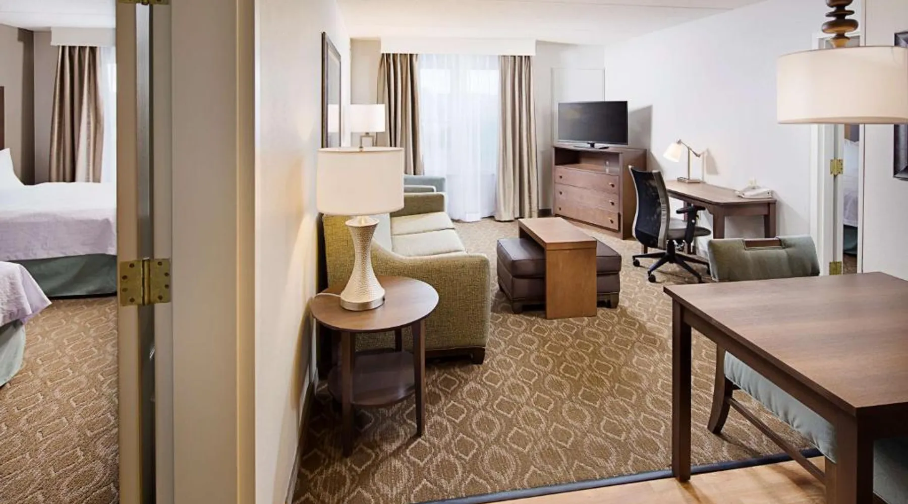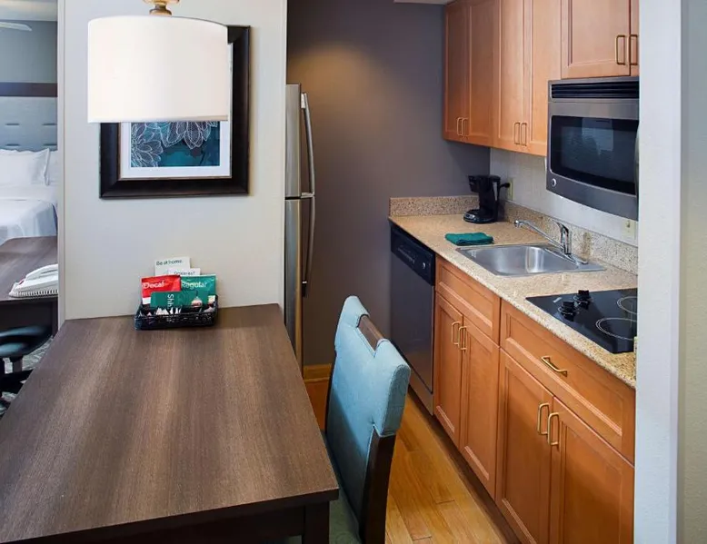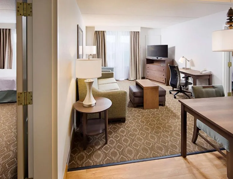 Comfortable Accommodations: Homewood Suites by Hilton Cleveland-Solon in Solon offers family rooms with air-conditioning, kitchen facilities, and free WiFi. Each room includes a refrigerator, microwave, and work desk. Exceptional Facilities: Guests can enjoy a fitness center, indoor swimming pool, sun terrace, and outdoor fireplace. Additional amenities include a lounge, minimarket, and business area. Delicious Breakfast: A variety of breakfast options are available, including continental, American, buffet, and à la carte. Fresh pastries, fruits, warm dishes, and juice enhance the morning experience. Convenient Location: Located 22 mi from Cleveland Hopkins International Airport, the hotel is near attractions such as Cleveland Orchestra (14 mi) and Cleveland Museum of Art (15 mi). Free on-site private parking is provided. Guests can make meals in the kitchen that is equipped with a stovetop, a refrigerator, a dishwasher and kitchenware. The suite is furnished with a desk and a seating area and provides air conditioning and a tea and coffee maker. The unit offers 4 beds.