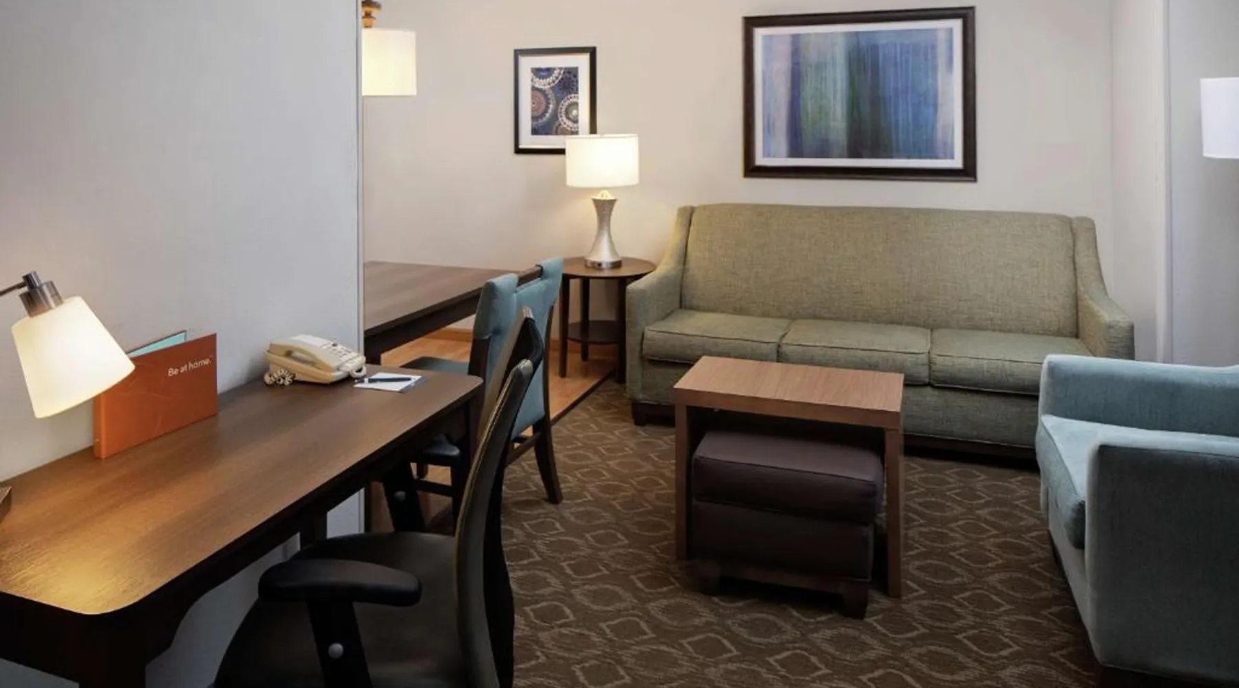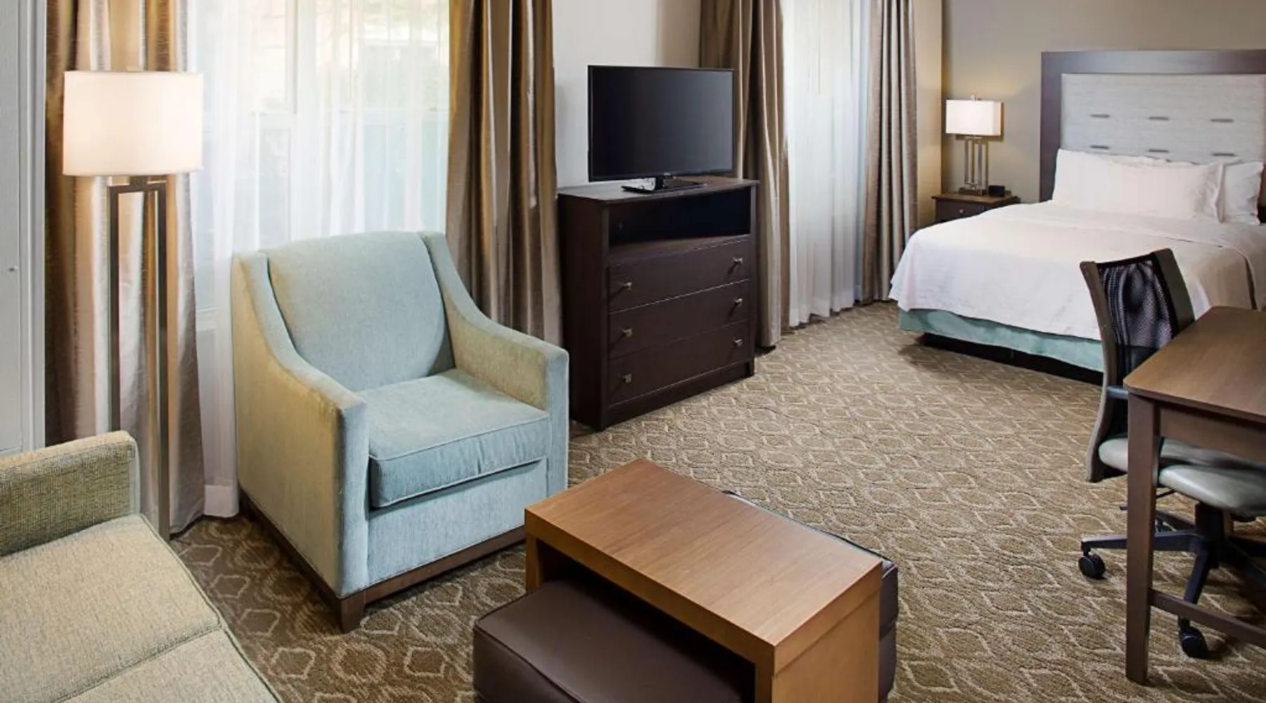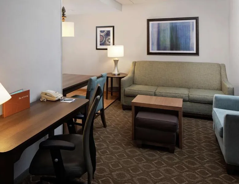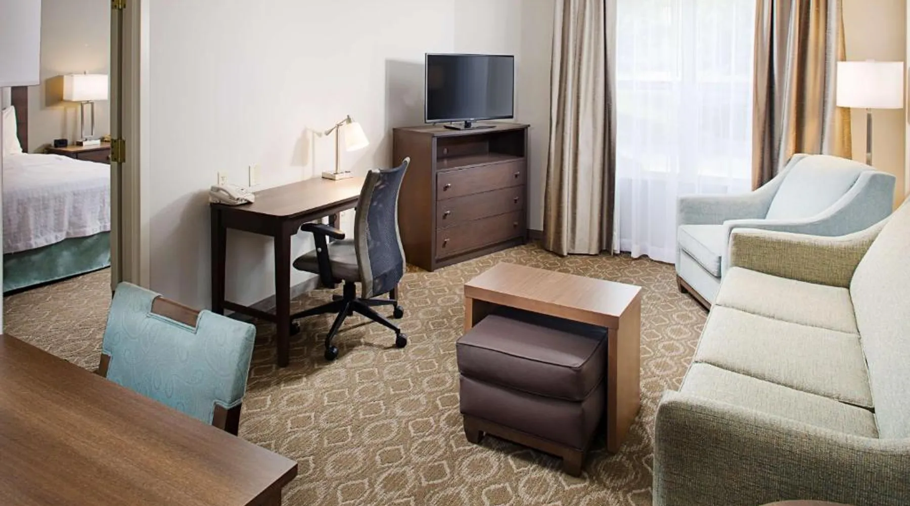 Comfortable Accommodations: Homewood Suites by Hilton Cleveland-Solon in Solon offers family rooms with air-conditioning, kitchen facilities, and free WiFi. Each room includes a refrigerator, microwave, and work desk. Exceptional Facilities: Guests can enjoy a fitness center, indoor swimming pool, sun terrace, and outdoor fireplace. Additional amenities include a lounge, minimarket, and business area. Delicious Breakfast: A variety of breakfast options are available, including continental, American, buffet, and à la carte. Fresh pastries, fruits, warm dishes, and juice enhance the morning experience. Convenient Location: Located 22 mi from Cleveland Hopkins International Airport, the hotel is near attractions such as Cleveland Orchestra (14 mi) and Cleveland Museum of Art (15 mi). Free on-site private parking is provided. Guests can make meals in the kitchen that is equipped with a stovetop, a refrigerator, a dishwasher and kitchenware. The suite is furnished with a desk and a seating area and provides air conditioning and a tea and coffee maker. The unit offers 4 beds.