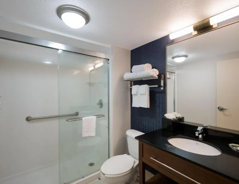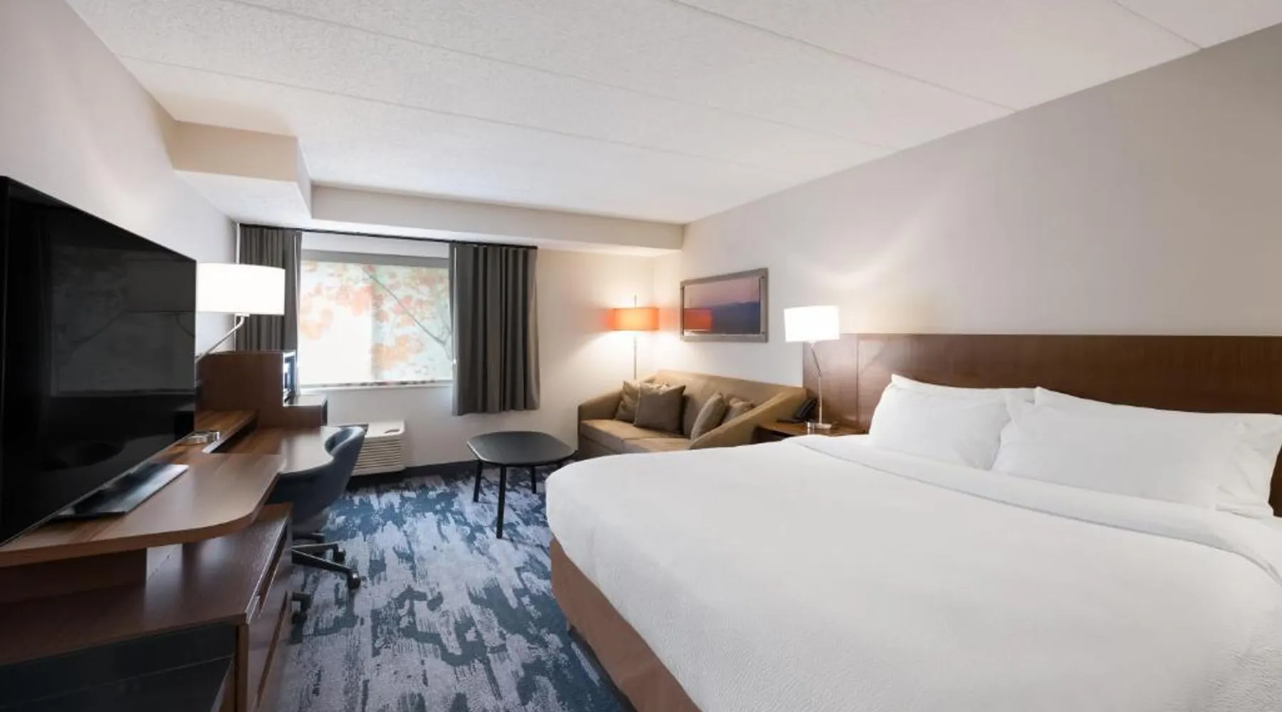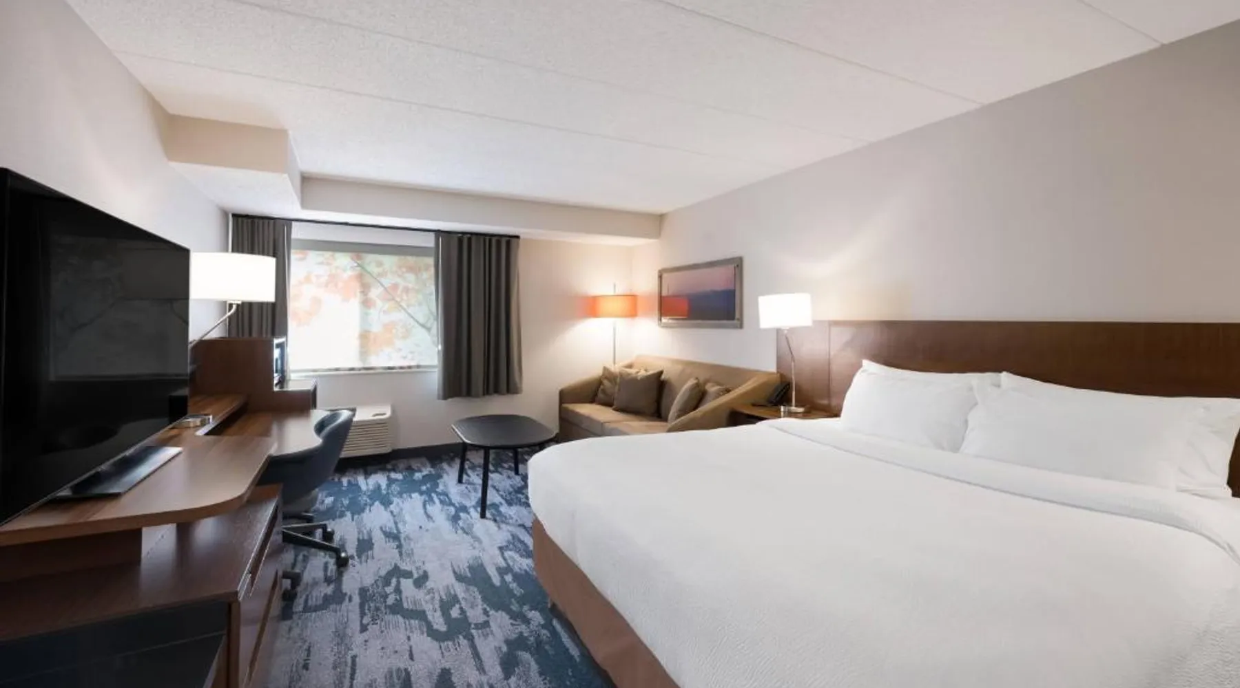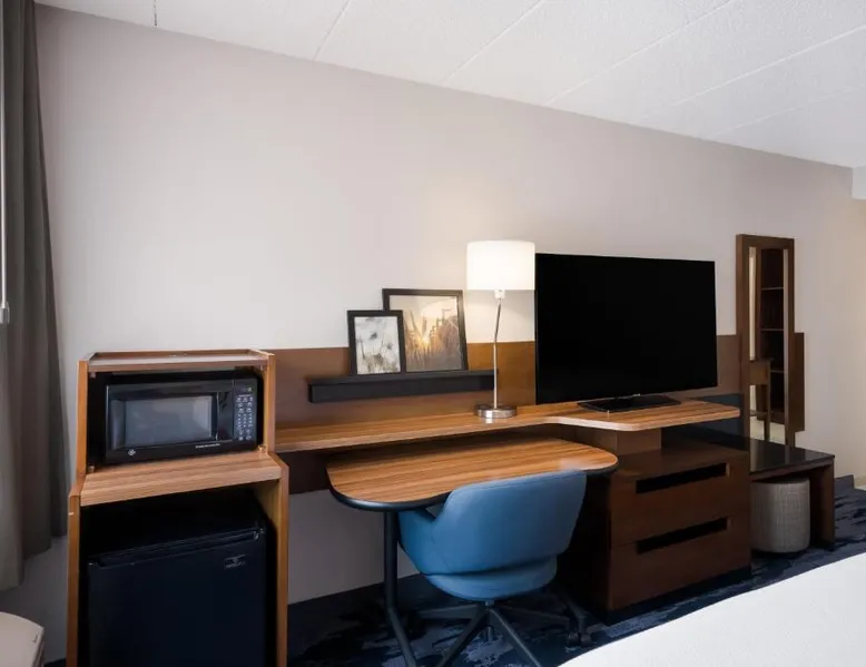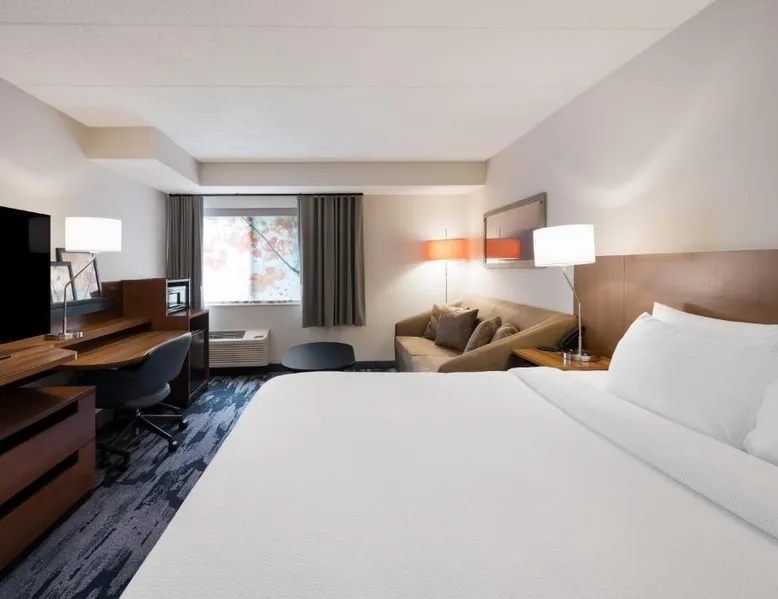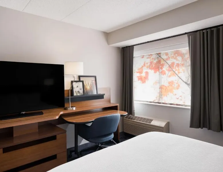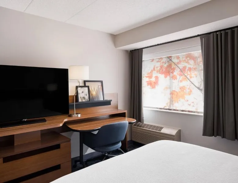 Comfortable Accommodations: Fairfield Inn by Marriott Amesbury in Amesbury offers air-conditioned rooms with private bathrooms, soundproofing, and modern amenities including free WiFi, work desks, and flat-screen TVs. Facilities and Services: Guests can enjoy a fitness center, free use of bicycles, a garden, and a picnic area. Additional facilities include a minimarket, business area, and express check-in and check-out services. Convenient Location: Located 17 mi from Portsmouth International Airport, the hotel is near attractions such as Casino Ballroom (9.9 mi) and Peabody Essex Museum (26 mi). Free on-site parking is available. Guest Satisfaction: Guests appreciate the attentive staff, excellent breakfast, and immaculate room cleanliness. This room includes a cable TV and a desk.