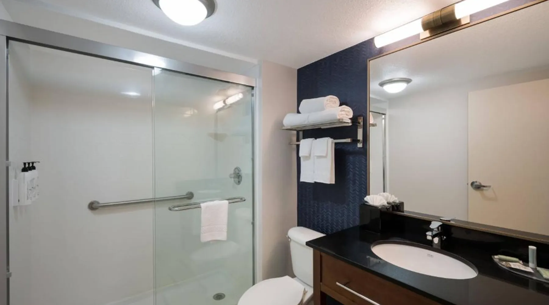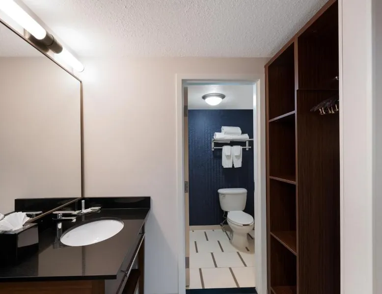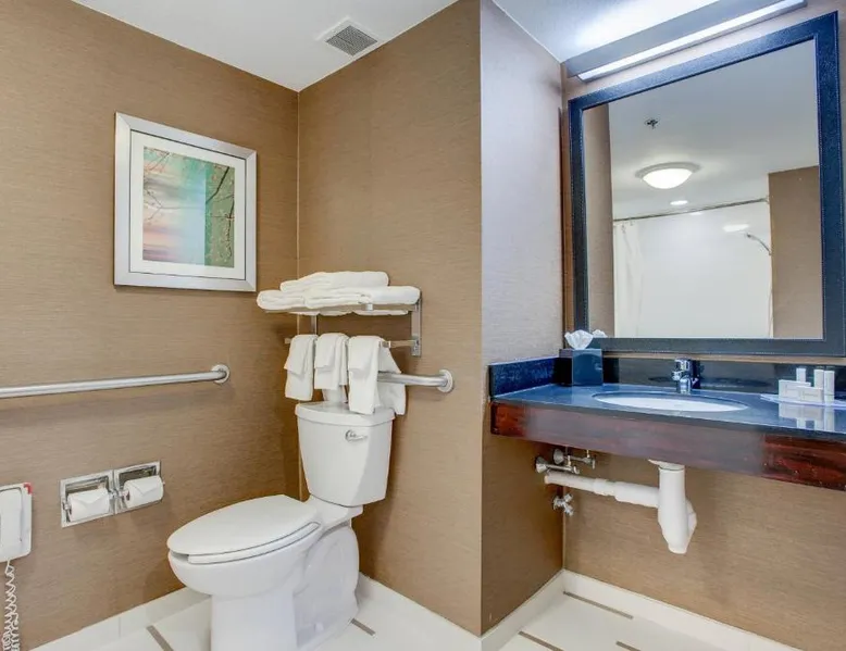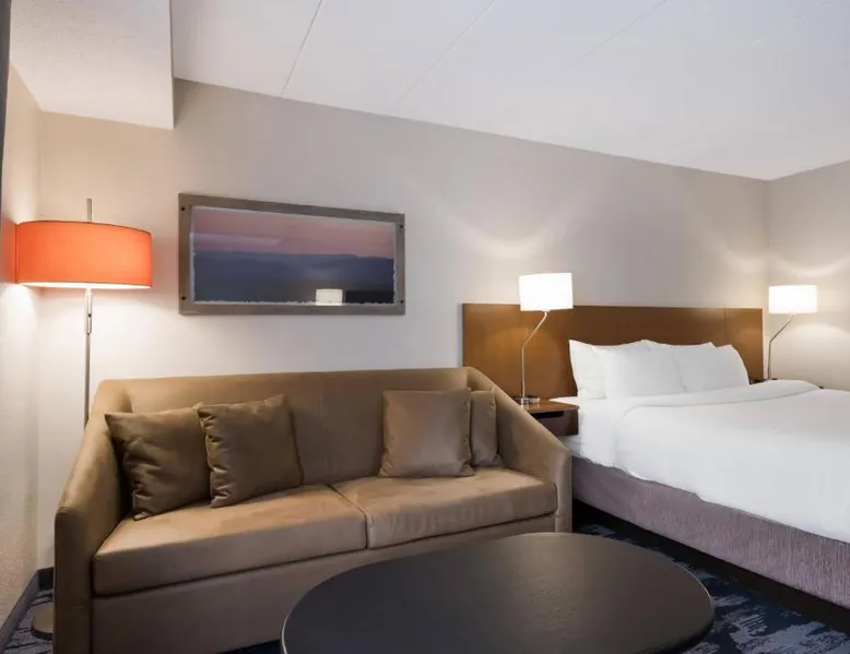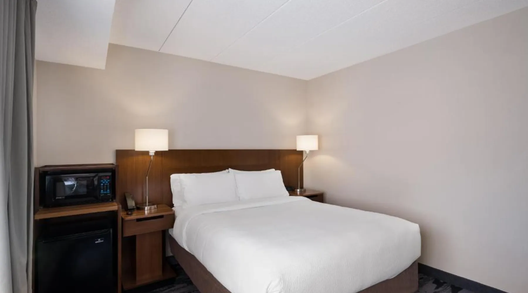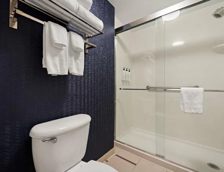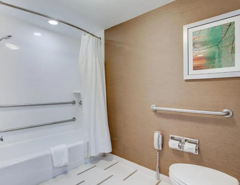 Comfortable Accommodations: Fairfield Inn by Marriott Amesbury in Amesbury offers air-conditioned rooms with private bathrooms, soundproofing, and modern amenities including free WiFi, work desks, and flat-screen TVs. Facilities and Services: Guests can enjoy a fitness center, free use of bicycles, a garden, and a picnic area. Additional facilities include a minimarket, business area, and express check-in and check-out services. Convenient Location: Located 17 mi from Portsmouth International Airport, the hotel is near attractions such as Casino Ballroom (9.9 mi) and Peabody Essex Museum (26 mi). Free on-site parking is available. Guest Satisfaction: Guests appreciate the attentive staff, excellent breakfast, and immaculate room cleanliness. This room includes a cable TV and a desk.