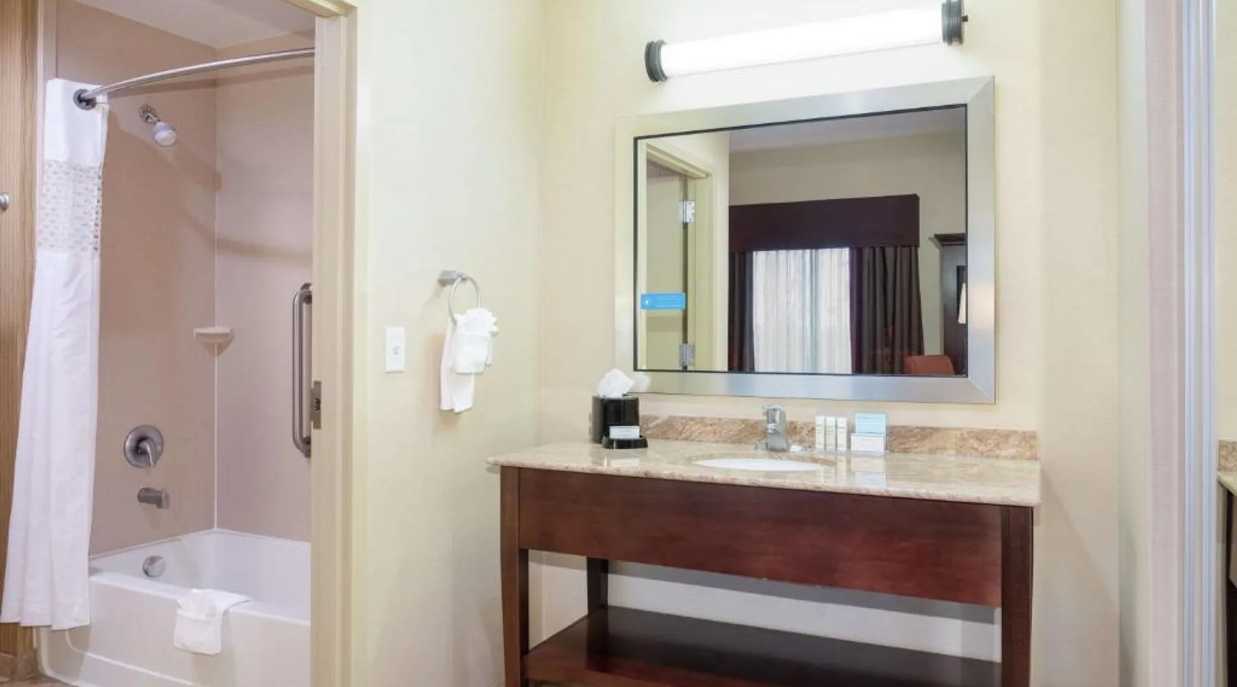 Comfortable Accommodations: Hampton Inn and Suites Denver/South-RidgeGate in Lone Tree offers family rooms with air-conditioning, free WiFi, and amenities such as a fitness center, elevator, 24-hour front desk, minimarket, business area, and free on-site parking. Convenient Location: Located 23 mi from Denver International Airport, the hotel is near attractions like Fiddler's Green Amphitheater (6.2 mi), Park Meadows-North (3.7 mi), and Westlands Park (6.8 mi). Guests appreciate the convenient location, room cleanliness, and continental breakfast provided by the property. This triple room provides a tea and coffee maker and a flat-screen TV. The unit offers 1 bed.
