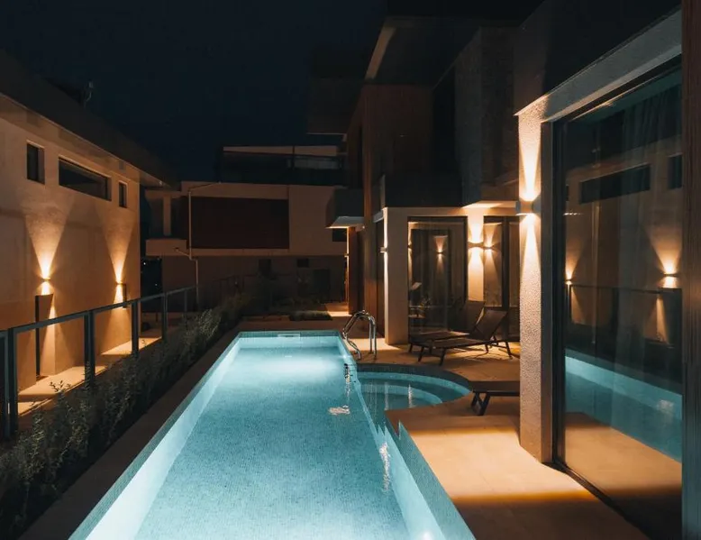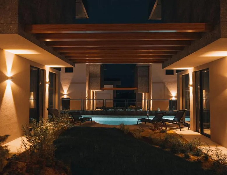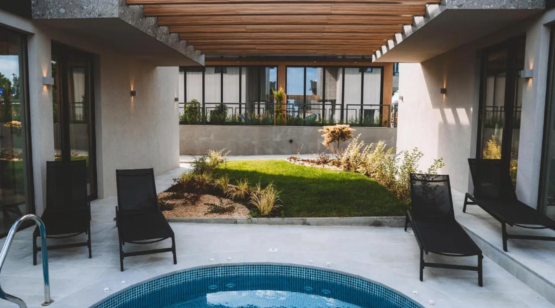 Elegant Accommodations: Cabo Villas in Arapia offers a villa with a swimming pool, garden, terrace, and free WiFi. Guests enjoy air-conditioning, a kitchenette, balcony, and private bathroom. Leisure Facilities: The property features a heated pool, kids' pool, and barbecue facilities. Additional amenities include a hot tub, fireplace, and outdoor dining area. Convenient Location: Located 46 mi from Burgas Airport, Cabo Villas is a 4-minute walk from Arapia Beach. Nearby attractions include Amphitheater Apoloniya (22 mi) and Municipality Tsarevo (2.5 mi). Guest Services: The villa provides free on-site private parking, laundry service, and a reception staffed with Bulgarian and English speakers. Boasting a private entrance, this air-conditioned villa features 1 living room, 2 separate bedrooms and 2 bathrooms with a shower. Guests will find a stovetop, a refrigerator, a dishwasher and kitchenware in the well-fitted kitchenette. The villa also comes with a barbecue. Featuring a balcony with garden views, this villa also features a washing machine and a flat-screen TV with cable channels. The unit has 2 beds.