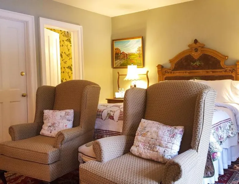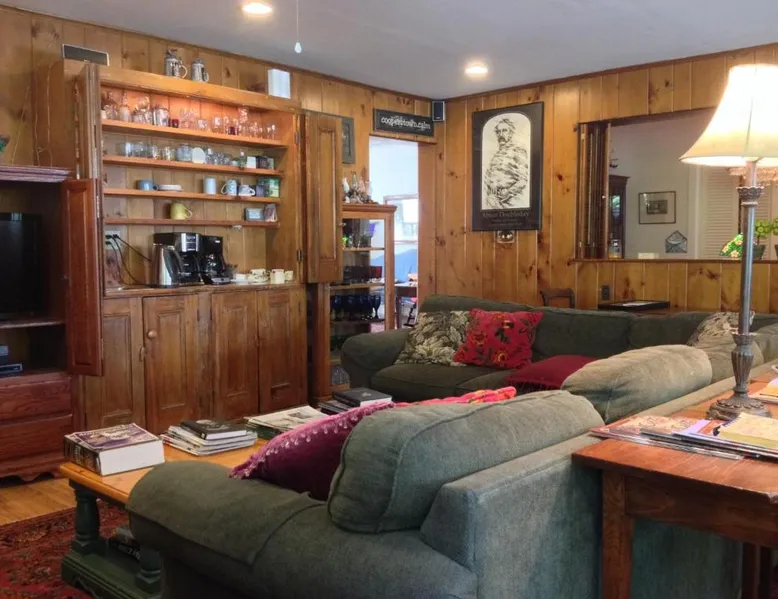 Historic Charm: The White House Inn in Cooperstown offers a unique stay within a historic building. Guests enjoy a swimming pool with a view, sun terrace, and lush garden. Free WiFi is available throughout the property. Comfortable Accommodations: Rooms feature air-conditioning, private bathrooms, and modern amenities such as TV and work desks. Additional facilities include a lounge, shared kitchen, and outdoor seating areas. Delicious Breakfast: A variety of breakfast options are available, including American, vegetarian, vegan, and gluten-free. Fresh pastries, pancakes, and fruits are served alongside warm dishes and juice. Prime Location: Located 72 mi from Albany International Airport, the inn is a short walk from Doubleday Field and 1969 feet from the Baseball Hall of Fame. Nearby attractions include Glimmerglass Opera and Suny Oneonta. This suite features a flat-screen TV, private bathroom and air conditioning.