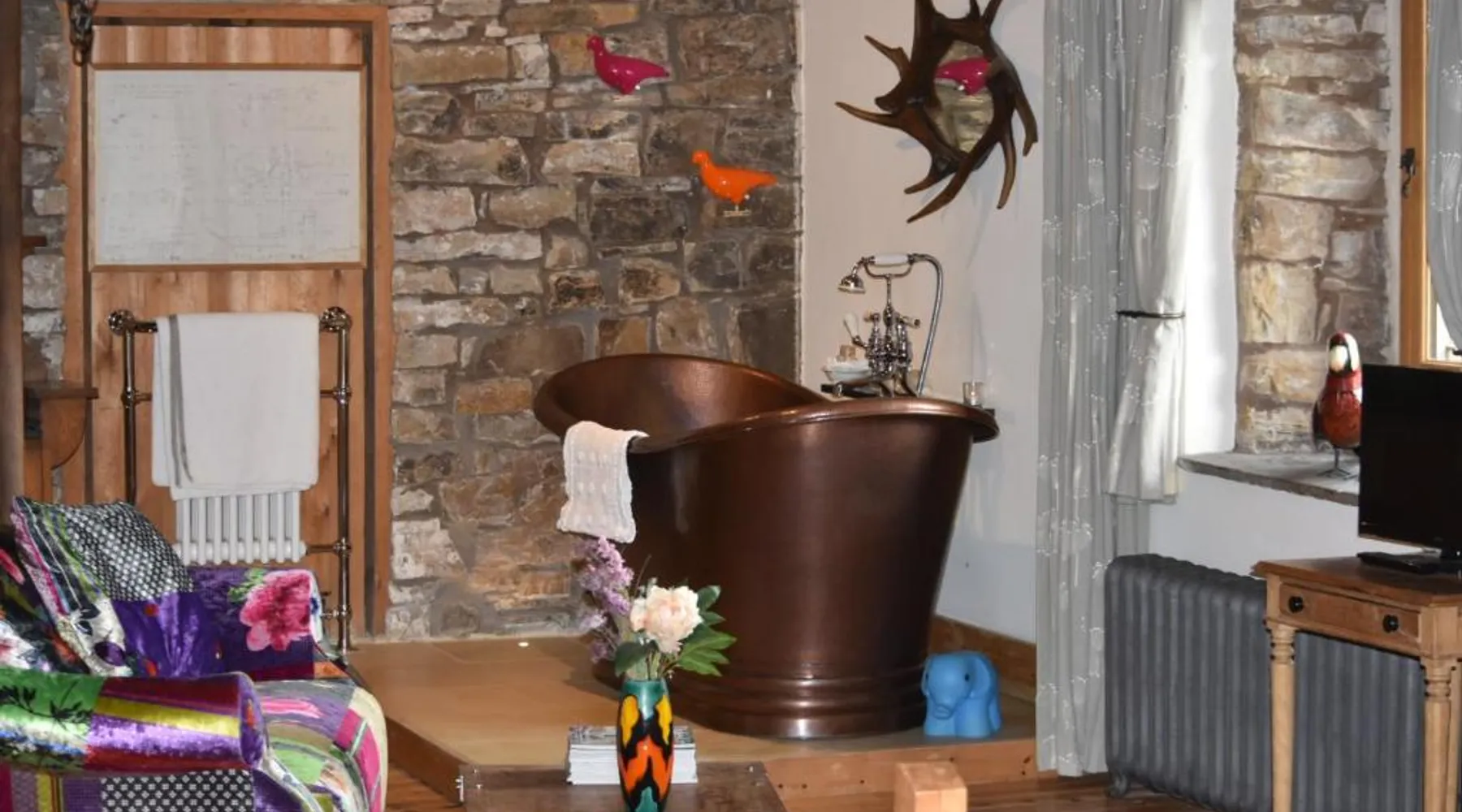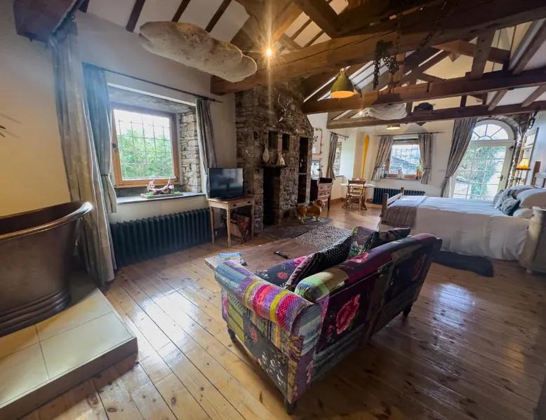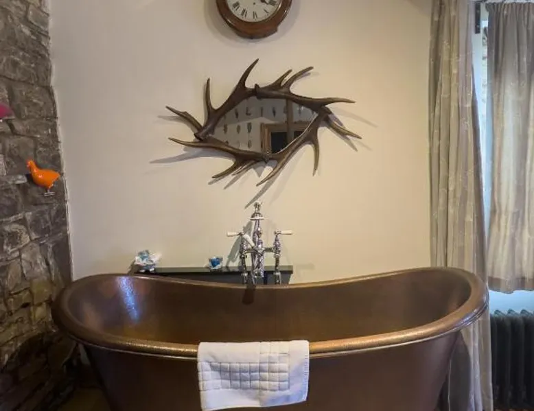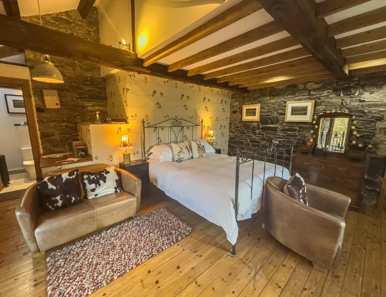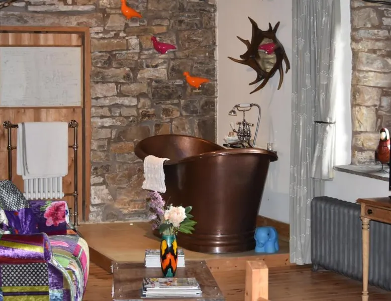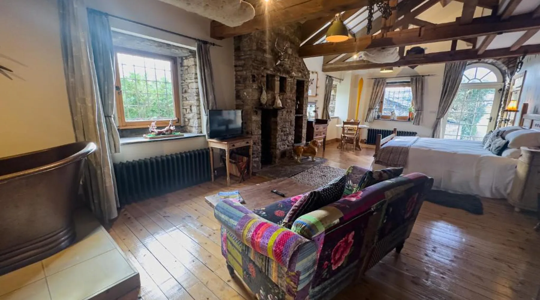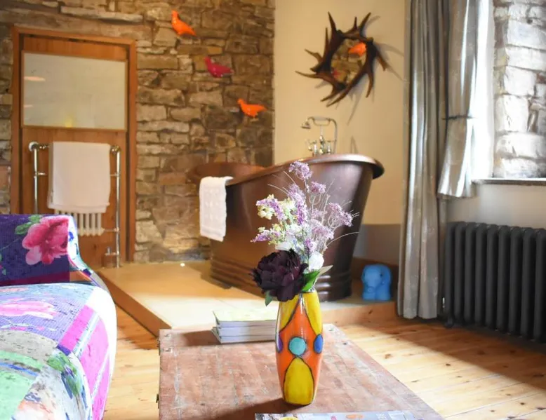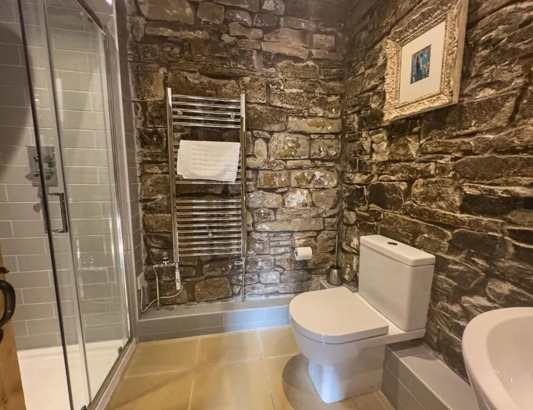 Elegant Accommodations: Low Mill Guest house in Bainbridge offers a 5-star bed and breakfast experience. The adults-only property features a beautiful garden, a cozy bar, and free WiFi. Comfortable Amenities: Guests enjoy private bathrooms with bathrobes, streaming services, and free toiletries. Additional amenities include a fireplace, garden and river views, and a seating area. Convenient Facilities: The guest house provides free on-site private parking, housekeeping service, and luggage storage. Streaming services and a TV enhance the stay. Local Attractions: Located 39 mi from Teesside International Airport, the property is near Lightwater Valley Theme Park (29 mi), Aysgarth Falls (5.6 mi), and Richmond Castle (21 mi). Hiking opportunities are available. This suite features river views and separate sitting area.
