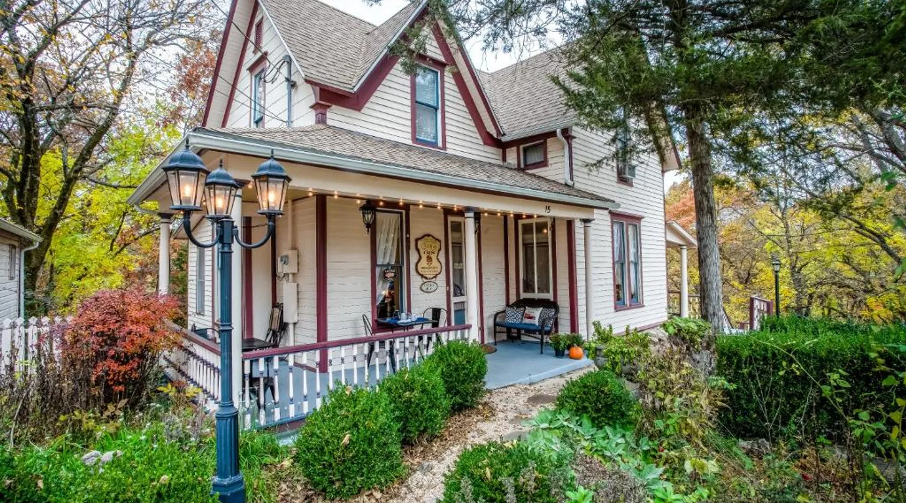 Historic Setting: 5 Ojo Inn Bed and Breakfast in Eureka Springs offers a 4-star experience within a historic building. The property is highly rated for its breakfast, attentive staff, and comfortable beds. Exceptional Facilities: Guests enjoy a sun terrace, garden, and free WiFi. Additional amenities include a hot tub, lounge, games room, and outdoor seating area. Free on-site private parking is available. Comfortable Accommodations: Rooms feature air-conditioning, private bathrooms, and garden or mountain views. Amenities include bathrobes, spa baths, and balconies. Dining Experience: Breakfast options include American, à la carte, vegetarian, vegan, and gluten-free. Fresh pastries, pancakes, and juice are served daily. Local Attractions: Located less than 0.6 mi from Eureka Springs Historic District and 2.5 mi from The Great Passion Play. Boone County Airport is 40 mi away. This private room features a fireplace at the foot of its queen-sized bed. A cypress-paneled spa tub/shower combination is also available. A private swing hangs right outside the private entrance, overlooking the wooded property and the shared outdoor hot tub. The following amenities are also included in this room: coffee maker, hairdryer, refrigerator, bathrobes,, wine glasses & wine bottle opener. *This room is at street level and does not require walking up or down stairs.