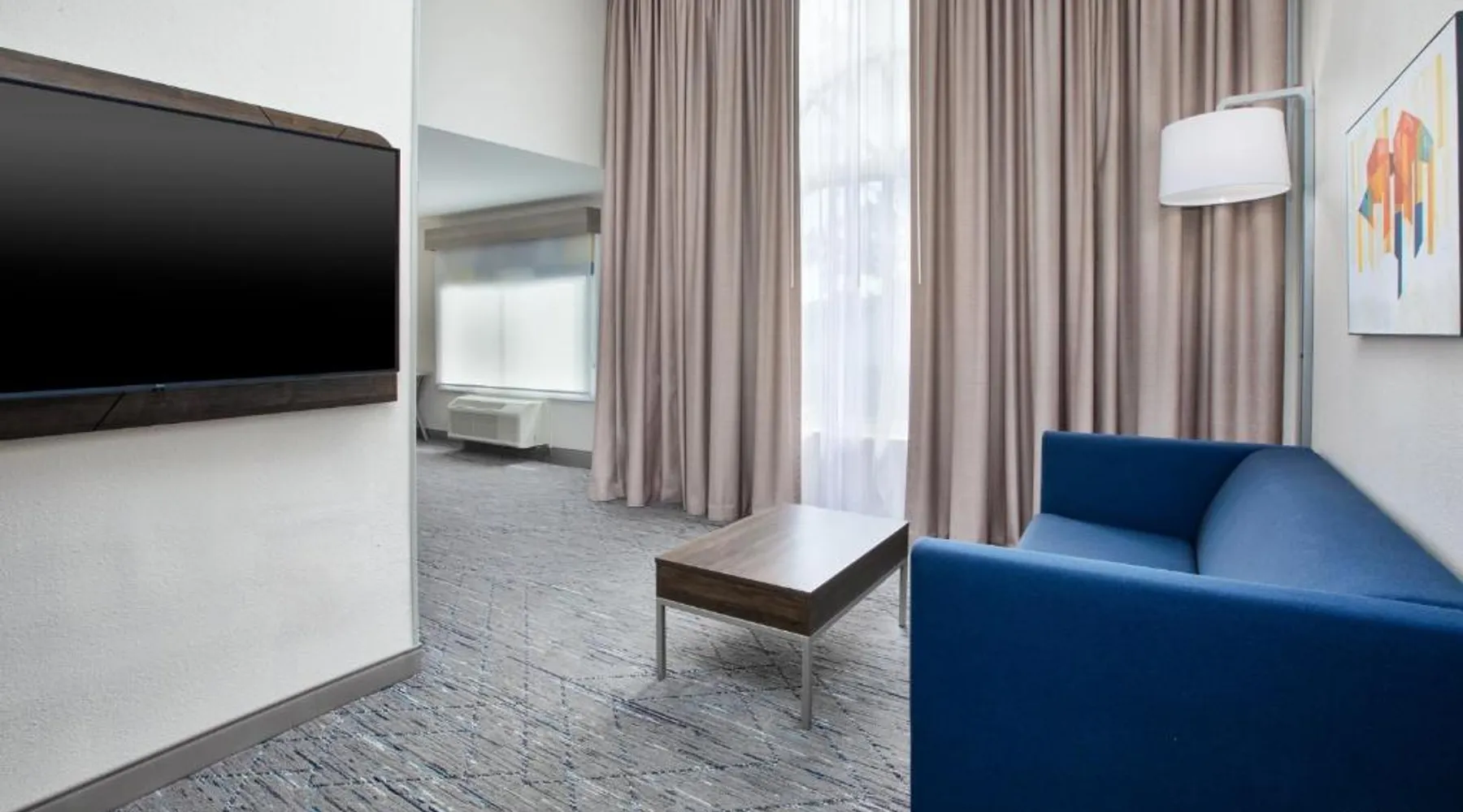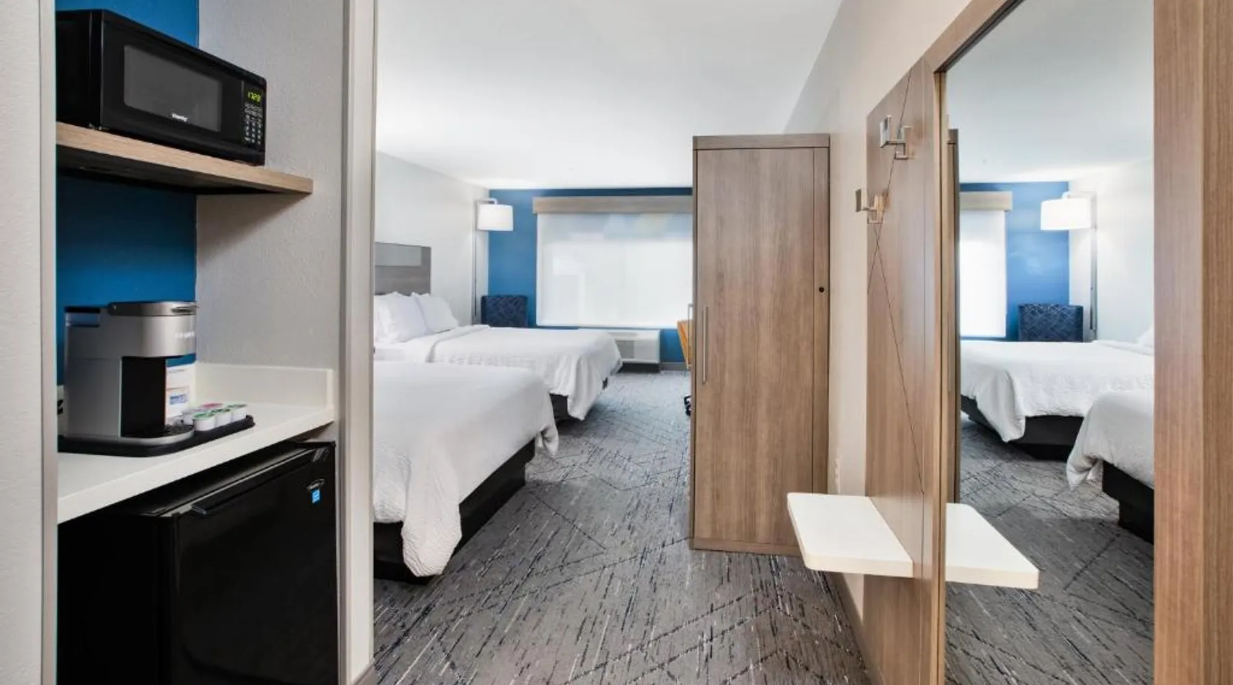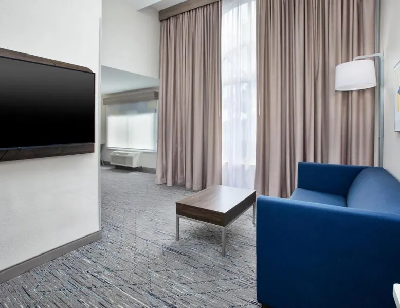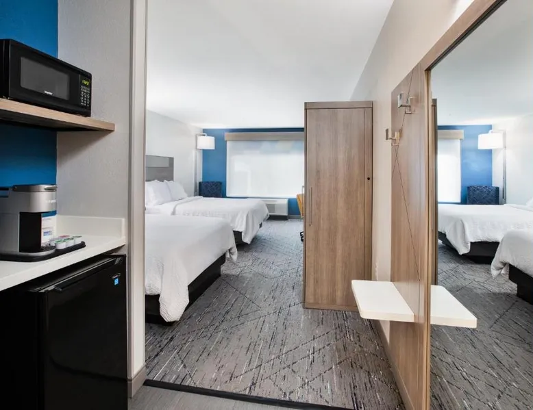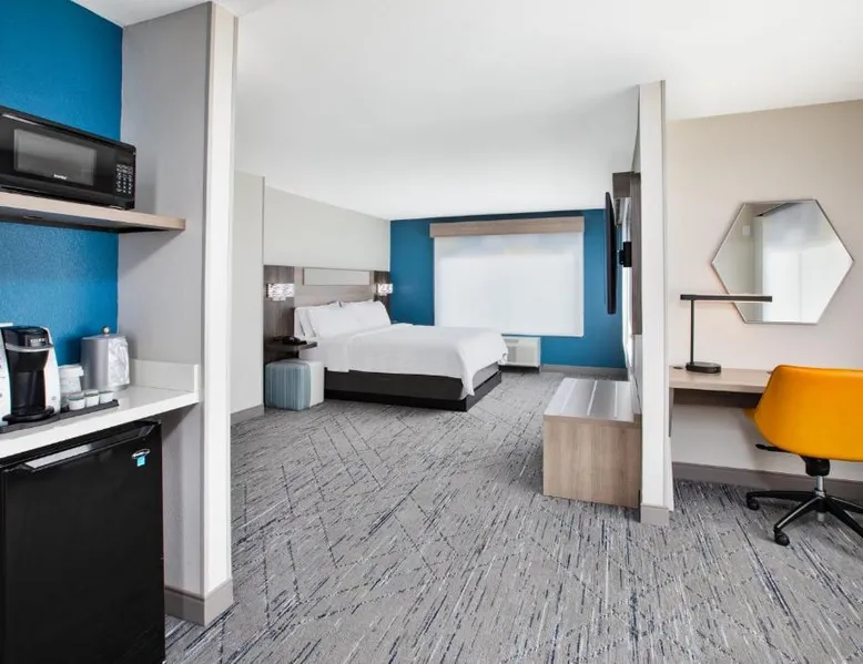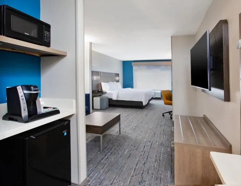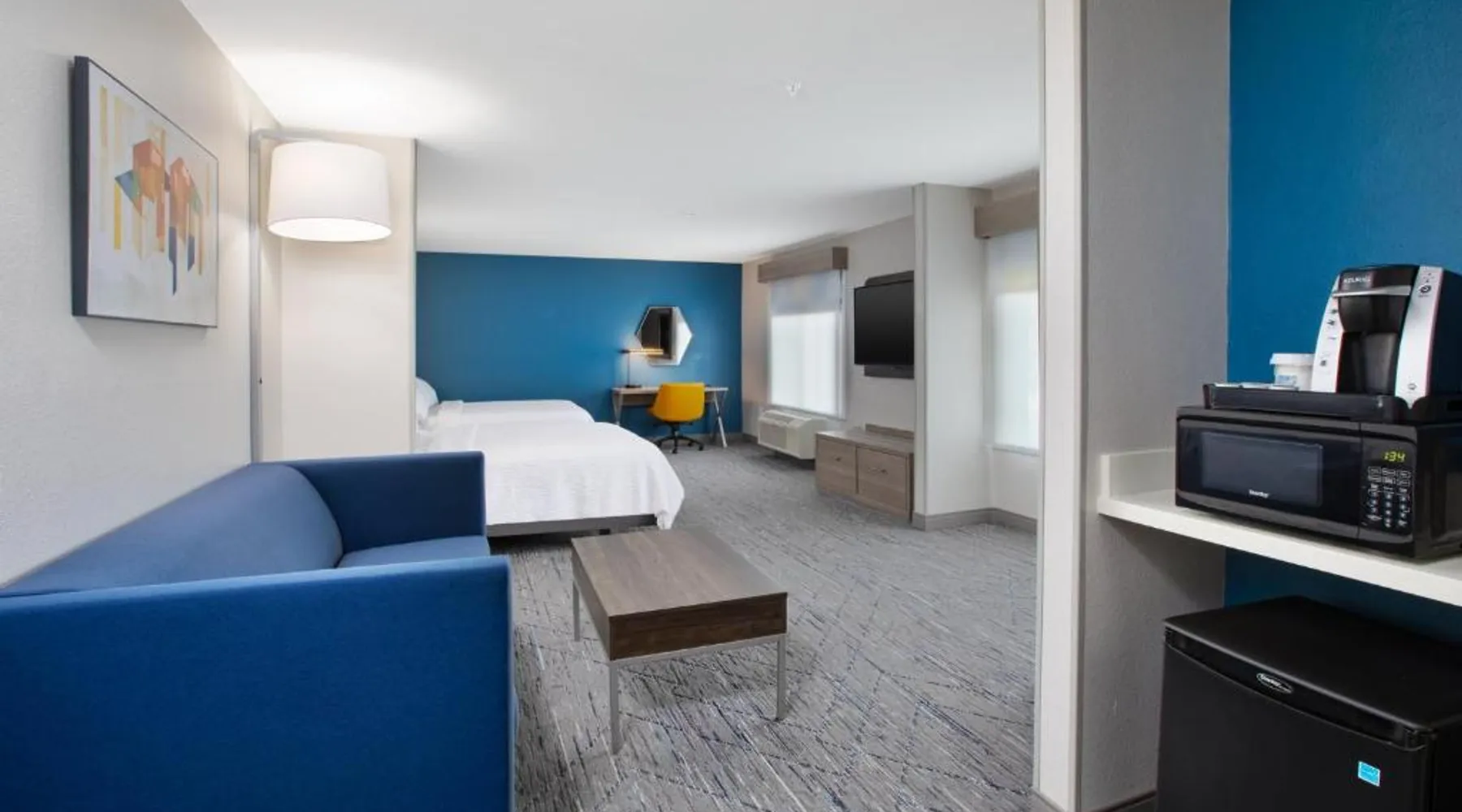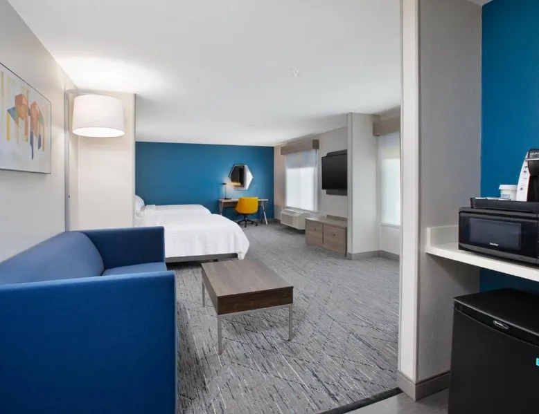 Comfortable Accommodations: Holiday Inn Express Hotel & Suites West Monroe by IHG in West Monroe offers air-conditioned rooms with private bathrooms, tea and coffee makers, and free WiFi. Each room includes a work desk, seating area, and free toiletries. Leisure Facilities: Guests can enjoy a sun terrace and a seasonal outdoor swimming pool. The hotel provides a fitness room, elevator, and a 24-hour front desk. Free on-site parking is available. Convenient Location: Located 8.7 mi from Monroe Regional Airport, the hotel is a 19-minute walk from Ike Hamilton Expo Center. Nearby attractions include Malone Stadium and Joe Aillet Stadium, each 30 mi away. Guest Services: The property offers express check-in and check-out, housekeeping, and a breakfast provided by the hotel. Guests appreciate the room cleanliness, attentive staff, and excellent service support. This suite is spacious and features a living area with a sofa bed and a counter area with a sink.