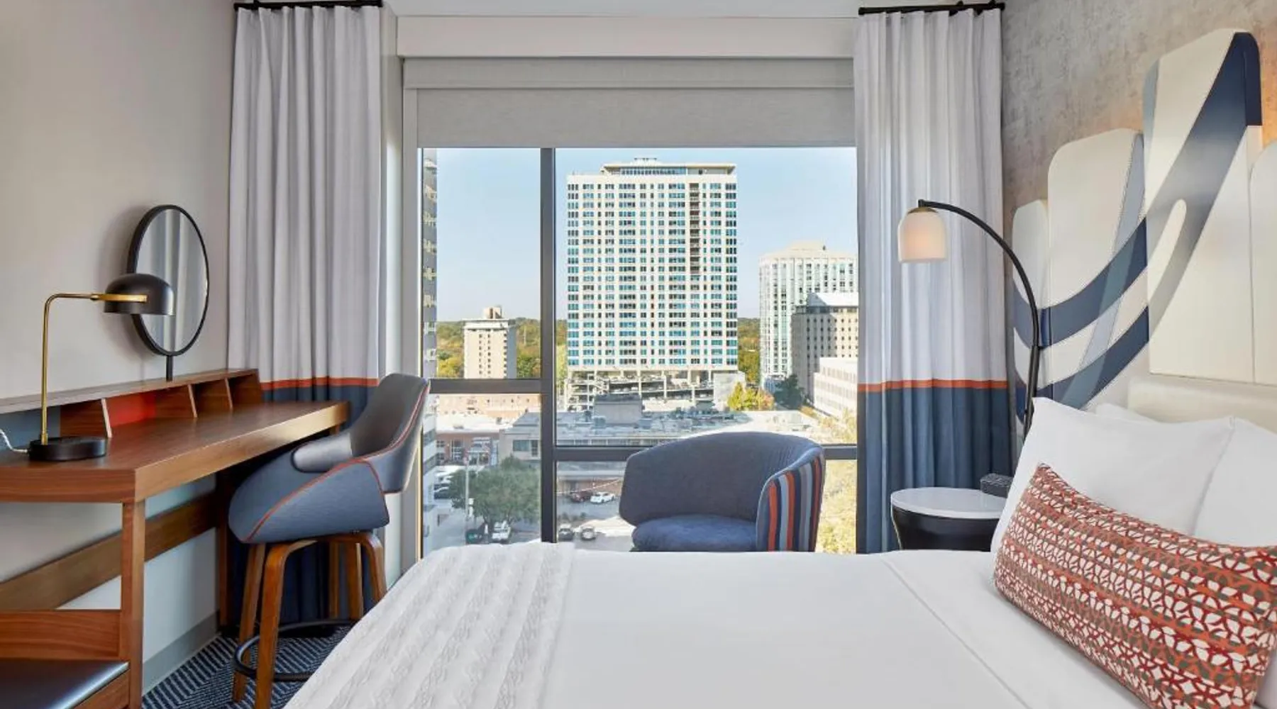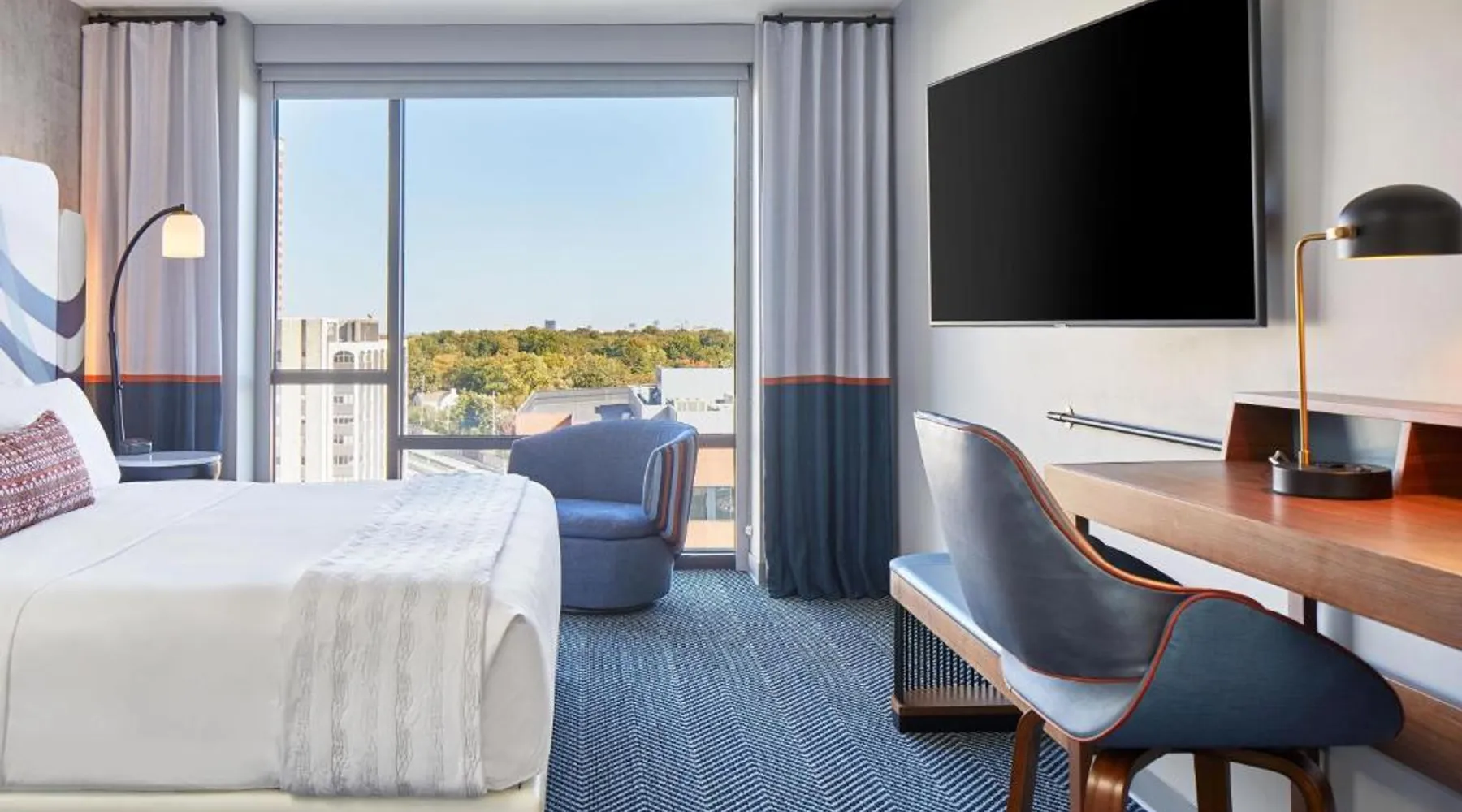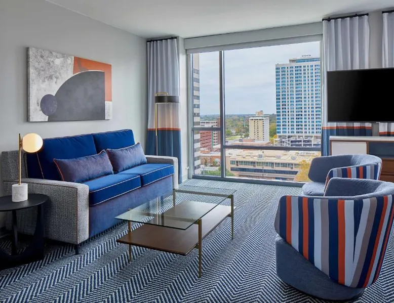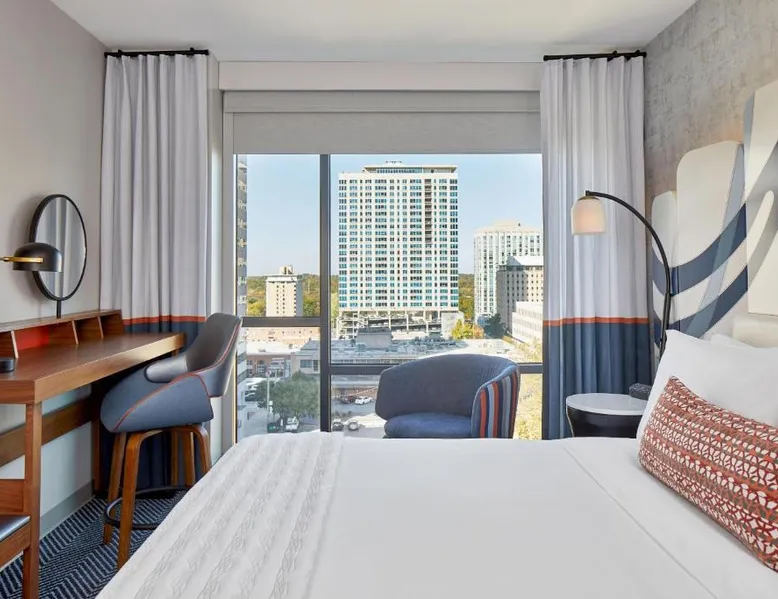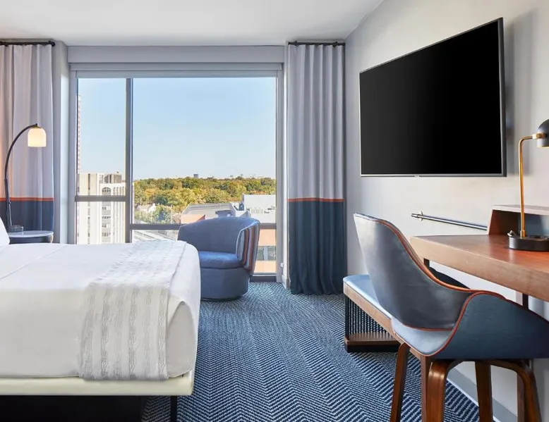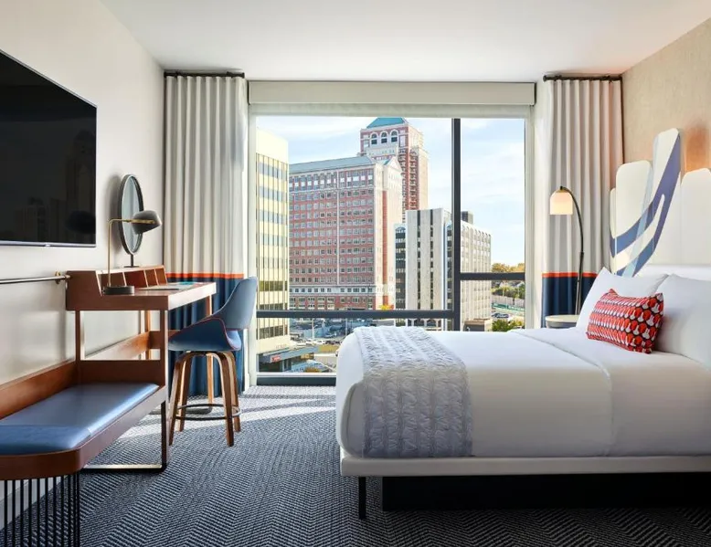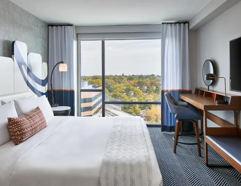 Comfortable Accommodations: Le Méridien St. Louis Clayton in St. Louis offers family rooms with air-conditioning, private bathrooms, and city views. Each room includes a work desk, free toiletries, and a seating area. Exceptional Facilities: Guests can enjoy a rooftop swimming pool, fitness center, sun terrace, and restaurant. The modern, romantic restaurant serves French cuisine for lunch and dinner. Additional amenities include a lounge, fitness room, and 24-hour front desk. Prime Location: Located 8.1 mi from St. Louis Lambert International Airport, the hotel is near attractions such as St. Louis Gateway Arch (11 mi) and St. Louis Zoo (3.1 mi). Guests appreciate the attentive staff, convenient location, and room cleanliness. This air-conditioned double room is consisted of of a flat-screen TV with cable channels and a private bathroom. The unit has 1 bed.