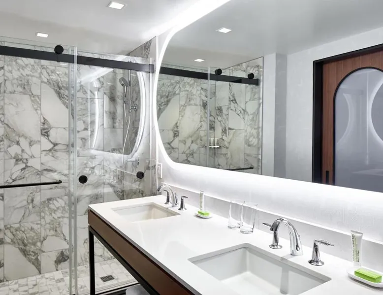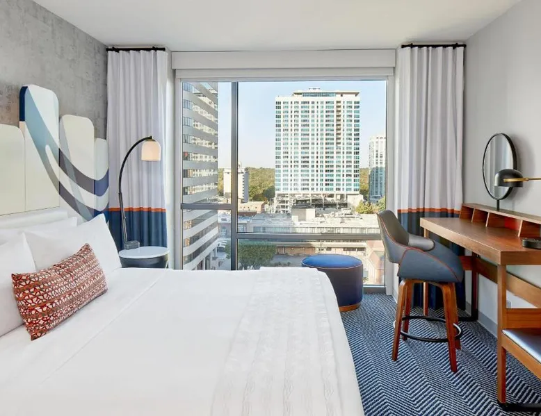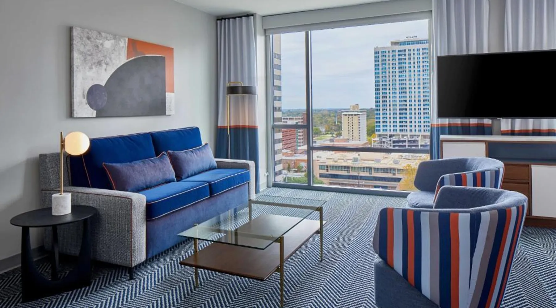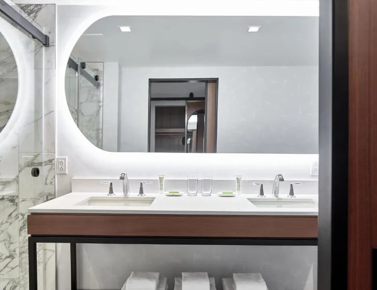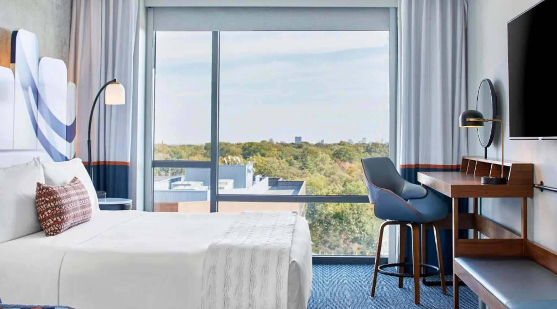 Comfortable Accommodations: Le Méridien St. Louis Clayton in St. Louis offers family rooms with air-conditioning, private bathrooms, and city views. Each room includes a work desk, free toiletries, and a seating area. Exceptional Facilities: Guests can enjoy a rooftop swimming pool, fitness center, sun terrace, and restaurant. The modern, romantic restaurant serves French cuisine for lunch and dinner. Additional amenities include a lounge, fitness room, and 24-hour front desk. Prime Location: Located 8.1 mi from St. Louis Lambert International Airport, the hotel is near attractions such as St. Louis Gateway Arch (11 mi) and St. Louis Zoo (3.1 mi). Guests appreciate the attentive staff, convenient location, and room cleanliness. This air-conditioned double room is consisted of of a flat-screen TV with cable channels and a private bathroom. The unit has 1 bed.