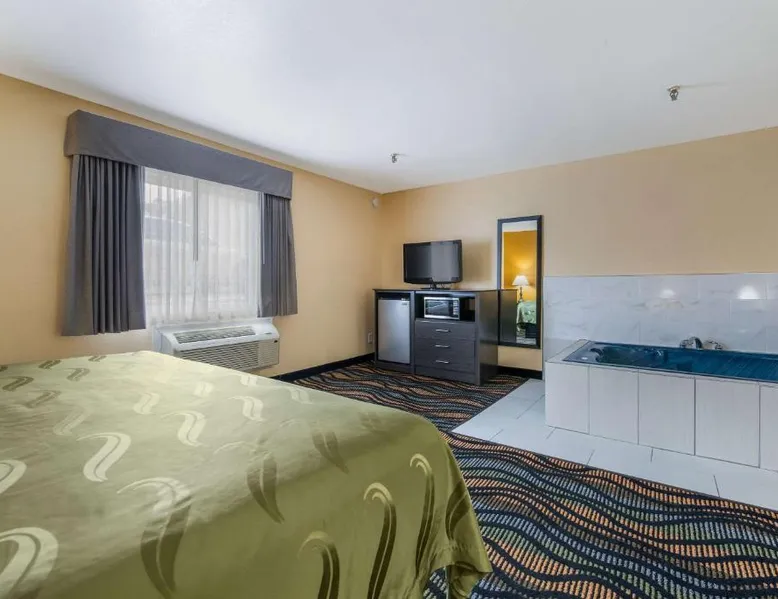 Comfortable Accommodations: Equality Inn in Rockford offers 2-star rooms with private bathrooms, refrigerators, microwaves, showers, and TVs. Each room includes a bath for added comfort. Essential Facilities: Guests enjoy free WiFi, a elevator, hot tub, 24-hour front desk, housekeeping, and room service. Free on-site private parking is available. Convenient Location: Located 6.8 mi from Chicago Rockford International Airport, the hotel is near attractions such as Magic Waters Waterpark (6.8 mi) and the Logan Museum of Anthropology (22 mi). Guest Satisfaction: Guests appreciate the attentive staff and room cleanliness receive high marks are received for their service support is praised for its quality. The spacious double room features tumble dryer and heating, as well as a private bathroom boasting a shower. This double room offers a TV. The unit has 1 bed.