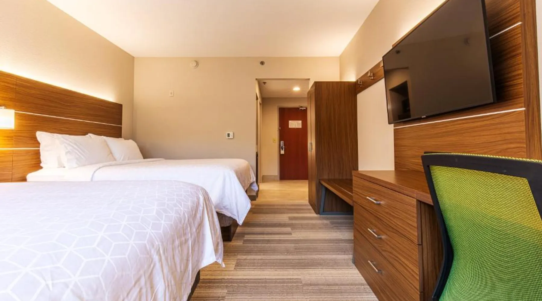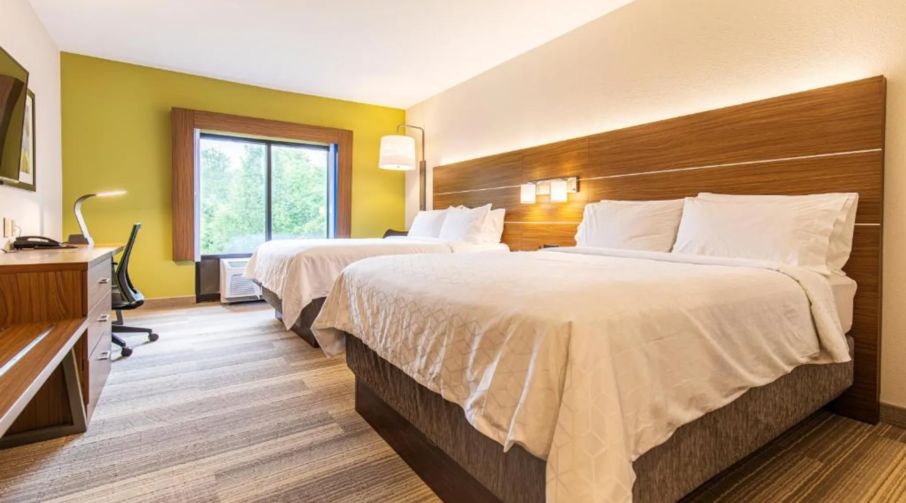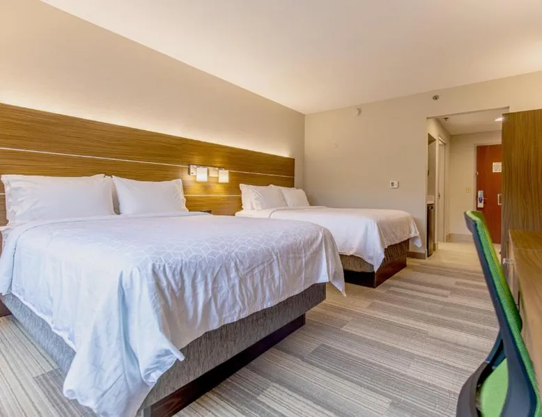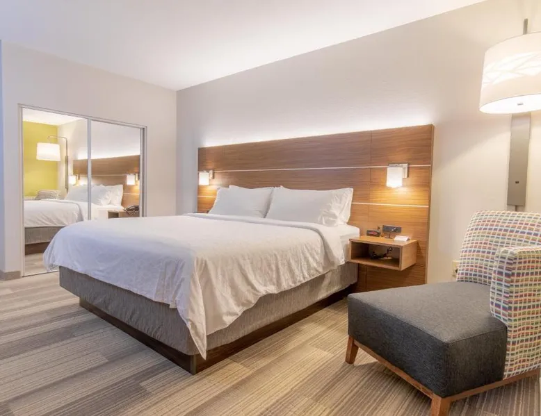Comfortable Accommodations: Holiday Inn Express Johnson City by IHG in Johnson City offers clean rooms with air-conditioning, private bathrooms, and modern amenities including free WiFi, a work desk, and a seating area. Convenient Facilities: Guests enjoy a elevator, hot tub, and a 24-hour front desk. Additional amenities include a tea and coffee maker, hairdryer, refrigerator, microwave, and TV. Prime Location: Located 9.3 mi from Tri-Cities Regional Airport, the hotel is near attractions such as Hands On! Discovery Center (6.2 mi), Tweetsie Trail and George L. Carter Railroad Museum (7.5 mi), and Bristol Motor Speedway (17 mi). Guest Satisfaction: Highly rated for room cleanliness, breakfast provided by the property, and attentive staff and service support. The suite offers air conditioning, a tea and coffee maker, as well as a private bathroom boasting a bath and a hairdryer. This suite has a seating area, heating and a flat-screen TV with cable channels. The unit has 1 bed.